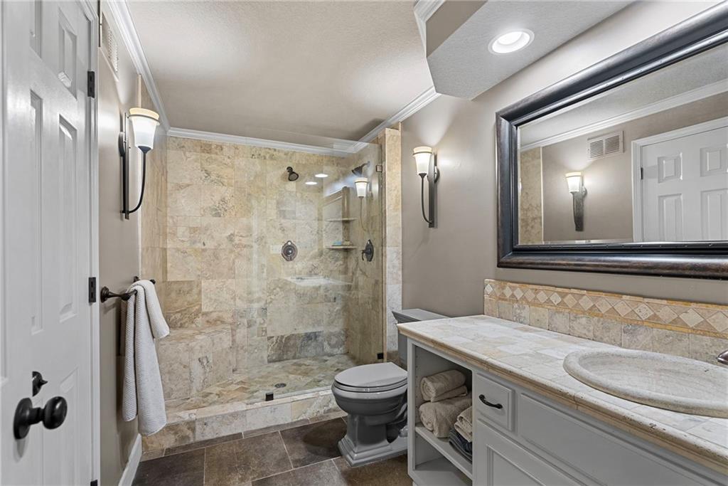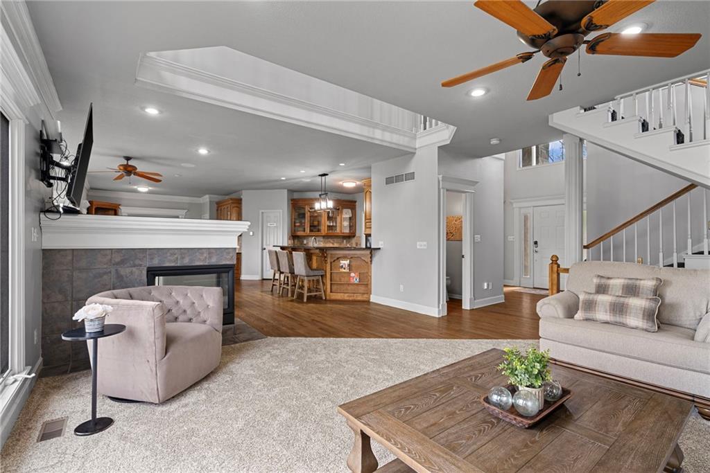 This incredibly spacious 2-story home sits on a wonderfully private, treed lot that backs to wooded greenspace and parkland in sought-after Winterset Park. With 5 bedrooms, 4.5 baths and over 5000 SF of living space, inside or out you’ll never run out of ways to live life to the fullest no matter what your lifestyle needs may be. The main level offers both open spaces and cozy places that easily accommodate gatherings of any size. With stunning refinished hardwoods, a shared great room/hearth room fireplace, and walls of windows looking out over that beautiful, wooded backdrop, you’ll love the warm and inviting vibe throughout. Don’t forget to mosey on out to the composite deck among the trees! The current owners created an amazing mutli-level outdoor oasis when they fully replaced the old deck. Back inside, there’s also an office with private garage access making work life at home a breeze. And the gorgeous flex room that greets you when you step inside the front door makes for a perfect music room, formal dining room, private sitting room or whatever your heart desires. Upstairs, you’ll find a huge loft along with three generous guest rooms and 2 full guest baths. But the crown jewel is the primary suite. A true retreat with sitting room, 3 closets (yes, 3!), and an extraordinary spa-like bath with steam shower and soaker tub. Seriously, you may never leave! Want more? The finished walk-out lower level is the stuff that dreams are made of. This is no DIYers finish! Incredible wet bar, huge family room, media room, wine cellar, area for game table and workout equipment, plus a conforming 5th bedroom and fantastic 4th full bath. This will quickly become the place where everyone wants to hang out! Then step out to the covered lower-level dry deck and your relaxing hot tub. And the oversized 3-car garage with epoxied floor is the perfect place for all your toys. Now you’re living the sweet life!