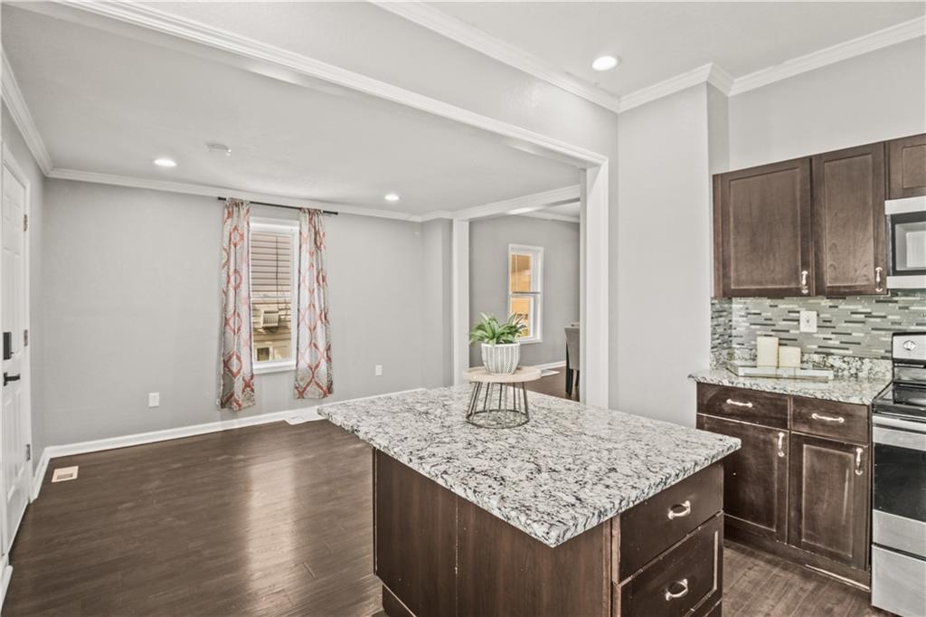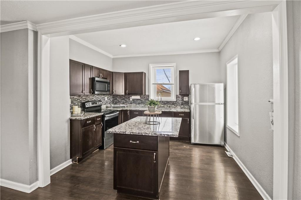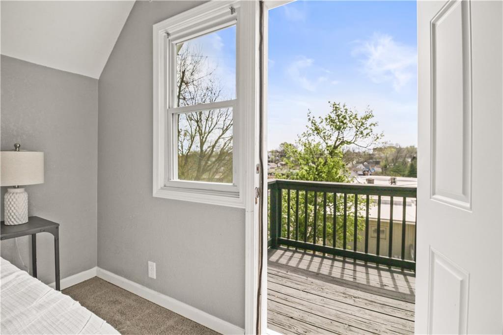 Welcome home to this charming 1920's home, centrally located gem just 10 minutes from downtown Kansas City—perfectly situated within walking distance to the shops and restaurants of Strawberry Hill. Start your day on the spacious front deck—perfect for morning coffee or unwinding in the evening. Step inside to a warm and welcoming living room featuring durable LVP flooring, flowing seamlessly into the formal dining area and open kitchen. Here, you’ll find granite countertops, a center island, ample cabinet space, and all appliances included—making it as functional as it is inviting. Out back, a second deck creates the perfect setting for relaxing evenings or entertaining guests. The main level offers flexibility with a bedroom that can also serve as a home office, along with a full bathroom for added convenience. Upstairs, you’ll find three additional bedrooms, including a comfortable primary suite with dual vanities, a stand-up shower, and your own private balcony—your own quiet escape at the end of the day. A laundry closet is conveniently located just off the hallway. The home continues to impress with neutral finishes throughout, a newer HVAC system (approximately 5 years old), and a walkout basement offering plenty of storage space. A carport located just behind the home adds extra convenience.