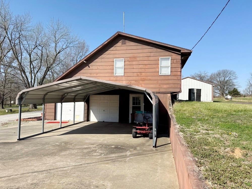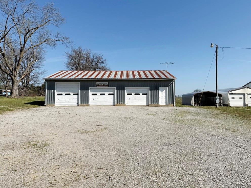 Country living meets business opportunity on this versatile 2.9-acre property just under a mile from the city limits of El Dorado Springs, MO. With a spacious 1.5 story earth contact home offering 2,235 finished sq ft, this property is ideal for those seeking a rural lifestyle with room to work & grow. The home features 4 very spacious bedrooms & 3 baths along with a 2-car attached garage. Inside, you’ll find a comfortable layout with plenty of closet space & easy-access attic storage. The living room showcases a vaulted ceiling & an attractive brick woodburning fireplace, creating a warm & inviting focal point. What truly sets this property apart is the impressive collection of outbuildings—perfect for hobbyists, business use, or a working homestead. A 30’x50’ 3-bay mechanic’s garage is fully equipped with concrete floor, electric, lighting, woodburning stove, window A/C, & ½ bath, with bay doors measuring 9’x9’, 10’x7’, & 9’x7’. A second 30’x50’ 3-bay workshop features concrete floor, electric, lighting, gas wall heater, window A/C, & ½ bath, with bay doors of 12’x11’ & (2) 9’x9’ openings. Additional buildings include a 30’x40’ pole barn with electric & lighting (ideal for equipment, boats, or ATVs), a 25’x30’ enclosed 2-car carport with overhead doors, an additional 2-car carport currently used as a woodshed, 2 storage sheds, & a chicken coop. The property is well laid out with a circle drive serving the home & main buildings, plus a separate private drive to the mechanic’s garage. Outdoor features include 2 garden plots, a large front yard with mature trees, & a spacious side yard suitable for small livestock. Whether you're looking to establish a homestead, create a farmette, or operate a small business—especially in vehicle repair or carpentry—this property offers the space, functionality, & location to make it happen.