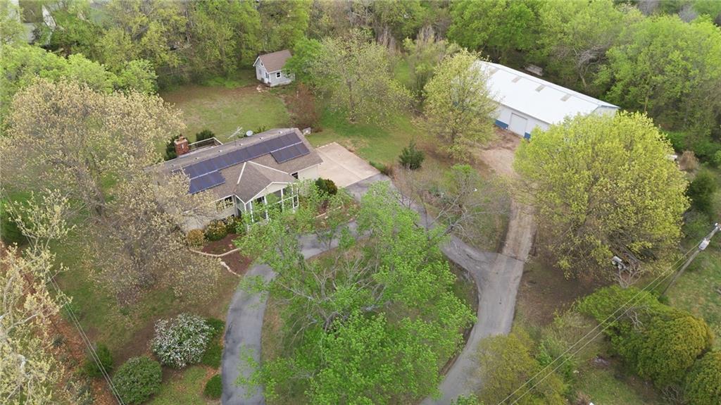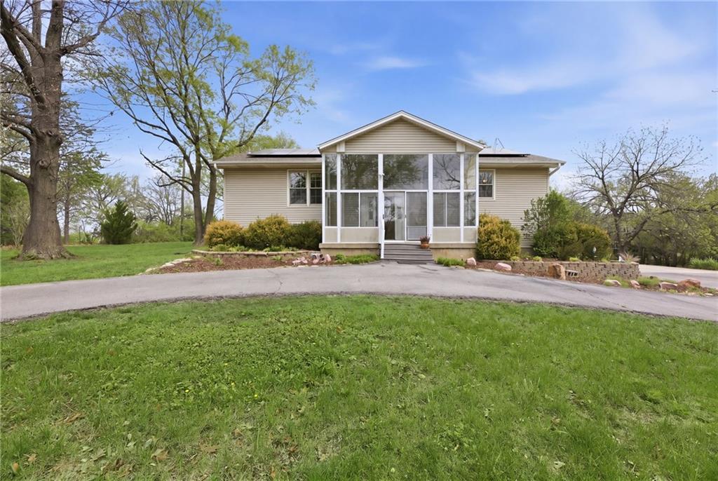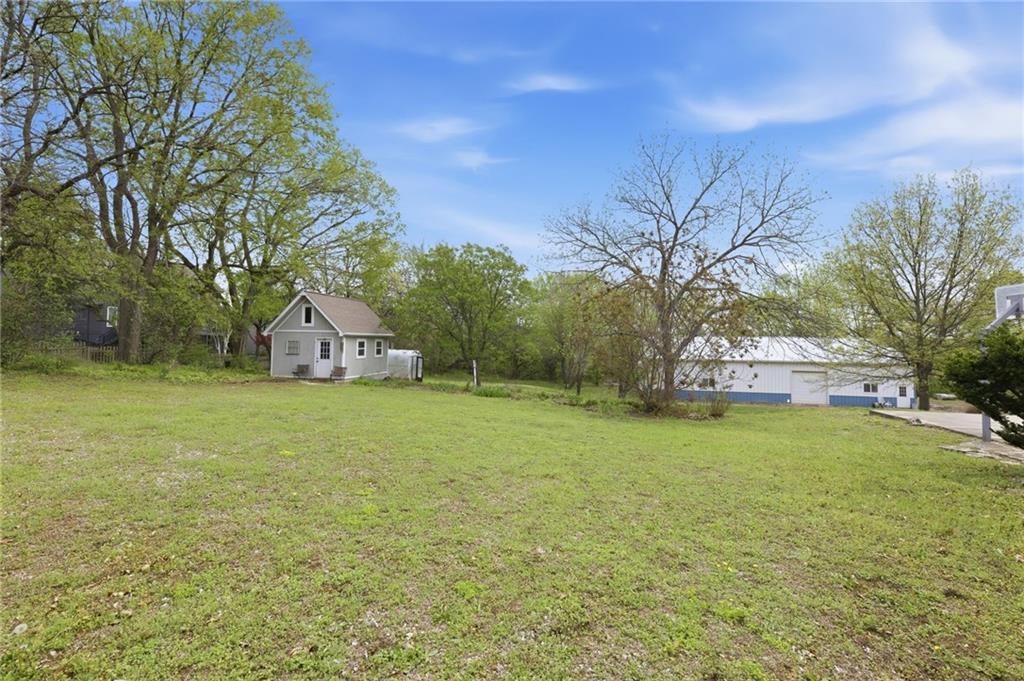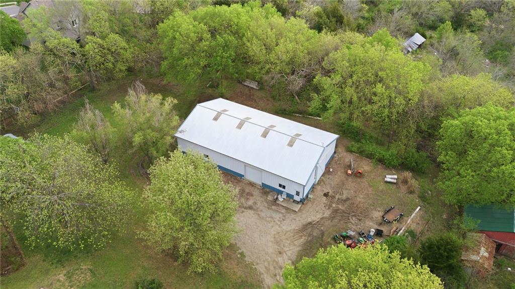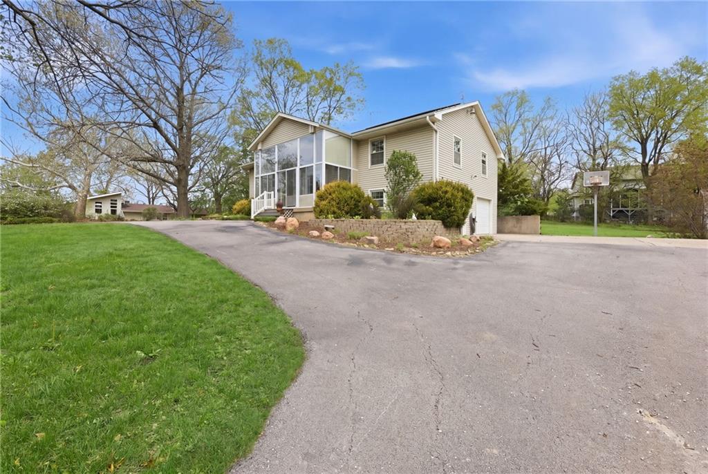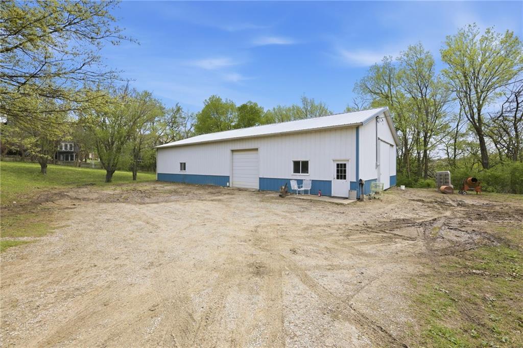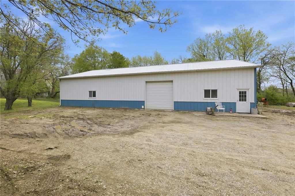 Rare find close to town on a paved road, raised Ranch/Split Entry on ~2 Acres with 75'x42' Morton Building with 14' sidewalls, 12'x12' Sliders on N&S Ends, 9'9"x10'tall garage door on W side, concrete floor, natural gas furnace, electric and water. House fireplaces and Shop furnace are on a natural gas well (shared). Plus the house has solar panels on roof for minimal electric bill! Spend your Spring & Summer planting and tending your vegetable or flower garden in backyard that includes a potting shed & small greenhouse for starting plants. The kitchen area features quartz counters, Blanco undermount sink & updated backsplash, SS smooth top double oven range, dishwasher and refrigerator, ample stained cabinetry with lazy Susan's in lower corners, pantry cabinet and a peninsula island. Kitchen is open to a large dining area to keep the cook connected while entertaining. A large main level family room offers pegged hardwoods floors, vaulted ceiling and brick gas fireplace & hearth with a door to the deck overlooking the backyard. The primary bedroom has a full bath with shower, stool and single vanity, there's a pocket door in the closet that can turn bedroom 2 into a office/workout/sitting area off the primary. A hall bath provides a long vanity top with single vanity (could update to double vanity) and a jacuzzi tub w shower above. Lower-level rec room has built in shelf unit, brick gas fireplace, daylight windows and a half bath. The laundry is in the utility room, just off the garage entry, garage features cabinetry and counter tops from original kitchen making for great storage/organizer/workbench. The exterior is vinyl sided for low maintenance along with thermal pane replacement windows. The solar panels are paid off and owned by the seller. The gas well is to the left of driveway entry gate on SE corner of neighbor to the West. This home has been loved by seller's family for 35 years and ready for you to complete updates and make it your own!