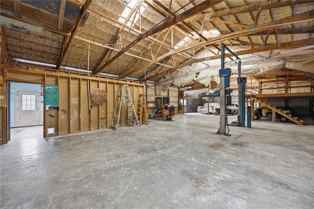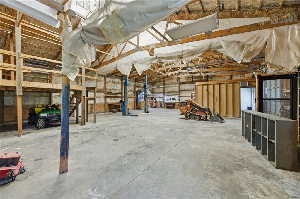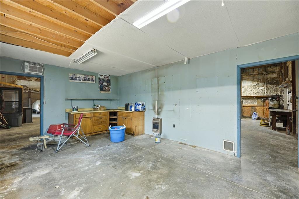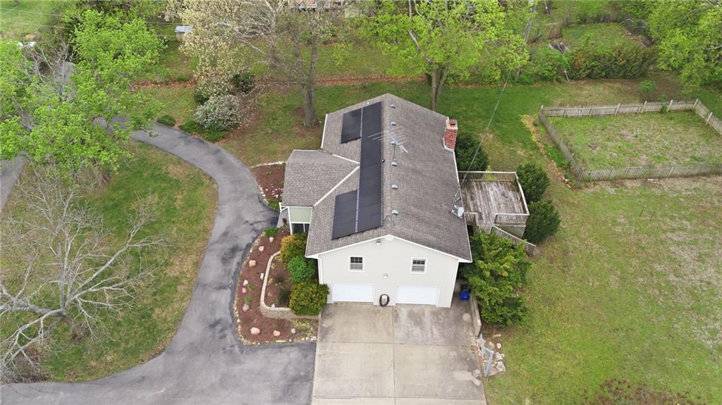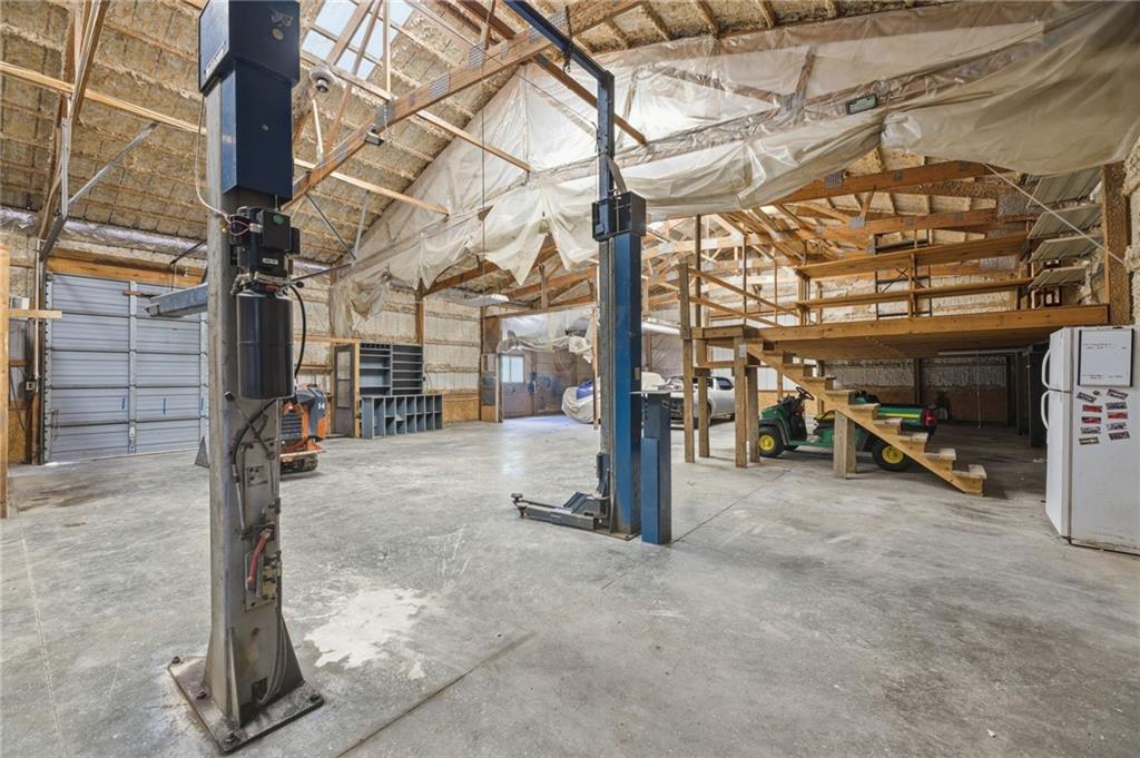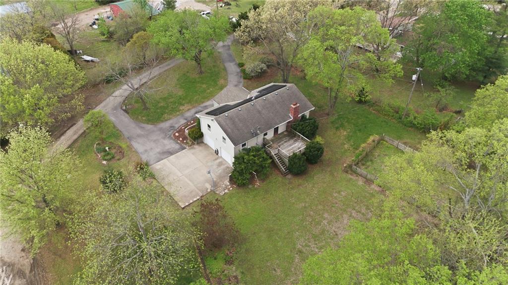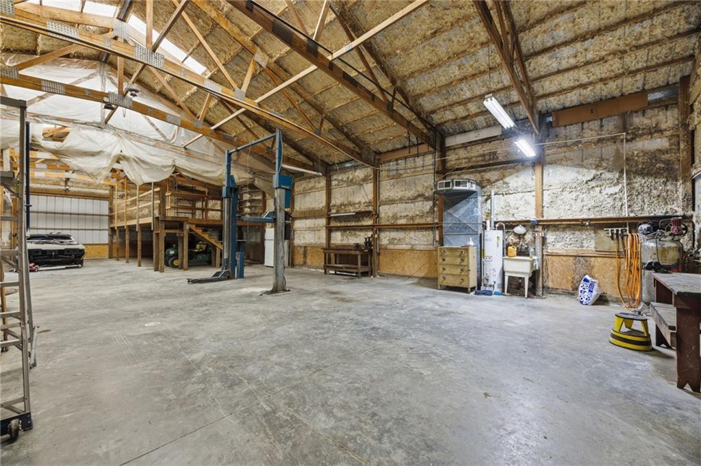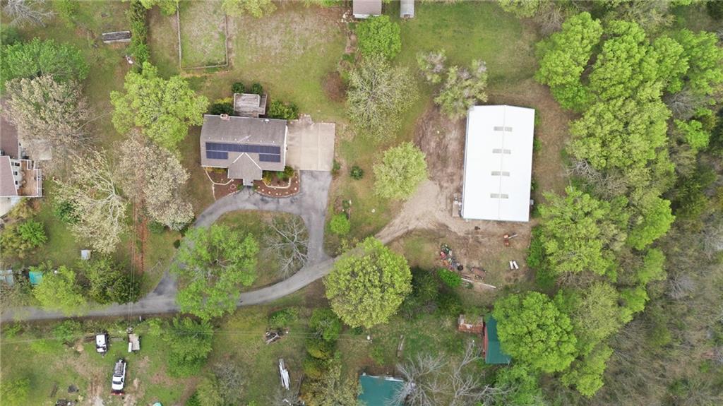 Rare find close to town on a paved road, raised Ranch/Split Entry on ~2 Acres with 75'x42' Morton Building with 14' sidewalls, 12'x12' Sliders on N&S Ends, 9'9"x10'tall garage door on W side, concrete floor, natural gas furnace, electric and water. House fireplaces and Shop furnace are on a natural gas well (shared). Plus the house has solar panels on roof for minimal electric bill! Spend your Spring & Summer planting and tending your vegetable or flower garden in backyard that includes a potting shed & small greenhouse for starting plants. The kitchen area features quartz counters, Blanco undermount sink & updated backsplash, SS smooth top double oven range, dishwasher and refrigerator, ample stained cabinetry with lazy Susan's in lower corners, pantry cabinet and a peninsula island. Kitchen is open to a large dining area to keep the cook connected while entertaining. A large main level family room offers pegged hardwoods floors, vaulted ceiling and brick gas fireplace & hearth with a door to the deck overlooking the backyard. The primary bedroom has a full bath with shower, stool and single vanity, there's a pocket door in the closet that can turn bedroom 2 into a office/workout/sitting area off the primary. A hall bath provides a long vanity top with single vanity (could update to double vanity) and a jacuzzi tub w shower above. Lower-level rec room has built in shelf unit, brick gas fireplace, daylight windows and a half bath. The laundry is in the utility room, just off the garage entry, garage features cabinetry and counter tops from original kitchen making for great storage/organizer/workbench. The exterior is vinyl sided for low maintenance along with thermal pane replacement windows. The solar panels are paid off and owned by the seller. The gas well is to the left of driveway entry gate on SE corner of neighbor to the West. This home has been loved by seller's family for 35 years and ready for you to complete updates and make it your own!