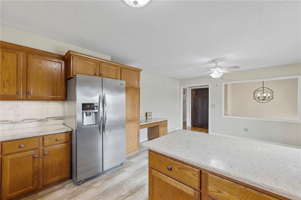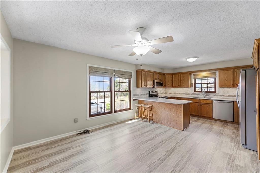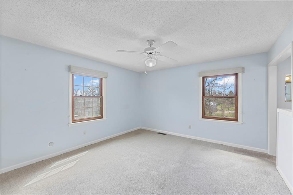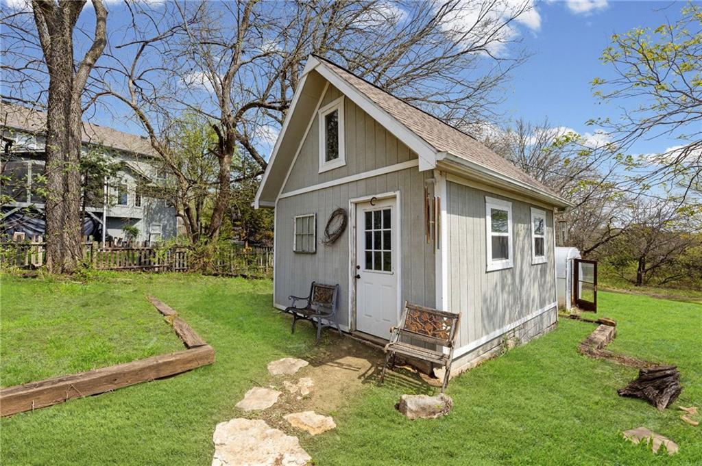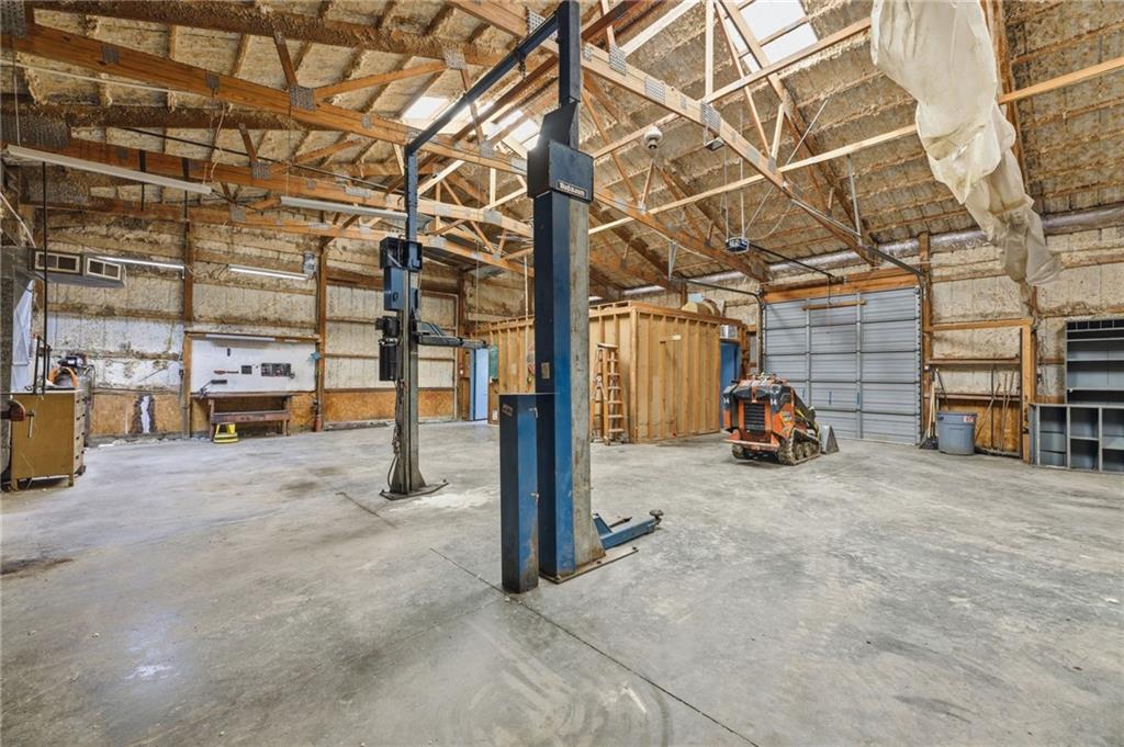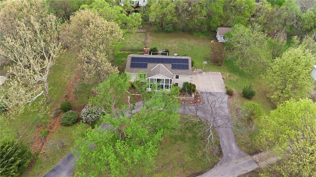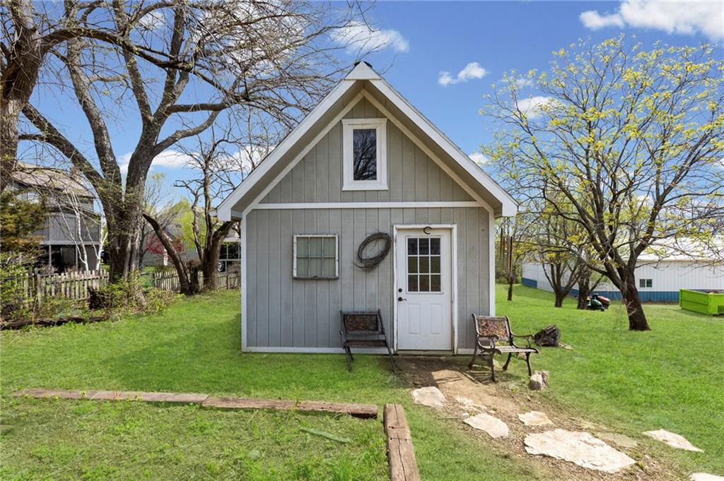 Rare find close to town on a paved road, raised Ranch/Split Entry on ~2 Acres with 75'x42' Morton Building with 14' sidewalls, 12'x12' Sliders on N&S Ends, 9'9"x10'tall garage door on W side, concrete floor, natural gas furnace, electric and water. House fireplaces and Shop furnace are on a natural gas well (shared). Plus the house has solar panels on roof for minimal electric bill! Spend your Spring & Summer planting and tending your vegetable or flower garden in backyard that includes a potting shed & small greenhouse for starting plants. The kitchen area features quartz counters, Blanco undermount sink & updated backsplash, SS smooth top double oven range, dishwasher and refrigerator, ample stained cabinetry with lazy Susan's in lower corners, pantry cabinet and a peninsula island. Kitchen is open to a large dining area to keep the cook connected while entertaining. A large main level family room offers pegged hardwoods floors, vaulted ceiling and brick gas fireplace & hearth with a door to the deck overlooking the backyard. The primary bedroom has a full bath with shower, stool and single vanity, there's a pocket door in the closet that can turn bedroom 2 into a office/workout/sitting area off the primary. A hall bath provides a long vanity top with single vanity (could update to double vanity) and a jacuzzi tub w shower above. Lower-level rec room has built in shelf unit, brick gas fireplace, daylight windows and a half bath. The laundry is in the utility room, just off the garage entry, garage features cabinetry and counter tops from original kitchen making for great storage/organizer/workbench. The exterior is vinyl sided for low maintenance along with thermal pane replacement windows. The solar panels are paid off and owned by the seller. The gas well is to the left of driveway entry gate on SE corner of neighbor to the West. This home has been loved by seller's family for 35 years and ready for you to complete updates and make it your own!