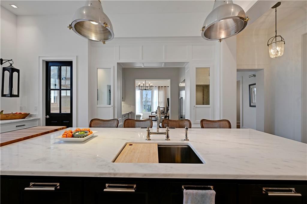 Luxury living in the sought-after **Blue Valley School District** — where location truly is everything. Builder's personal residence, situated on **2 scenic acres of beautifully treed, fenced property**. This stunning former spec home offers 4 spacious bedrooms and 4.5 baths in a beautifully designed ranch floor plan. The main level features a luxurious primary suite complete with separate his-and-hers bathrooms for the ultimate private retreat, plus a convenient laundry room located within the primary suite. Each additional bedroom includes its own en-suite bath, offering comfort and privacy for family and guests. The kitchen is a showstopper, showcasing a large statement island, gas cooktop, double sinks, premium Thermador appliances and an spacious butler's pantry — perfect for entertaining. A second laundry room is thoughtfully located in the mudroom just off the kitchen, adding everyday functionality. The home includes a 2-car attached garage plus a 2-car detached garage connected by a porte cochere. A secondary stairwell in the garage provides direct access to the expansive 3,500 sq ft unfinished daylight basement — ready for you to design and customize to your needs. The charming carriage house offers ideal space for a private office, guest quarters, or multi-generational living. Enjoy peaceful views of nature from the covered patio just off the living room. All this, just minutes from highways, shopping, and restaurants — a rare combination of luxury, space, and convenience.