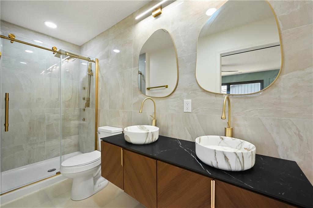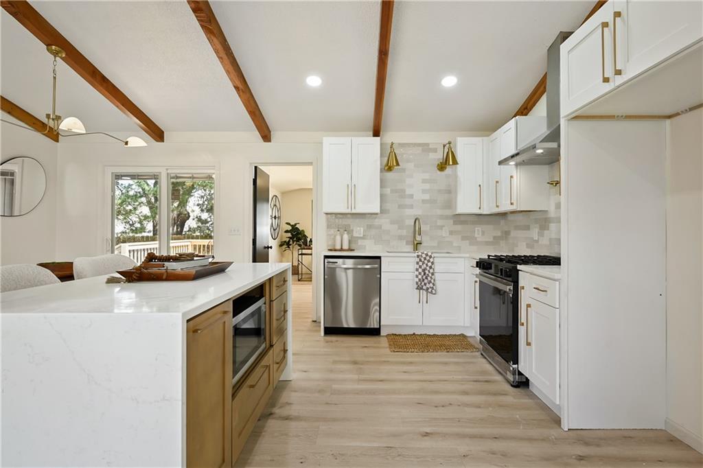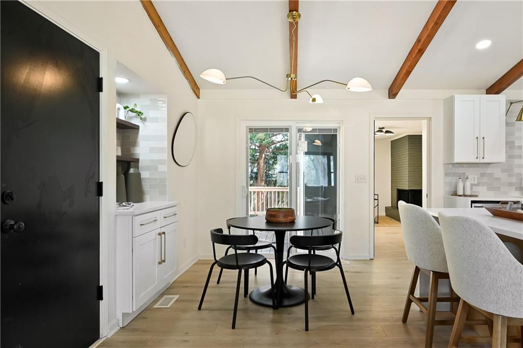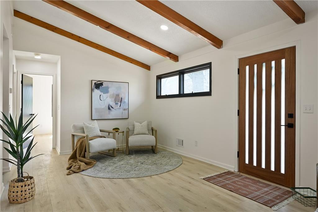 Step into this stunning mid-century modern ranch, thoughtfully designed with today’s homeowner in mind. From the high-end flooring to the spa-inspired bathrooms and multiple entertaining spaces, every detail has been carefully curated to impress. Upon entry, you’re welcomed by a breathtaking great room featuring soaring vaulted ceilings, original wood beams, and timeless mid-century accents. The show-stopping kitchen is truly the heart of the home—designed to wow with both style and functionality, perfect for everyday living and entertaining alike. The primary suite offers a private retreat, complete with a separate sitting room or office space featuring its own private fireplace—creating the perfect setting for cozy mornings or a relaxing work-from-home environment. Custom accent walls and designer lighting add a unique, upscale touch throughout. The luxurious primary bathroom features floor-to-ceiling tile, a double floating vanity, and a spa-like jetted steam shower. Upstairs, you’ll find three spacious bedrooms, two full bathrooms, and a versatile two-car garage currently set up for both parking and a home gym. The finished basement expands your living space even further, offering a second living area, full bedroom, full bathroom, and a wet bar with mini fridge—perfect for hosting guests or creating the ultimate entertainment zone. The backyard will be fully fenced prior to closing, with completion already in progress through city permitting—providing added privacy and peace of mind for the future homeowner.