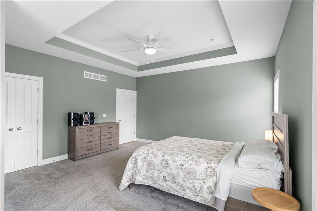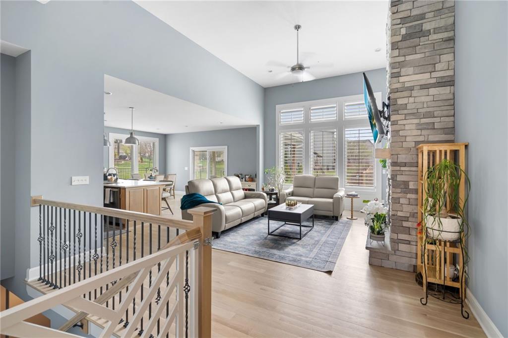Stunning Ranch/Reverse home that features beautiful wood floors on the main level, open floor plan and kitchen with granite countertops, kitchen island, stainless appliances including a gas cook top that all remain with the home, white cabinets and pantry. Spacious primary suite that provides a wonderful walk in closet with lots of space, adjoining bathroom that features a double vanity, multi-headed shower and tiled floors. Finished basement with large rec room with wet bar and two additional bedrooms. Enjoy your fenced in backyard with a large patio space that is great for entertaining and includes a fire pit. Hurry this one will not last long!!!
