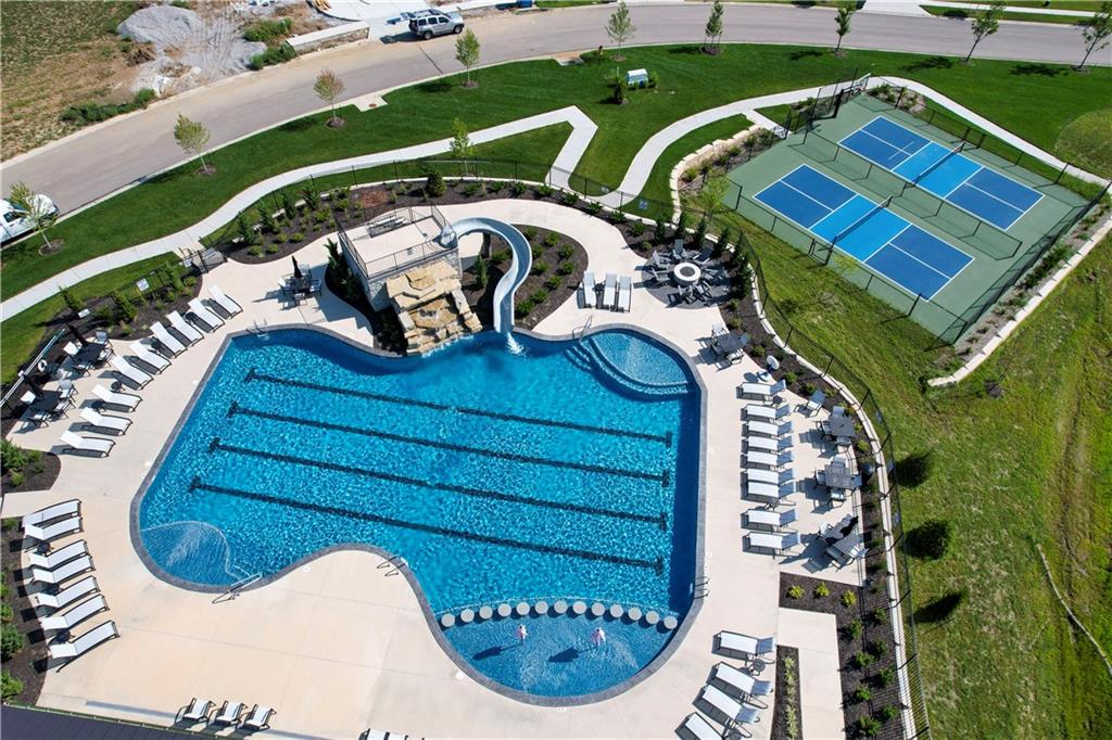 The Rosedale 1.5 Story plan with tandem 4 car garage, by SAB Homes is underway for a Sept. MOVE IN on lot #208 with large back yard trees. Beautiful modern farmhouse interior selection with light wood, white walls, mossy green accents, black and gold hardware and wood accent. Upgrades include celling beams, hallway wainscoting, white quartz and freestanding tub, front double doors with glass windows, large 14' patio along the back side of the house connecting the dining room to the primary suite, plus a covered patio. Pocket laundry in the primary closet and a full 2nd laundry upstairs by the bedrooms. This home has it all with a grand two story great room, main floor primary bedroom, office or formal dining room space, 3 bedrooms upstairs and a 2nd laundry. Striking curb appeal with stucco exterior, wood shutters, warm wood accents and real stone trim. Optional finished basement with 1164 additional square feet can be added with a 5th bedroom/ fitness room/ hobby space or extra office. There is still time to make your custom design selections. *This home is currently UNDER CONSTRUCTION and photos are from a previous home* Century Farms has a spectacular clubhouse with a fitness center, resort style swimming pool with a slide. There are plenty of neighborhood activities with a fire-pit, two pickle-ball courts and a basketball, kids play area, wildflower walkways and community garden. Century Farms is conveniently located near the brand new Bluhawk shopping center, Heritage Park, the Johnson County Trail system and the Overland Park Arboretum. Come join the fun in Century Farms, a unique one of a kind upscale new home community in Overland Park. BLUE VALLEY SCHOOLS
