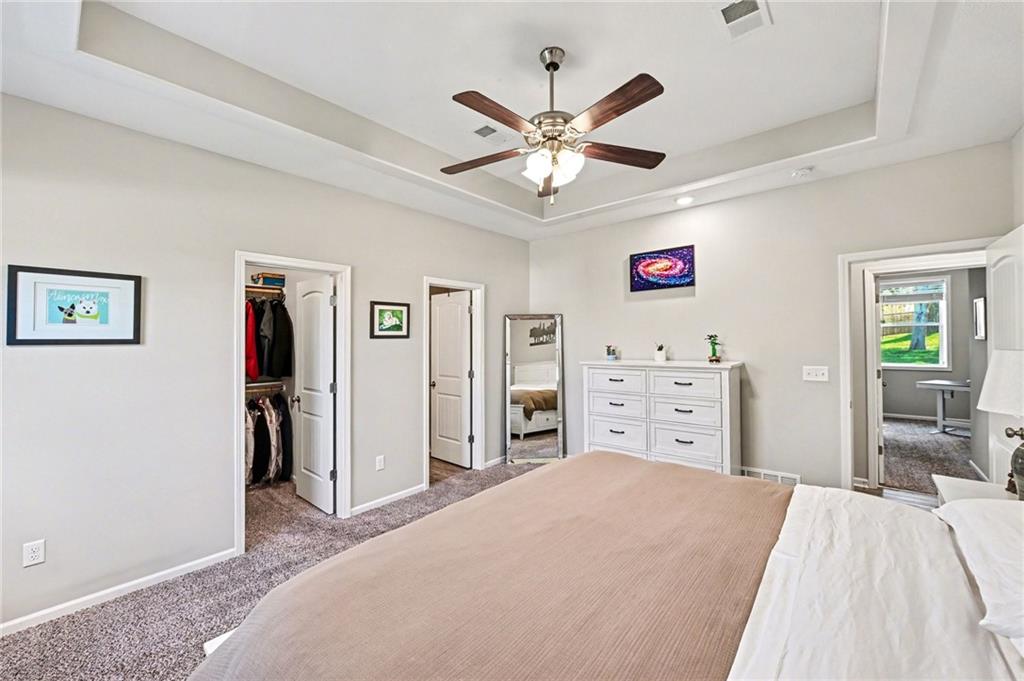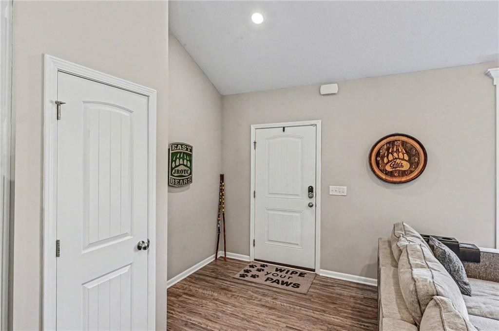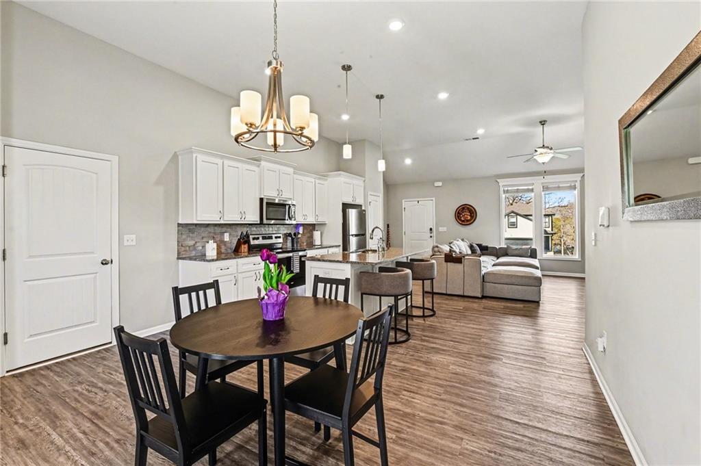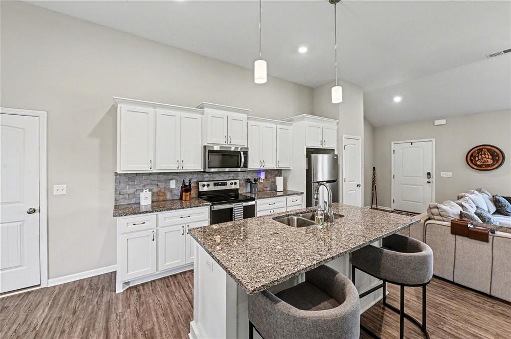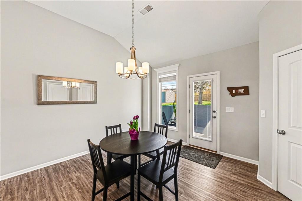 This charming home offers great curb appeal with beautifully landscaped front yard. When you step inside, you are welcomed by a spacious layout featuring vaulted ceilings and LVP flooring that immediately make the home feel open and inviting. The kitchen boasts crisp white cabinetry, stainless steel appliances, a walk in pantry, and a dining area just off to the side. This open concept space flows nicely and provides plenty of room for everyday living and entertaining. The primary bedroom features vaulted ceilings, a private full bathroom, and a walk in closet. Two additional bedrooms are located on the main floor, along with another full bathroom, a convenient laundry room, and a versatile bonus room that could be used as an office, playroom, or hobby space. Additional highlights include a two car garage and solar panels for added efficiency. Step outside to a large, fully fenced backyard with mature trees and a storage shed, offering plenty of space to relax or entertain.
