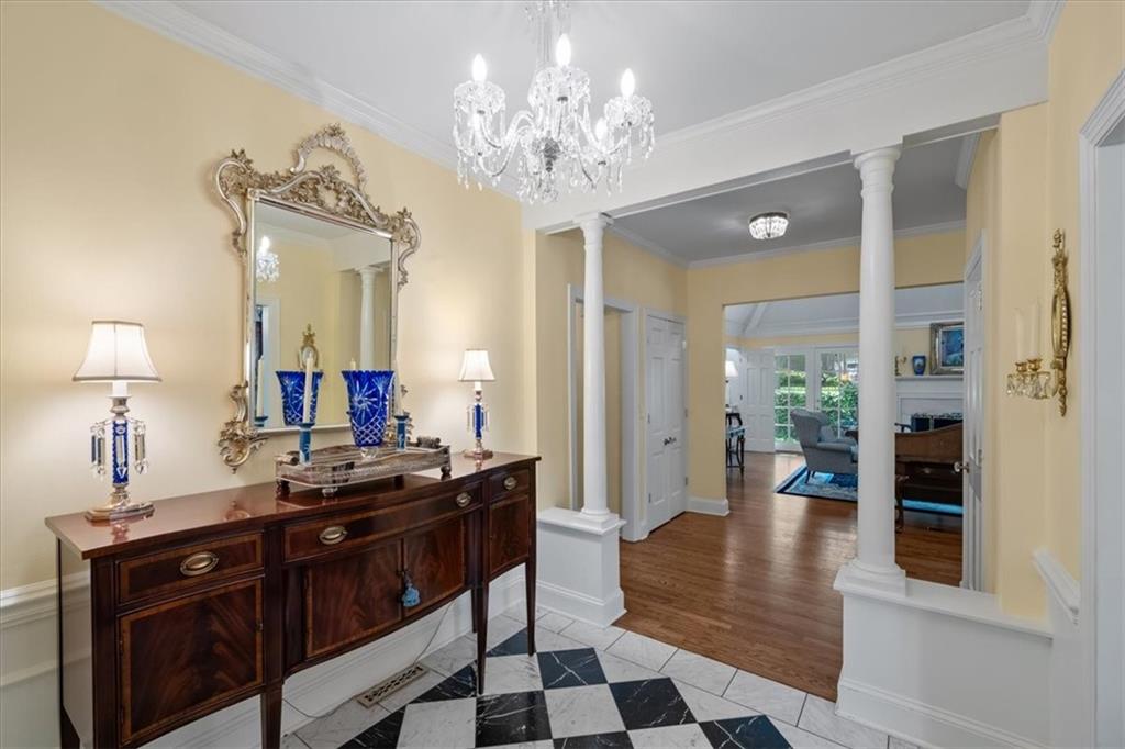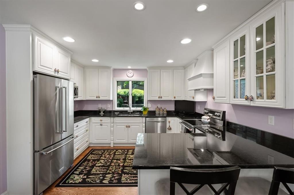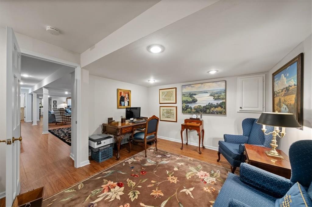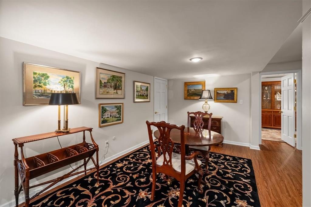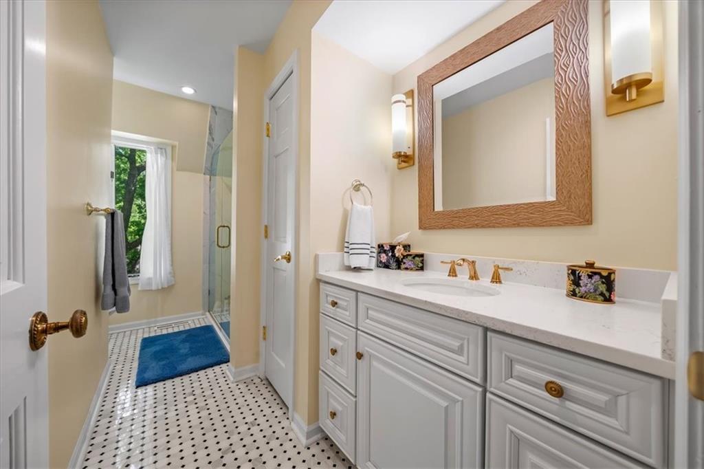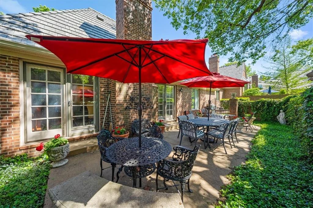 Experience maintenance-provided luxury in this fabulous 1.5-story home located in Corinth Downs. Boasting over 3,200 sqft of refined living space, a brand-new DaVinci roof, and zoned heating and cooling, this 3-bedroom, 3.5-bath home perfectly balances traditional elegance with a spacious, airy floor plan. The main level greets you with a grand foyer and a formal dining room featuring a tray ceiling and classic wainscoting. The soaring, vaulted living room, anchored by a stately fireplace and wet bar, is bathed in natural light, offering a seamless flow for entertaining. The kitchen is a chef's delight, featuring crisp white cabinetry, sleek black granite countertops, new stainless steel appliances, and a charming breakfast nook. Retreat to the main-floor primary suite, complete with a generous walk-in closet and a spa-like ensuite bath finished in exquisite floor-to-ceiling marble, featuring a glass-enclosed shower and a deep soaking tub. Main floor laundry is also available for your convenience. The upper level offers two additional bedrooms and a full bath, perfect for guests, a playroom, or a quiet home office. The expansive lower level significantly increases the home's footprint, offering a large recreation room with a second wet bar and dedicated dining area, an office, and a fourth non-conforming bedroom with a full bath. You will also find a secondary kitchen with an additional laundry room, offering unmatched storage and utility space. Step outside to a private, lushly landscaped brick enclosed patio, ideal for alfresco dining under the shade of mature trees. This home offers the perfect "lock-and-leave" lifestyle without sacrificing the scale and comfort of a traditional home.
