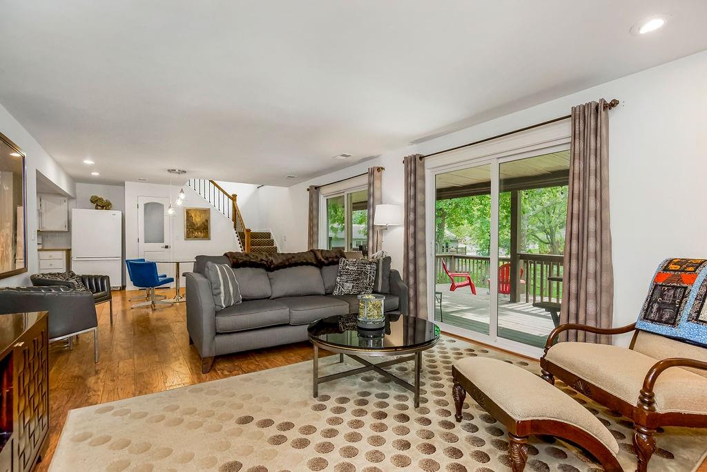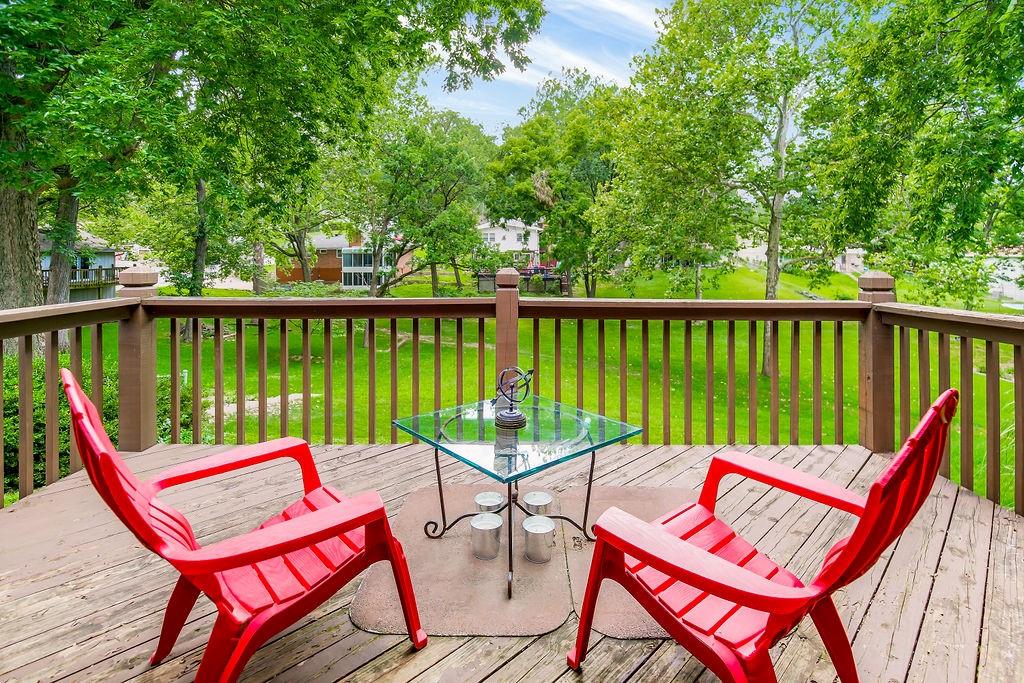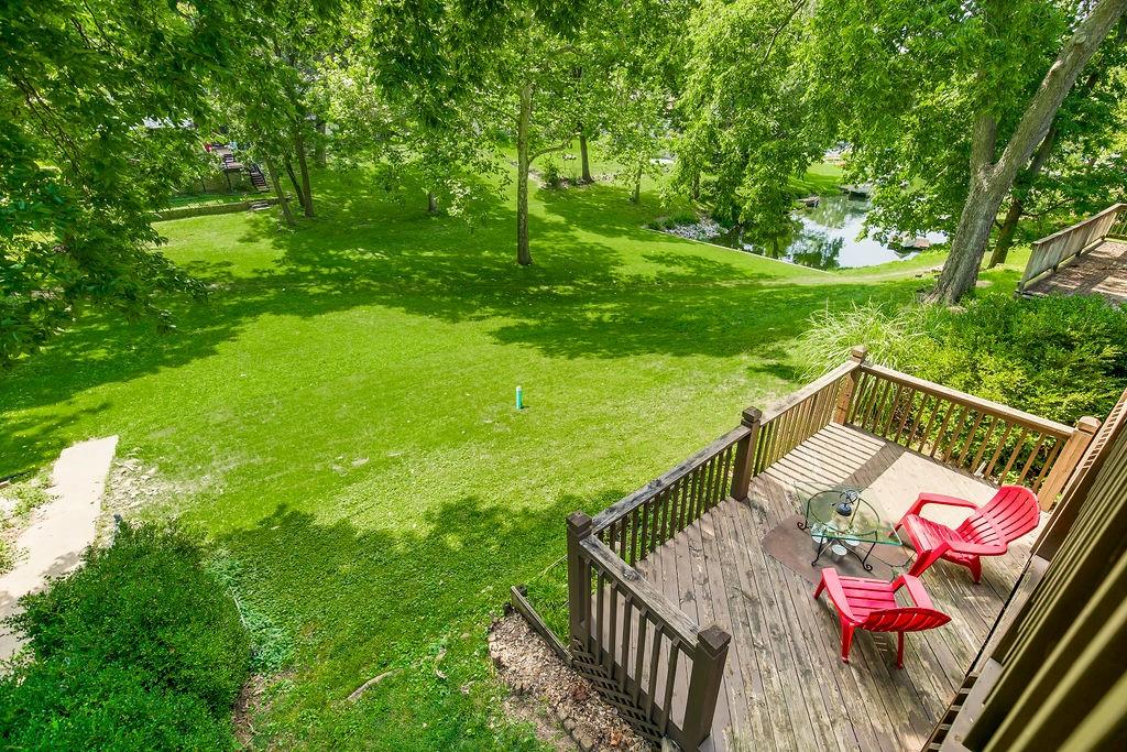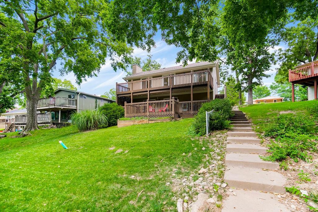 Enjoy lake living just 15 minutes from downtown in this Lake Waukomis home! Take in stunning main channel views from your private dock, perfectly positioned on open water. Located directly across from South Shore Park, you’ll love the convenience of nearby walking trails, tennis courts, a baseball field, playground, and extra guest parking. This home offers a classic lake layout with bedrooms on the main level and living spaces below. The spacious primary suite features direct access to a full-length double deck overlooking the lake. Two additional generously sized bedrooms, along with a Jack-and-Jill bathroom and convenient main-level laundry, complete the upper floor. A bright entryway with an open staircase and oversized window welcomes you with abundant natural light. The lower level is designed for both entertaining and everyday living, featuring a large family room with a stone fireplace and pellet stove, a well-appointed kitchen with white cabinetry, quartz countertops, a walk-in pantry, and room to add an island. A generous dining area, full bath, utility room, and additional rec space provide flexibility for your needs. Step outside to a covered deck that flows down to a second deck and a spacious backyard—perfect for enjoying the outdoors. Lake Waukomis is known for its strong sense of community, incredible amenities, and access to Park Hill schools. Experience the best of lake life—right at home.