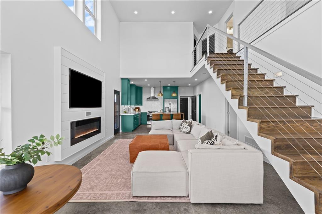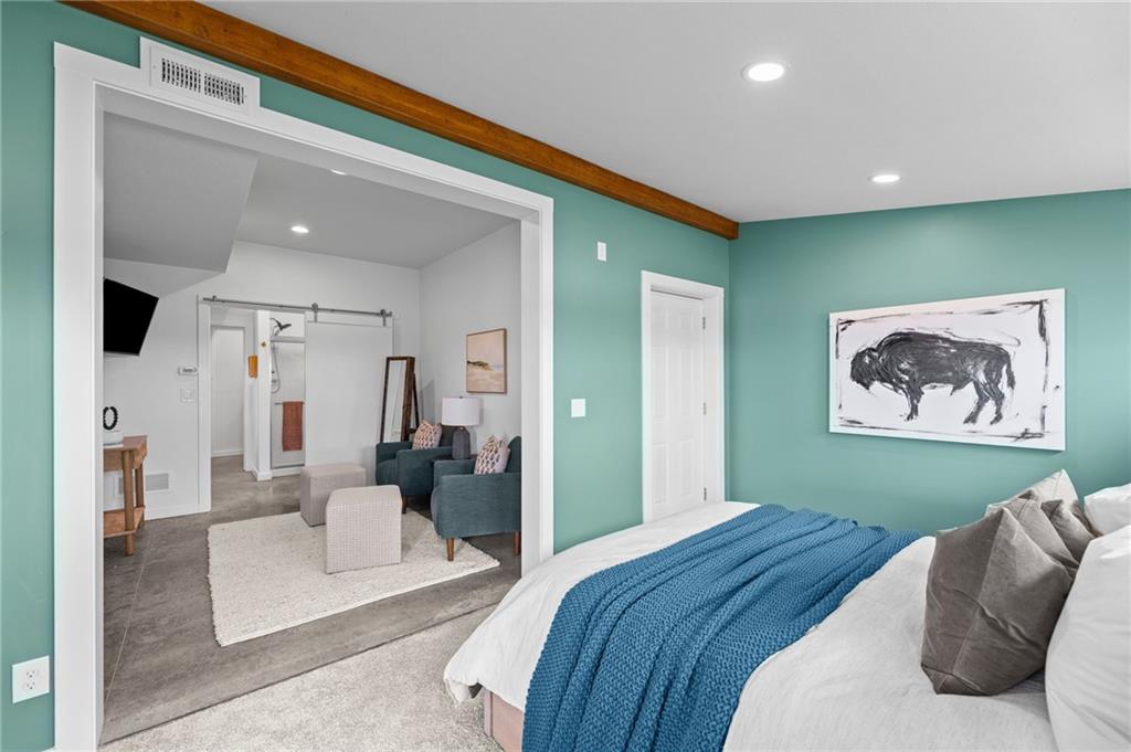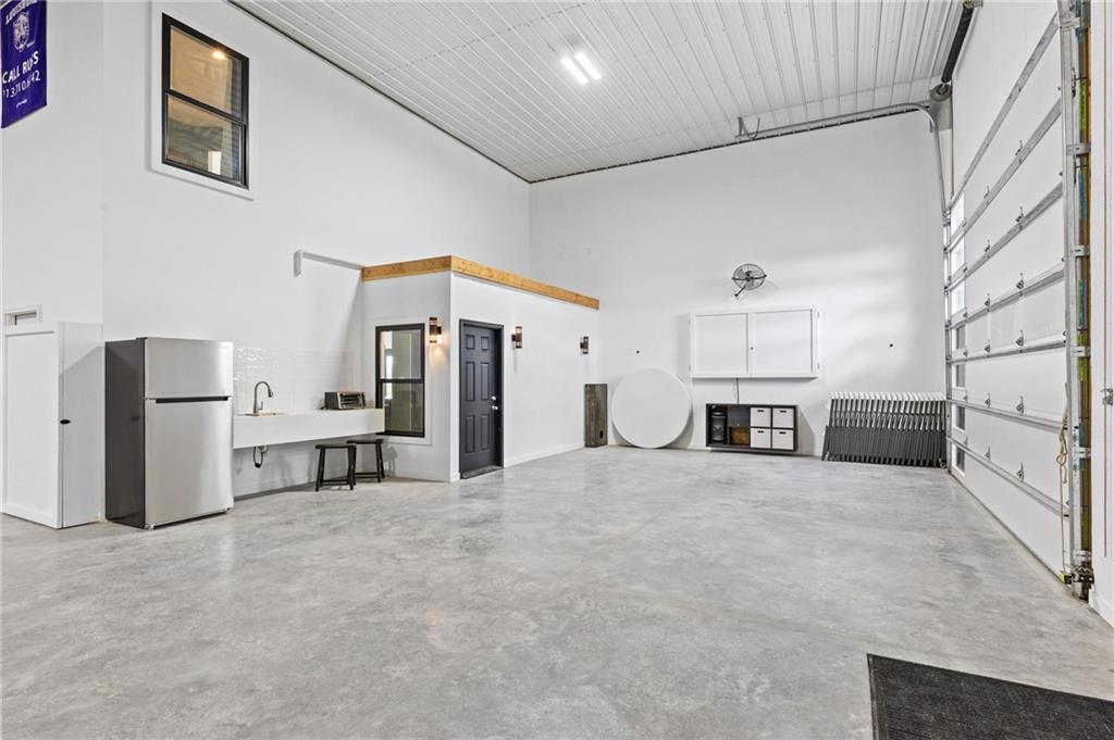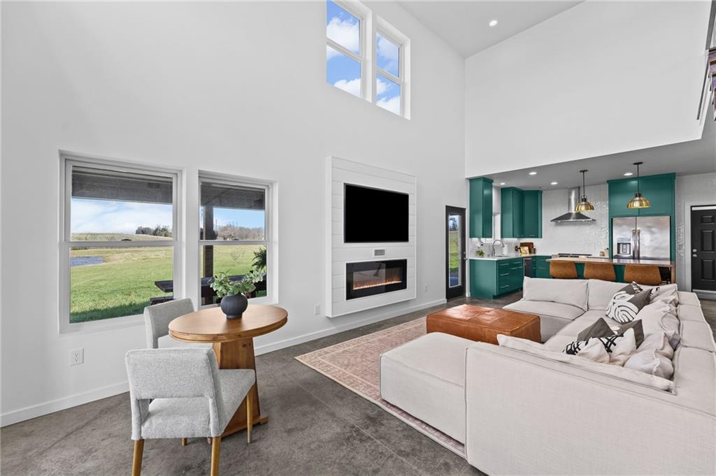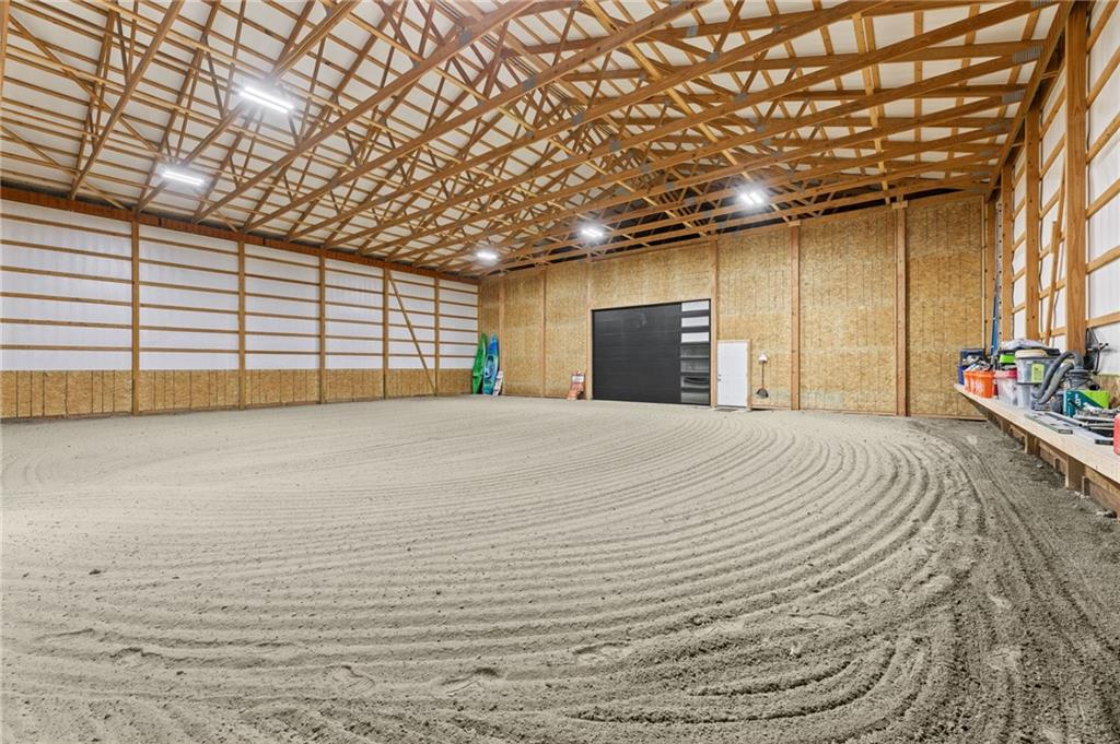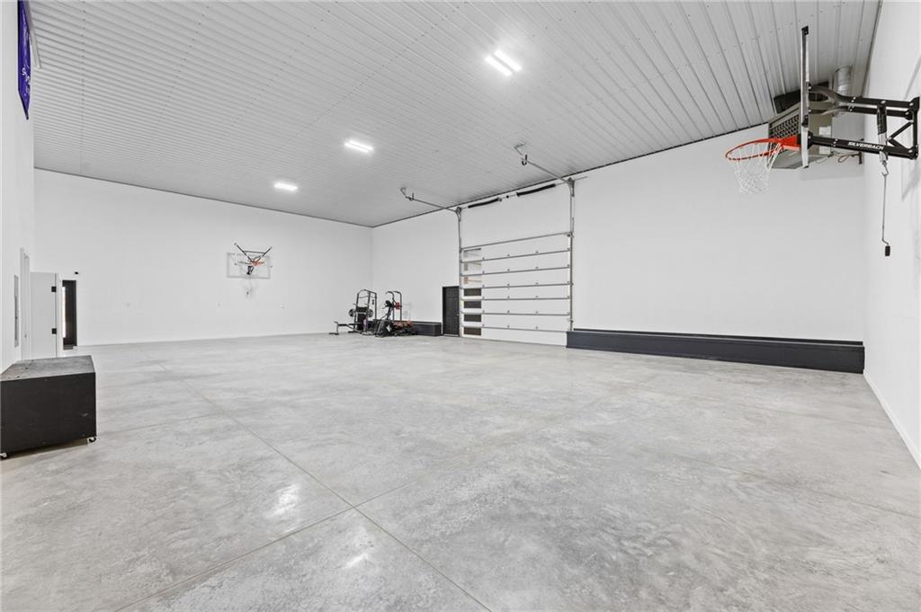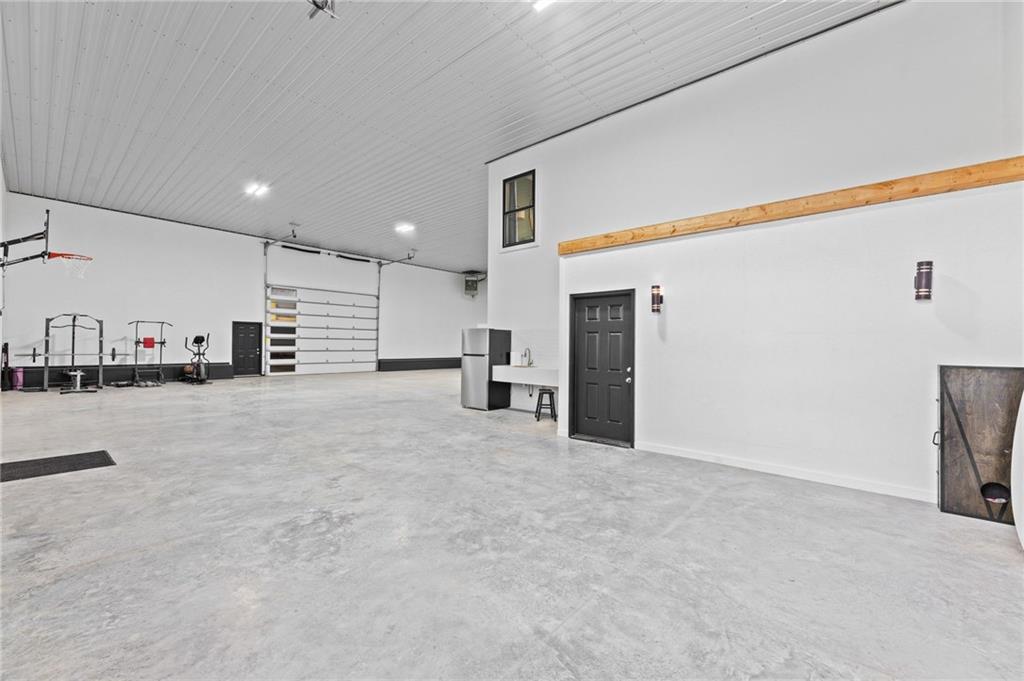 Experience function, flexibility, and country living with this custom-built barndominium on 14± scenic acres in Northern Miami County, located in the highly sought-after Louisburg School District. This impressive 60x125 structure with 18-foot sidewalls offers 1,600 square feet of thoughtfully designed living space alongside an expansive, multi-use shop. The 1.5-story home features an open, minimalist layout with 3 bedrooms (including one non-conforming), 2.5 bathrooms, and a main-level primary suite. Plumbing for radiant heat is installed in the concrete floors, and the living quarters is all-electric for efficient, comfortable living. Step outside and enjoy the 10-foot wraparound covered porch overlooking a picturesque setting complete with a professionally stocked, spring-fed pond, a creek, mature trees, and open pasture—ideal for both relaxation and recreation. The shop space is truly one-of-a-kind. Half is fully finished, heated, and insulated with a concrete floor, featuring a kitchenette, half bath, full RV hookups, basketball goals, and a large TV setup—perfect for entertaining or hosting game days. With ample space, you’ll have room to park multiple vehicles, equipment, or recreational toys indoors. The remaining half features a sand base, offering incredible versatility—ideal for an indoor riding area to keep horses conditioned year-round, equipment storage, or additional workspace tailored to your needs. Whether you’re looking for a hobby farm, entertainment hub, or a unique live/work property, this one delivers unmatched versatility in a beautiful rural setting.