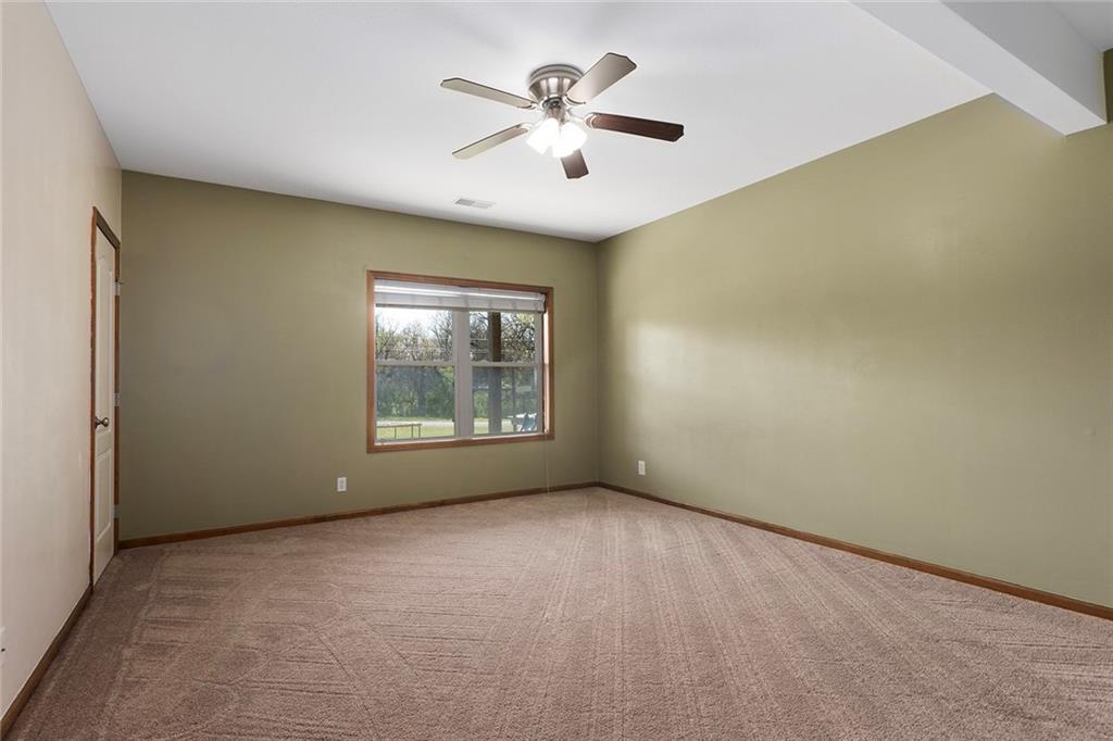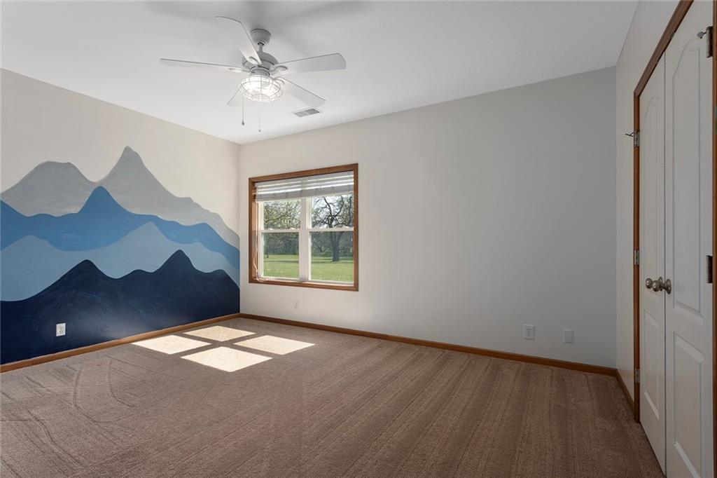 RARE 4-ACRE RETREAT JUST MINUTES FROM KANSAS CITY! Discover the perfect balance of privacy, space, and convenience with this exceptional reverse 1.5-story home tucked away in a picturesque, tree-lined setting. Offering nearly 4 acres of serene landscape, this property delivers a true country-living experience without sacrificing access to top-rated schools, shopping, and city amenities. Designed for both comfort and functionality, this home showcases vaulted ceilings, expansive living spaces, and an abundance of natural light. The main level provides effortless living, while the walkout lower level expands your options with a private 4th bedroom featuring its own exterior entrance—ideal for guests, multi-generational living, or a private office suite. Outdoor living shines with a wraparound deck, perfect for entertaining or simply enjoying the peaceful surroundings under a canopy of mature trees. Car collectors, hobbyists, or those needing extra space will love the oversized 3-car garage with extended bays and doors, plus a rare 4th garage on the lower level—offering unmatched flexibility. Thoughtfully updated throughout, with major improvements in the past 2–3 years including new hardwood floors, custom plank tile, updated lighting and fans, exterior stone accents, upgraded stair finishes, deck enhancements, and a fully finished lower level. Additional updates in progress add even more value. Don't forget the advantage of low energy bills due to the energy efficient living with Solar Panels. **Please note Solar Panels are paid for and there is no financial burden transferred to the buyer, just the savings. Opportunities like this—with acreage, upgrades, and location—are few and far between. This is the one buyers have been waiting for.