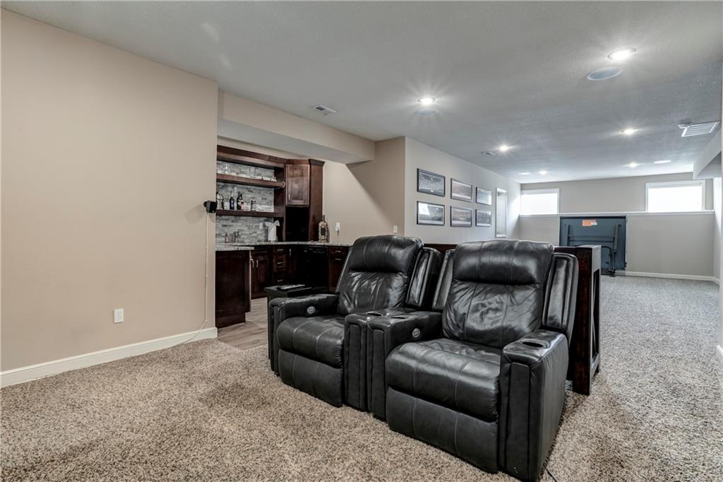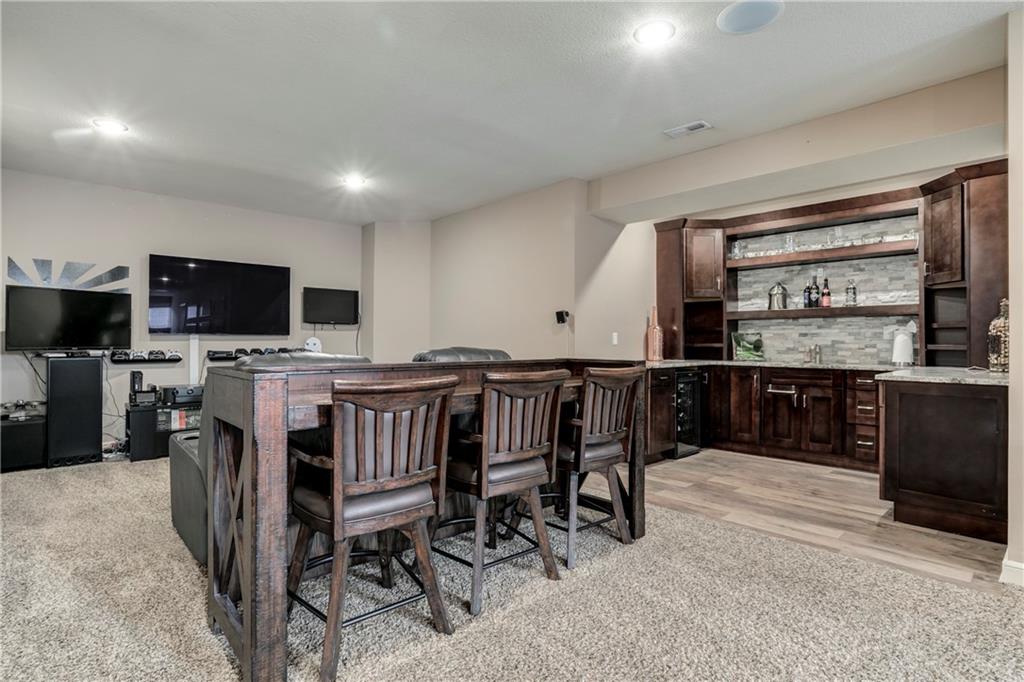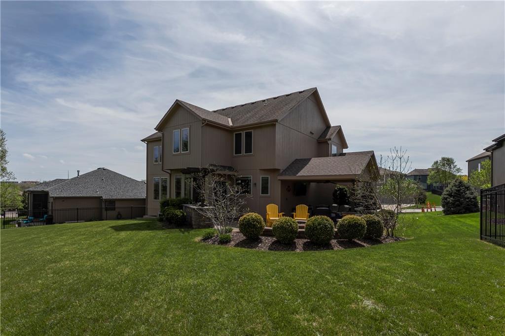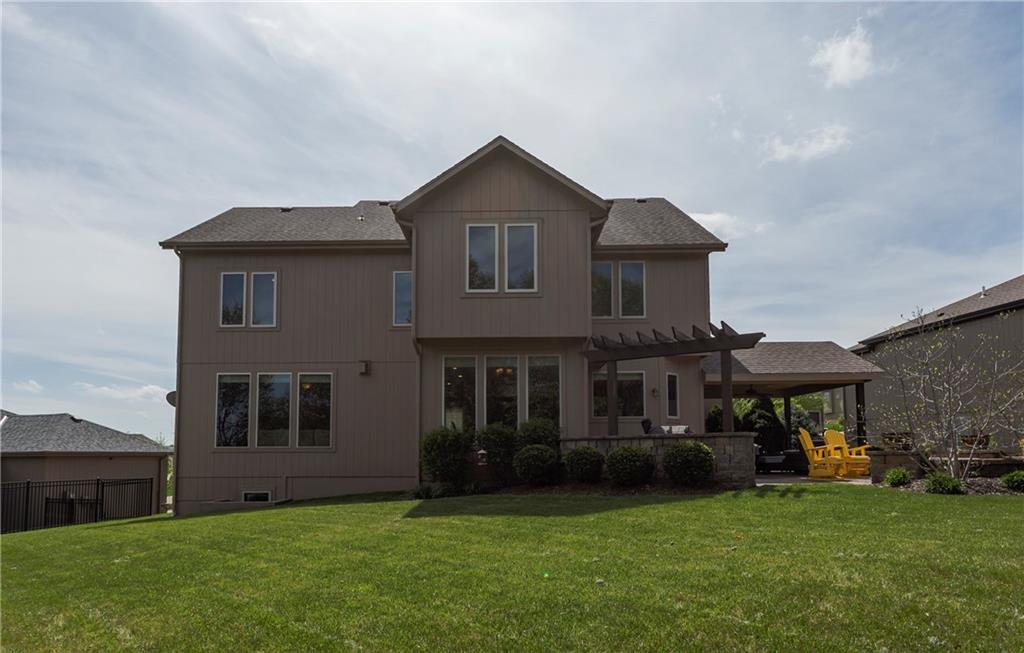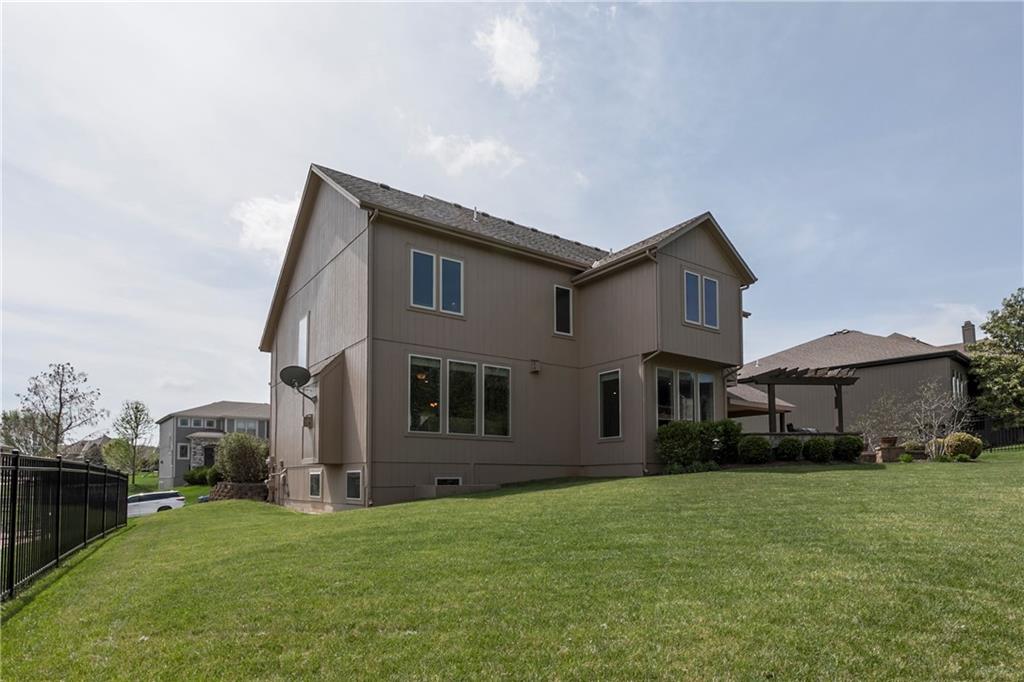 Tucked into Falcon Valley just off K-10, this four-bedroom home has a layout that simply works. Warm wood tones carry through the main level, the open floor plan makes entertaining feel effortless, and the kitchen anchors it all — oversized island, granite countertops, and a walk-in pantry built for real life. Upstairs, the primary suite is a genuine retreat — a sitting room, his-and-hers sinks, and a walk-in closet that finally has enough space. Three additional bedrooms offer flexibility for a home office, guest room, or however your household actually lives. The finished basement is where the fun lands — a generous entertaining space and a wet bar ready for game day or any good reason to have people over. Step outside to a covered patio, fire pit, and a backyard large enough to make you the first to volunteer as host. The oversized garage handles everything that goes with an active lifestyle. All of this on a quiet cul-de-sac in the heart of Lenexa — neighborhood feel, with easy highway access when you need it.