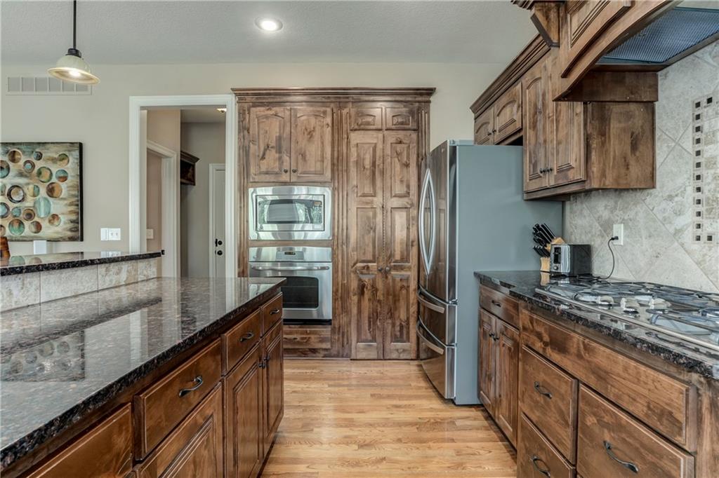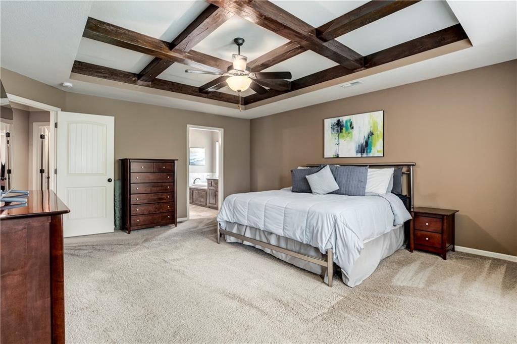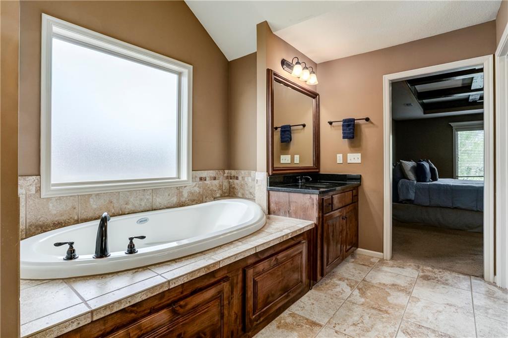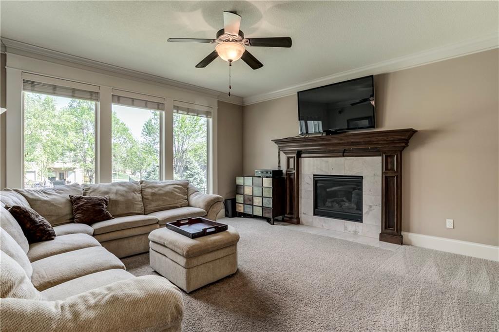 Tucked into Falcon Valley just off K-10, this four-bedroom home has a layout that simply works. Warm wood tones carry through the main level, the open floor plan makes entertaining feel effortless, and the kitchen anchors it all — oversized island, granite countertops, and a walk-in pantry built for real life. Upstairs, the primary suite is a genuine retreat — a sitting room, his-and-hers sinks, and a walk-in closet that finally has enough space. Three additional bedrooms offer flexibility for a home office, guest room, or however your household actually lives. The finished basement is where the fun lands — a generous entertaining space and a wet bar ready for game day or any good reason to have people over. Step outside to a covered patio, fire pit, and a backyard large enough to make you the first to volunteer as host. The oversized garage handles everything that goes with an active lifestyle. All of this on a quiet cul-de-sac in the heart of Lenexa — neighborhood feel, with easy highway access when you need it.