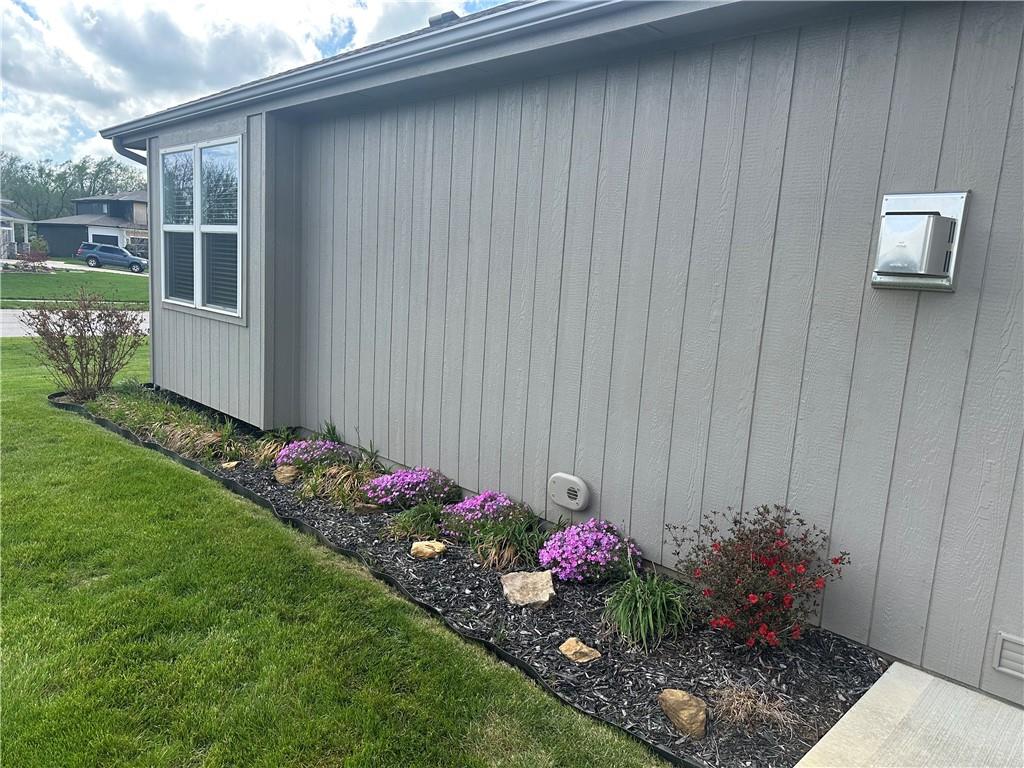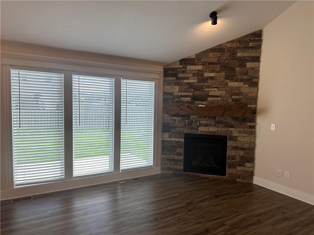 This home has just had a HUGE PRICE REDUCTION and is of amazing value! Welcome to this stunning ranch/reverse 1.5-story home, where thoughtful design and modern finishes come together seamlessly. The open-concept living room, kitchen, and breakfast area make a striking first impression with soaring cathedral ceilings, luxury vinyl plank flooring, and expansive windows that bathe the space in natural light. The kitchen is both stylish and functional, featuring upgraded granite countertops, a beautiful tile backsplash, painted cabinetry, and stainless steel appliances. Just off the kitchen, the breakfast area opens to a covered patio through sliding glass doors. The living room provides the perfect spot to relax, with a gorgeous fireplace. The primary suite is complete with vaulted ceilings, box bay windows overlooking the backyard, and lush carpet floors. The en suite bath offers a double vanity, a beautifully tiled walk-in shower with a built-in niche and granite bench, and a walk-in closet. Two additional bedrooms with generous closet space, a second full bathroom, and conveniently located laundry complete the main level. The builder-finished basement extends the living space with a fourth bedroom featuring a large egress window, a third full bathroom, and an expansive family room and recreation area—ideal for entertaining or relaxing. Situated on a generous corner lot, the home also features a large patio with both covered and uncovered areas, perfect for hosting BBQs or enjoying time outdoors. Notable upgrades include an irrigation system, buried downspouts, enhanced landscaping, a vertical garage door opener, and an expanded patio.
