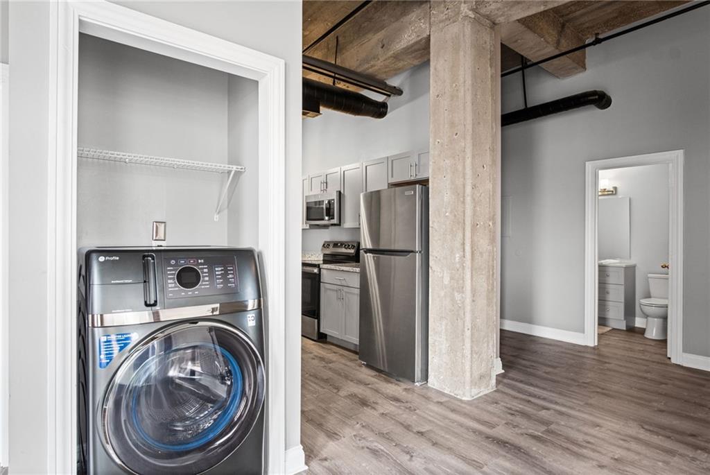 Stunning corner loft in the River Market! This historic building features 12' ceilings and awesome urban views through the massive walls of windows. Newly remodeled kitchen and baths. Stainless appliances, exposed brick, vinyl plank flooring. Euro washer/dryer included. Two permit parking spaces included and extra designated surface parking available to purchase. Seller paid one year Home Warranty included! Walk to the City Market, hop on the streetcar right outside your door, or take advantage of the easy highway access nearby. Put your mind at ease in this condo building with LOW HOAs! Secure building entry and limited access package room located on 2nd floor. Don't miss an opportunity to own a one of a kind loft in the River Market!