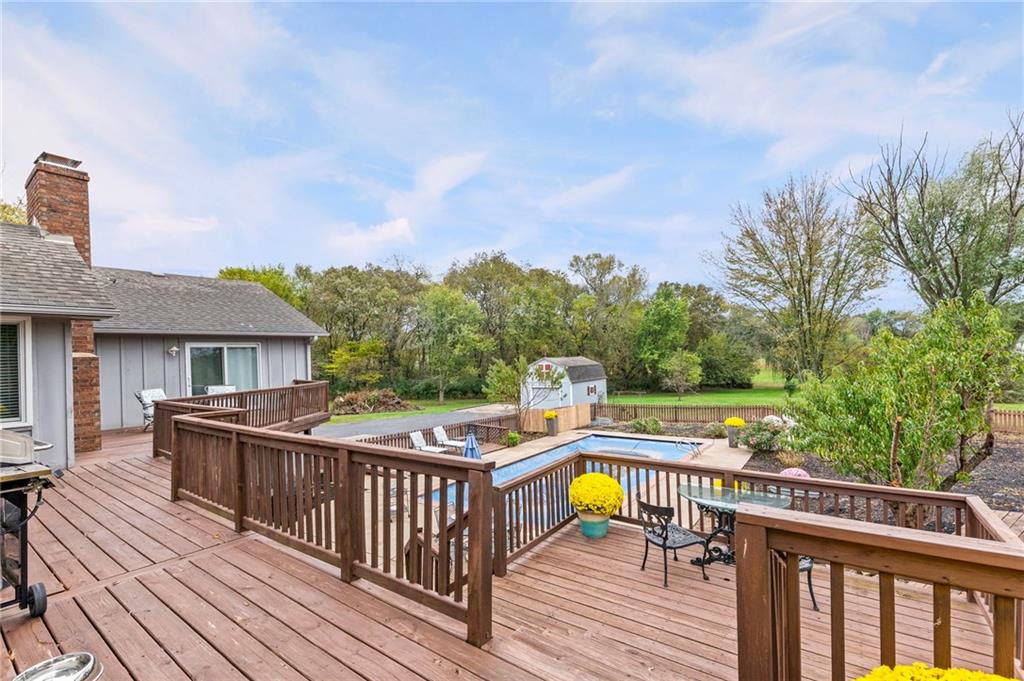 Entertainer’s haven on 3.6 acres. Designed for gathering, this 3,498-sq-ft retreat pairs a chef’s kitchen and heated sun porch with a two-story deck that spills down to a pool and hot tub. The lower level is party-ready—second kitchen, half bath, game-day lounge, space for a pool table and more, and a non-conforming guest room—while dual garages (2 up/2 down) plus an equipment outbuilding keep life organized. Fenced dog yard, workshop, expansive owner’s suite, pro landscaping, and no HOA freedom—set in unincorporated Cass County for the space and privacy you’ve been craving. Dual main floor primary suites as well as lower level second Kitchen offer unlimited possibilities. Exterior paint job on the way!