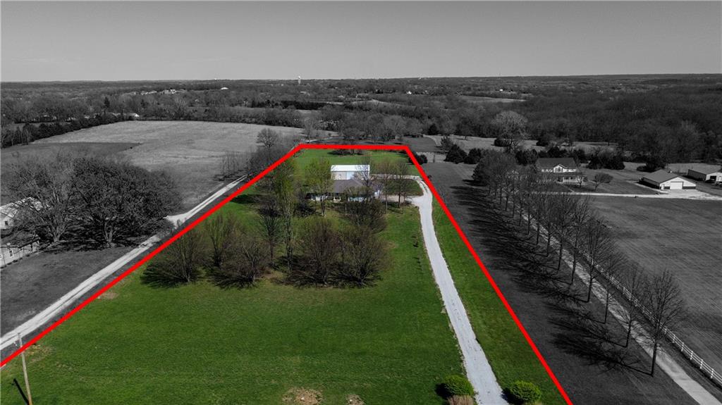 Dream property! Exceptional, spacious custom-built 2,034 sq ft ranch with 5 acre estate lot in desirable Grain Valley school district. 3 bedroom, 3.5 bathroom, stunning entryway, sitting room/formal living room, open floor plan with see-through gas fireplace, tons of windows and light with custom blinds. Large open kitchen with eat-in space, also separate dining room, built-in desk, large pantry. Private master bedroom, master bathroom with dual sinks, vanity, shower and hot tub. Screened in back porch off the living room. 3 car garage with full bath access. 30x50 outbuilding with sliding doors on three sides, insulated with concrete floors and power, lean-to on pasture side. Fencing around house and separate fencing around open pasture. Tons of mature plants and flowers. You don't want to miss this one!