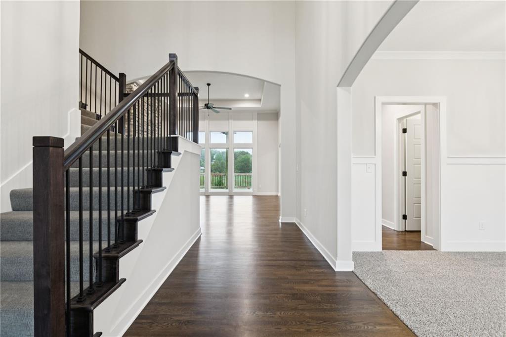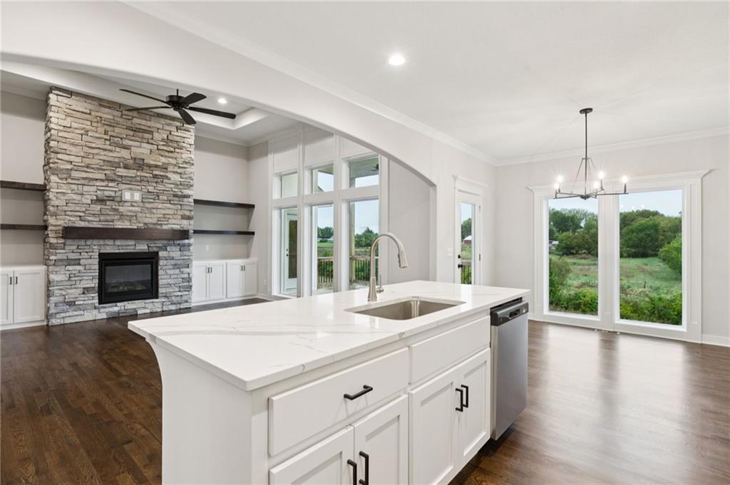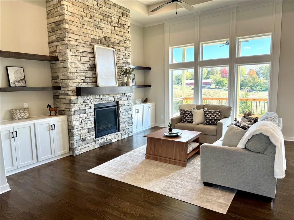 BACKING TO GREEN SPACE WITH LAKE VIEW, The "HALLE" by Robertson Construction is a well designed 1.5-Story showcasing beautiful detail throughout! Offering 4 Bedrooms, 3.5 Baths, 2nd Level Loft and WALKOUT BASEMENT makes this home a favorite! The Main Level features Floor to Ceiling Windows providing a peaceful view while bringing in an abundance of natural light, Soaring Ceiling, Bonus Butlers Pantry, Stone Fireplace accented with Floating Shelves and Built-in Cabinets and a Master Suite with a luxurious spa-like Master Bath seamlessly connected to the Laundry Room complete with a sink, storage and large countertop. The Covered Deck is accessible from both the Main Level Master Suite and Breakfast Area. Upstairs you will find 3 more bedrooms, 2 full baths and a Loft. Covered porch at entry. Patio at Walkout Basement. SUBDIVISION POOL AND WALKING TRAIL. Located in the highly-rated Liberty School District. Close to the Historic Downtown Liberty Square with shops, dining, entertainment and farmers market. Photos and matterport video are of a previously built home, finishes may vary.