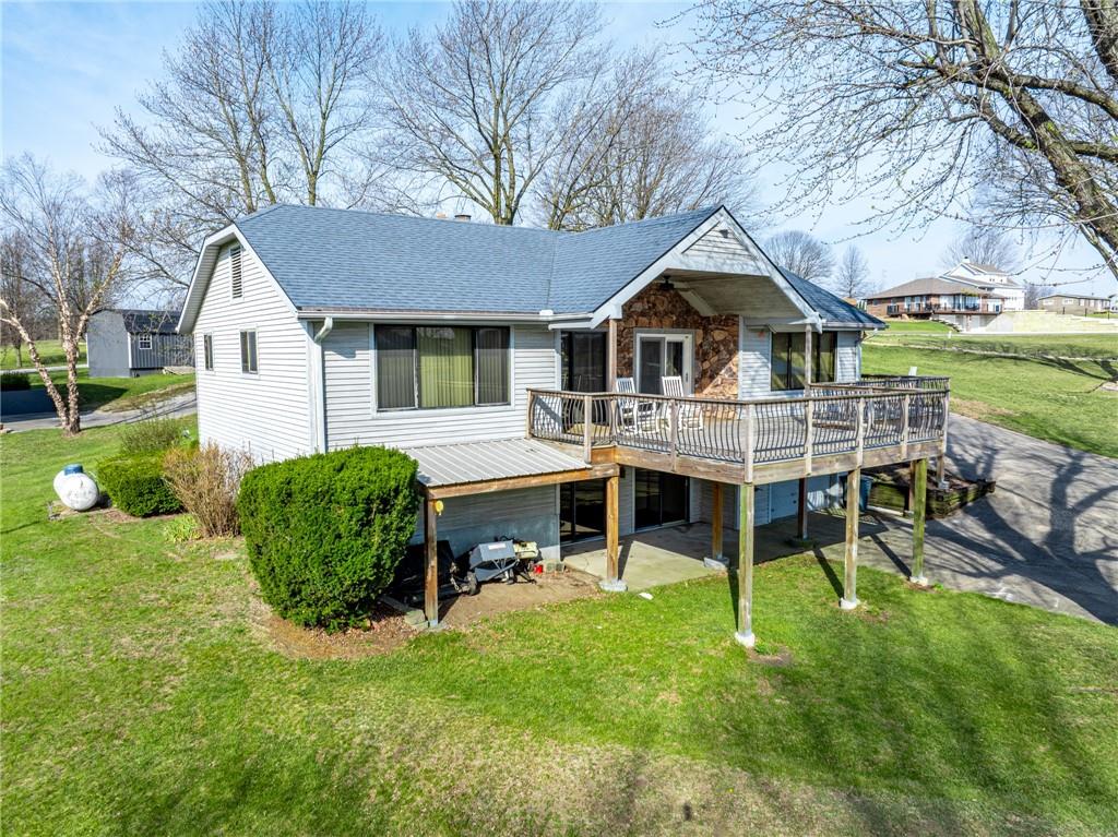 Lake Life Starts Here—Perfect for Making Family Memories! This waterfront gem sits on a spacious ½-acre lot with a HUGE, LEVEL lakeside yard—ideal for kids to run and play, yard games, evening bonfires, and soaking in the breathtaking lake views! Located in a protected area of the lake, the water is calm and perfect for swimmers, kayakers, and fishing—making it a true family-friendly setting. The home features a main-level living room with vaulted ceilings and a cozy wood-burning fireplace—perfect for relaxing evenings after a day on the lake, the kitchen, a dining area featuring amazing views, and an oversized primary suite. Downstairs, you’ll find a spacious family room with a wet bar and full bath, ideal for coming and going from the water and entertaining guests with ease, plus 2 bedrooms—one non-conforming—so there’s plenty of space for family and overnight guests. Back outside, the oversized deck is perfect for grilling, gathering, and watching the sunset, while the private dock with 1 boat slip and swim platform makes lake days fun and easy for all ages. Add in the 1-car garage, Yacht Club privileges and prime location for quick and easy access, and you’ve got the ultimate family lake retreat!