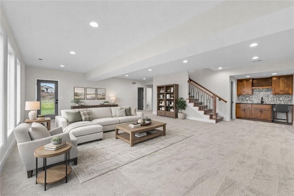 **CADENCE VILLAS PRESTIGIOUS PHASE 1 - PRE-SPRING PARADE BUYER OPPORTUNITY $10,000 to use your way! OFFER GOOD THROUGH APRIL 24, 2026** Villa is finished and ready for a very lucky buyer. The Scottsdale by Ernst Brothers Construction. Welcome to easy living with style. This villa offers true main-floor convenience in a maintenance-provided Hunt Midwest community—landscaping and snow removal are handled, so you can spend more time enjoying life and less time chasing weeds or shoveling.The open kitchen shines with custom painted cabinets, stainless appliances, a large island, and a walk-in pantry. Soft-close drawers and doors mean no more late-night cabinet slams. The dining area flows right out to the covered/screened in deck—perfect spot to enjoy your favorite beverage. The Primary Suite is designed for comfort, with a spacious walk-in closet, dual vanity, oversized shower, and handy linen storage. Even better—you can enter the laundry room directly from the primary closet or the hallway. Smart, right? The main level also includes a guest full bath and a flexible office/bedroom, while the finished walkout lower level offers a large rec room with wet bar, a bedroom with another walk-in closet, and a full bath—plenty of room for visitors, hobbies, or game day. Cadence Villas Homeowners also pay the Annual master association fee of $650 for pool access, walking trails, and upkeep of common areas. Taxes, square footage, room, and lot sizes are approximate. But the lifestyle? That’s guaranteed.
