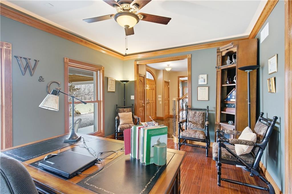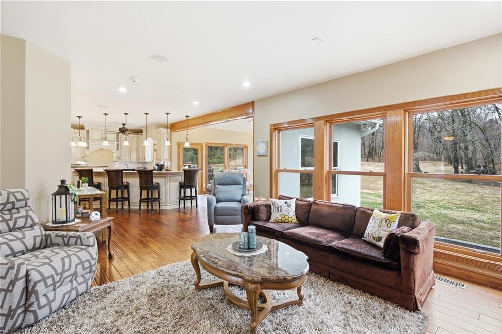Welcome to your Dream Retreat in Columbia, Missouri! Nestled on 26 breathtaking acres, this one-of-a-kind property offers the perfect balance of luxury living and outdoor recreation. The land features a stocked private lake complete w/ islands and bridges, creating a stunning centerpiece that feels like your own private resort. Property is loaded w/ deer and turkey, making it an exceptional retreat for wildlife lovers and outdoor enthusiasts. The 7,500 sq ft custom home has been meticulously cared for and is filled w/ high-end features throughout. From the granite entryway, you’ll appreciate the craftsmanship and attention to detail, including hand-scraped teak floors, a stunning curved staircase, and 2 fireplaces. The home offers 4 spacious bedrooms and 5 bathrooms, along with a quiet study, large office space, abundant storage, and an attached three-car garage. The fantastic kitchen is built for both everyday living and entertaining, featuring a Wolf gas stove, high-end appliances, a hidden pantry, and generous storage space throughout. Just off the main living area, the sunroom provides the perfect place to relax and watch the wildlife, overlooking the incredible scenery this property has to offer. The luxurious master suite includes a spa-like bathroom equipped with heated floors, TV, coffee maker, and refrigerator, as well as a large walk in closet. The finished basement is designed for entertaining, featuring a spacious entertainment area along with a bar and small kitchen, making it the ideal place to host guests, watch the big game, or unwind after a long day. Outside, the property also includes a large two-story outbuilding with potential living quarters, providing endless possibilities for guests, a workshop, or additional storage. This rare 26 +/- acre estate truly offers the best of both worlds - a private retreat with incredible scenery, wildlife, and recreation located just 7 miles from downtown Columbia. Opportunities like this are incredibly rare!