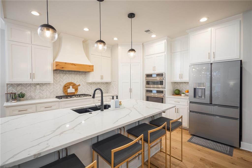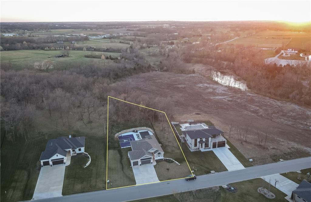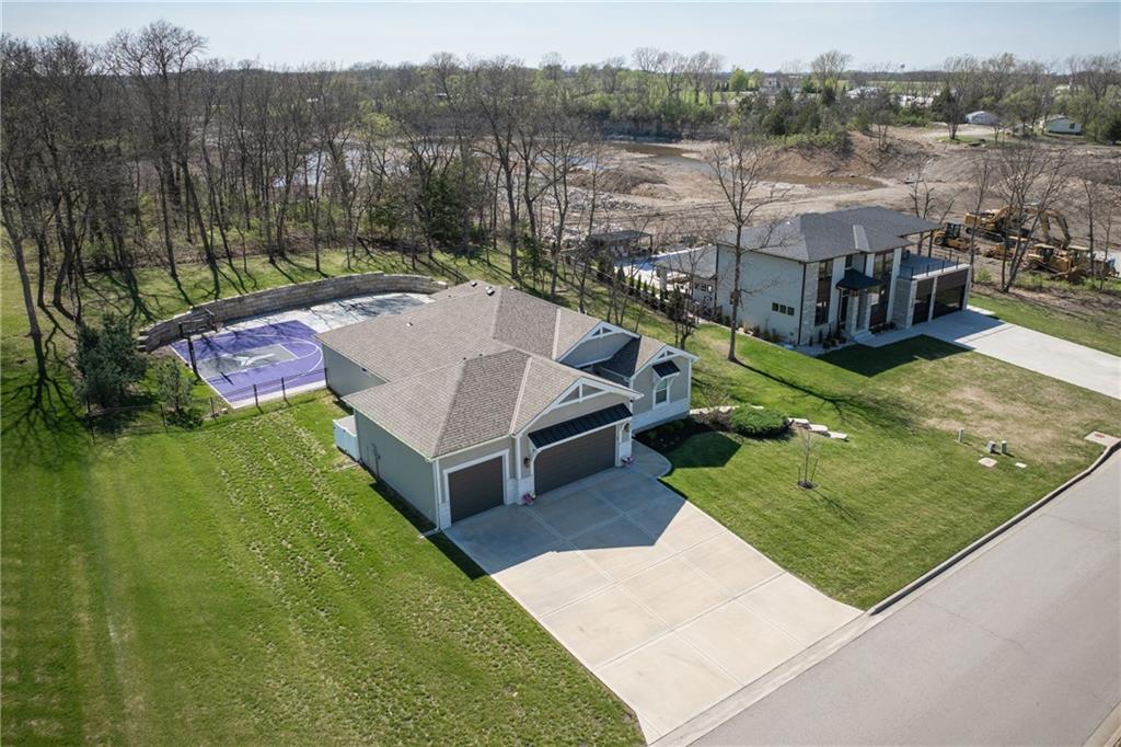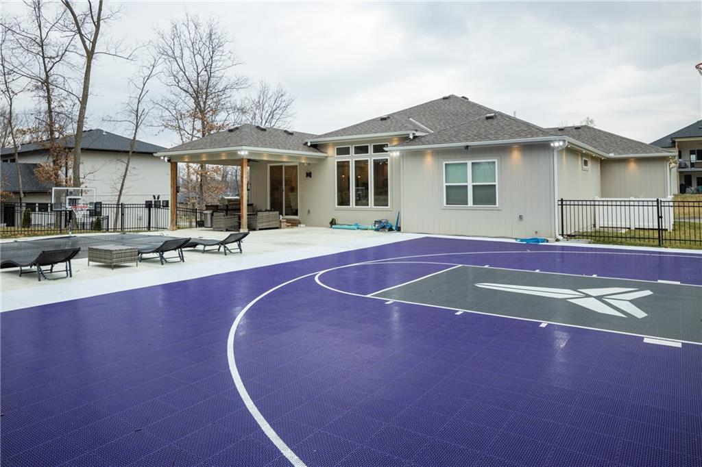Experience resort-style living in this stunning 4.5-year-old reverse ranch with 4 bedrooms & 3 bathrooms with upscale finishes and exceptional amenities throughout. Designed for both everyday comfort & elevated entertaining, this home truly has it all. Step outside to your private oasis featuring a heated saltwater/chlorine pool complete with a built-in basketball goal, expansive outdoor kitchen with premium Blaze appliances & a half-court sport basketball court—perfect for hosting or relaxing in style. Inside, the main level showcases real 5” hardwood floors & a chef’s kitchen outfitted with top-of-the-line Café appliances, including an Advantium oven. A spacious walk-in butler’s pantry provides additional cabinetry & a beverage refrigerator for ultimate convenience. The finished basement is an entertainer’s dream, featuring a full-size bar with a built-in kegerator. The luxurious primary suite is a true retreat, boasting heated bathroom floors, dual shower heads including a rain feature, tall ceilings with a marble accent wall & a TV positioned above the soaking tub for added relaxation. The oversized walk-in closet includes a built-in dresser, custom shelving, and three-tiered hanging rods. Additional highlights include a functional mudroom off the garage, enhanced interior and exterior lighting, generously sized bedrooms with walk-in closets, and premium finishes throughout. Situated on over ¾ of an acre, the property offers a picturesque setting with mature trees, green space, and a striking stone wall. Enjoy exclusive access to the lake with a community dock slip and available lift lease, plus the added benefit of 2026 HOA fees covered for the new owner. The neighborhood enhances the lifestyle with amenities including a park, walking trails, pickleball and tennis courts, a yacht club & an upcoming community pool & clubhouse. Don’t miss this rare opportunity to own a home that perfectly blends luxury, recreation, and tranquility. *Owner/Agent*