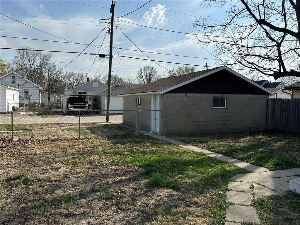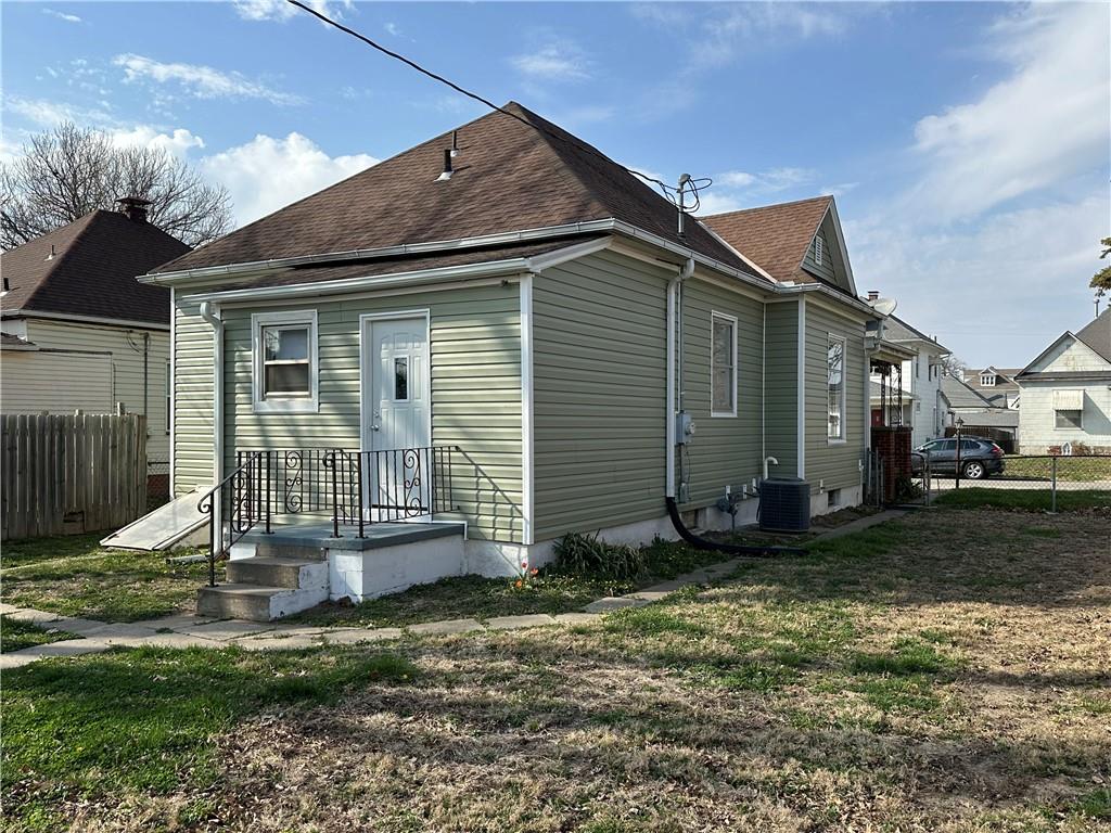 Move-in ready home featuring a fantastic covered front porch with beautiful views of the Carnegie Library grounds—perfect for relaxing on mild evenings and warm summer days. This charming home offers two bedrooms sharing one bathroom, with fresh paint and updated flooring. The large, open kitchen boasts solid surface countertops and new stainless steel appliances that stay with the home. Full unfinished basement with easy access and tons storage space. Newer 220 amp panel box. Paved alley access leads to a detached 2-car garage, providing plenty of off-street parking. Level, fenced backyard and maintenance free vinyl siding.