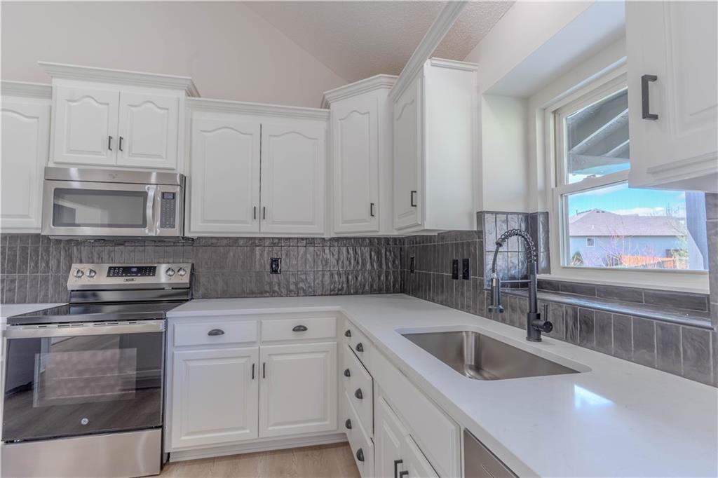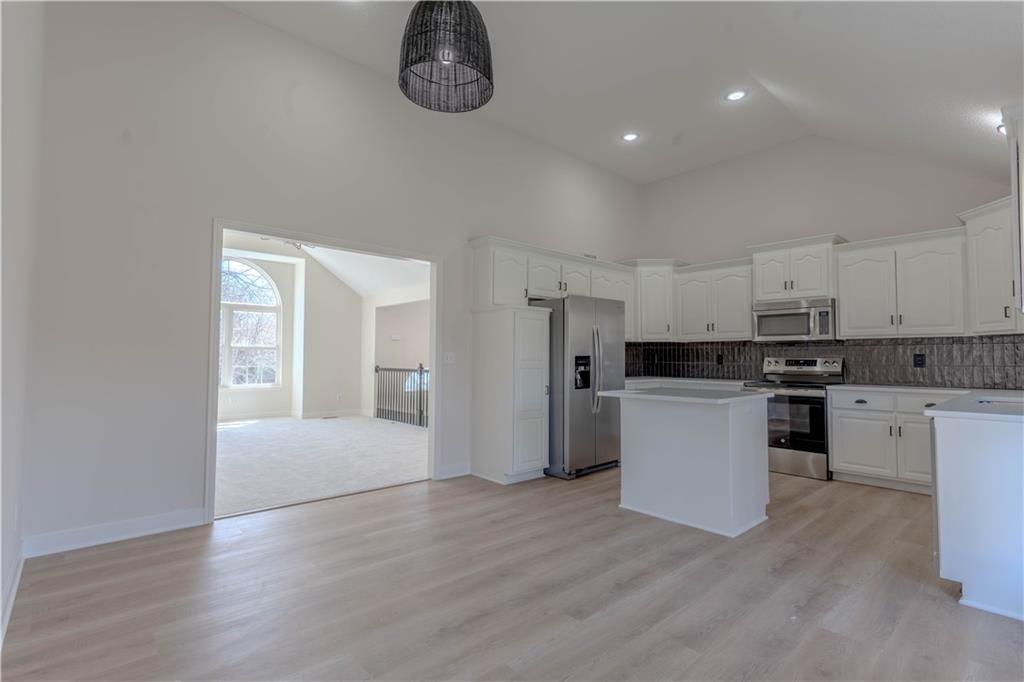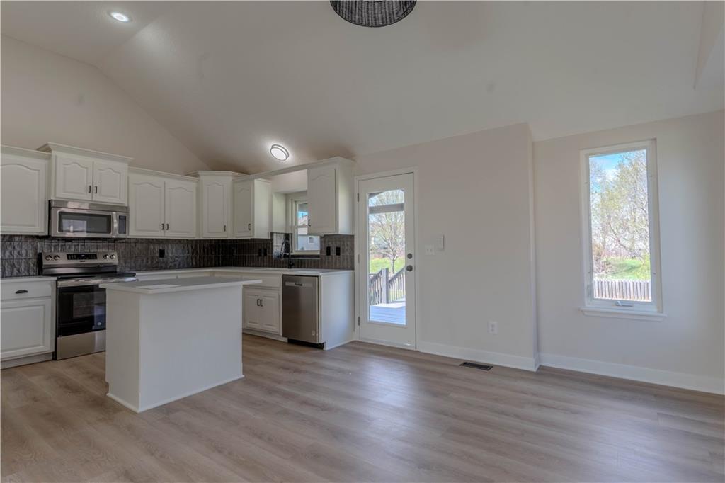 Newly updated Liberty North school district with stainless steel appliances, painted cabinets and quartz countertops, new flooring throughout, all new lighting and vanities, updated tile, and large covered deck perfectly updated and ready for you to move right in. Huge garage very deep almost 1000 square feet, including Family safe storm shelter.