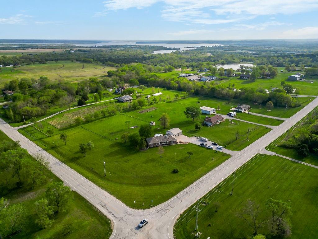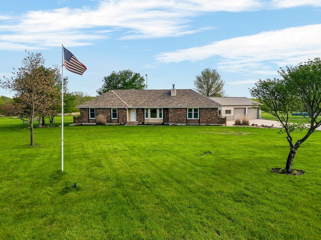 South on 169 Hwy to 255 Street Exit, west on 255th through Hillsdale and over Hillsdale Lake dam. Turn west on 271st, home is at the corner of 271st & Weaverly RD.