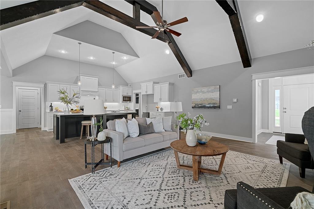 Ever popular Aspen Reverse 1.5 story home by Prieb Homes offers a spacious and open floor plan with impressive details throughout. The soaring vaulted ceilings with stained beams and stunning stonework surrounding the fireplace create a grand first impression as you enter the home. The kitchen features a massive granite center island, perfect for entertaining and providing functionality for day-to-day living. The primary suite offers a relaxing retreat with an adjacent bonus office space and a laundry room with built-in cabinetry. The spa-like primary bath boasts a custom shower with dual shower heads and separate vanities. The finished lower level features a wet bar, two additional bedrooms, and a full bath. Enjoy the serene & large covered 14x12 deck. Room sizes and taxes are estimated, and some features may not be available in this spec home. Please note that the photos provided are of a previously built Aspen Reverse 1.5 spec, and some features may not be included. It's recommended that buyers work with their agent to confirm the details of the home.