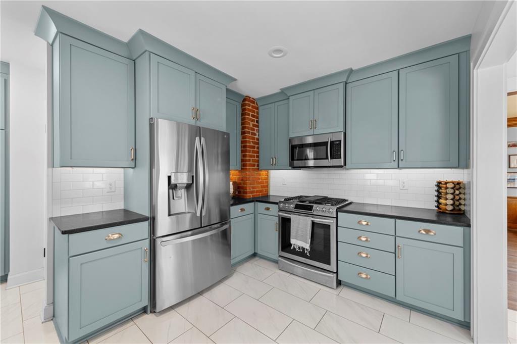 This traditional Brookside home is located on a desirable street with an inviting front porch and tons of charm! The living and dining rooms are generously sized for the area and feature original woodwork and built-ins and beautiful hardwoods throughout. Gorgeous Kitchen has been remodeled with high-end finishes, stainless appliances and features a breakfast room. New roof, newer HVAC, and Renewal by Andersen windows throughout. Large expandable unfinished attic offers significant opportunity to add square footage, including potential for a primary suite (stubbed for plumbing). Unfinished basement is super clean with high ceilings and egress windows. Private drive and one-car garage provide off-street parking. Convenient location with walkability to UMKC and Rockhurst, local restaurants (Earls' Premier is 1 block away), Crestwood and Brookside shops, and the Trolley trail.