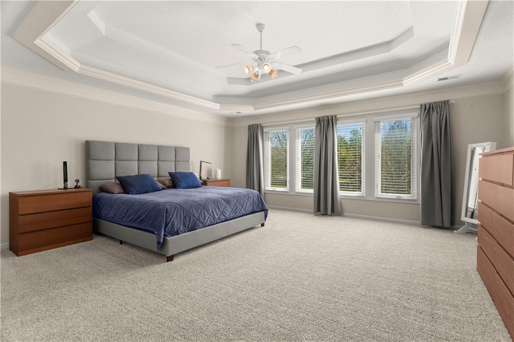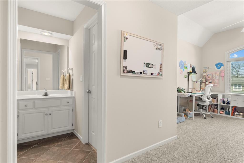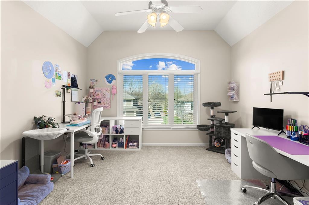 This is a true stunner in the coveted Paddock neighborhood, where pride of ownership shines throughout. You’ll immediately notice the abundance of natural light pouring in through oversized, newer (all replaced 2-3 years ago) windows. A spacious entry welcomes you and flows seamlessly into the main living areas. The well-appointed kitchen offers ample cabinet and counter space, a large island, walk-in pantry, and casual dining area. It opens to a cozy hearth room with a see-through gas fireplace shared with the adjoining family room—generously sized and highlighted by a bow window that maximizes natural light. The kitchen and family room overlook a gorgeous, fully fenced backyard—perfect for entertaining—with a 17x14 deck and matching sized patio pre-wired for a hot tub. A formal dining room with elegant trim adds versatility, while a half bath and spacious laundry room with built-in sink complete the main level. Upstairs, accessible by two staircases, you’ll find an inviting primary suite with a spacious bedroom and a well-appointed ensuite featuring double vanities, a whirlpool tub, and a truly impressive walk-in closet. Three additional bedrooms all include walk-in closets—one with a private bath, the others connected by a Jack-and-Jill. A bright loft with vaulted ceiling and skylight offers the perfect reading nook or flex space. The finished daylight basement includes a 5th non-conforming bedroom or office, along with high-quality finishes ideal for a theater or workout area. An attached bar space, plus room for a game table, a 4th full bath, and generous unfinished storage complete the lower level. Zoned HVAC adds efficiency, and the oversized 3-car garage easily accommodates a full-size truck. The carpets in the home were replaced about 2-3 years ago. There is also a battery back-up system on the sump pump.