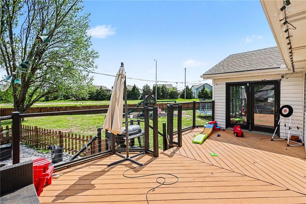 Discover this beautifully updated modern Craftsman farmhouse offering 4 bedrooms and 3 full baths in the highly desirable Persimmon Hill community. Situated on one of the largest privacy-fenced backyards on a cul-de-sac in the neighborhood, this home combines space, style, and functionality in an ideal location near Olathe West High School. Step inside to a bright, open-concept layout designed for both everyday living and entertaining. The spacious bedrooms provide comfort and privacy for everyone, while the lower level features a second living area—perfect for movie nights, game days, or a playroom. The kitchen has been thoughtfully upgraded with all-new granite countertops, a stunning island with waterfall edges, and modern finishes that elevate the heart of the home. Additional updates include sleek electric fireplaces and custom wire railings that add a contemporary touch throughout. This popular split-entry floor plan offers flexibility and flow, while the oversized, deep two-car garage provides ample room for vehicles, tools, toys, or even a workshop. Enjoy all the amenities Persimmon Hill has to offer, including multiple pools, tennis courts, walking trails, a lake, and greenway access. If you’re looking for a home that blends modern updates with practical living space, this one delivers. Schedule your showing today.