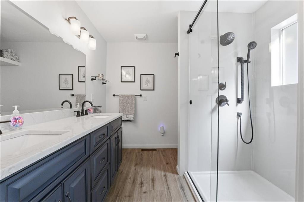 Come live the lake life in this beautifully maintained and affordable Raintree Lake home! This stunning 1.5-story offers an open floor plan designed for comfort and functionality. The main-level primary suite provides convenience and privacy, while the upper level features three additional bedrooms and a versatile loft—perfect for a home office—overlooking the living room. The finished basement adds extra living space with a recreation room, ample storage, and the option to add a third full bathroom. From the moment you enter, you’re welcomed by hardwood floors, a cozy fireplace, and a seamless flow into the updated kitchen with newer stainless-steel appliances, granite countertops, and luxury vinyl plank flooring in the kitchen, hall, and laundry. Main-level laundry adds convenience, while the primary suite features dual closets and a FULLY renovated bathroom. Relax year-round in the all-season sunroom off the primary bedroom—ideal as a sitting area or office. Enjoy sunrises from the front porch or unwind on the composite deck or around the fire pit in the fenced backyard. The basement includes a built-in Dolby surround sound system, a built-in safe, app-controlled lighting inside and out, & a wet bar. Major updates include new windows & exterior doors, newer roof, high-efficiency HVAC, hot water heater, sump pump backup, fresh exterior paint & an epoxied garage floor. It has also been radon mitigated! Located in Cass County with lower taxes and Ray-Pec Schools, this home also includes incredible amenities with low HOA dues: boating, fishing, kayaking, trails, ponds, playgrounds, and an Olympic-sized zero-entry pool with waterslide. No boat? Rent the HOA pontoon. Enjoy food trucks, events, and social clubs—resort-style living close to the city!