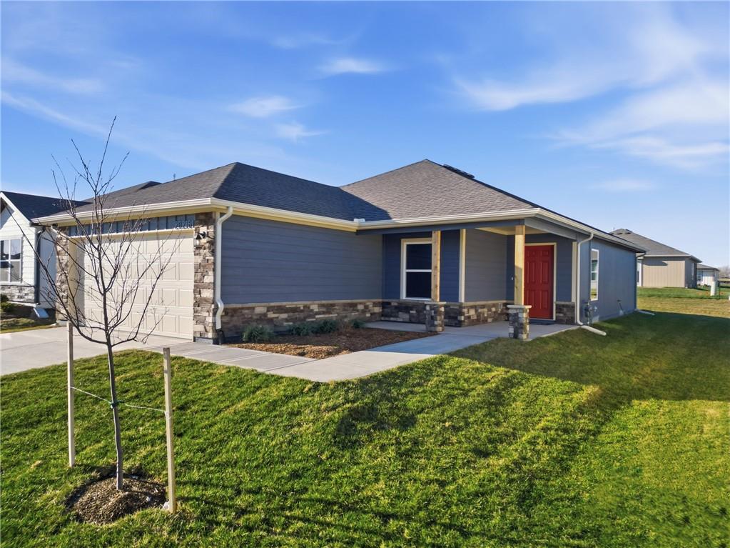 Welcome to Wiswell Farms! With easy access to Route 7, diverse shopping and restaurants are just a short drive away in nearby Olathe. Plus, this community is located within the Spring Hill School District for exceptional education opportunities. This new single-story home is host to a spacious and flexible open-concept layout shared between the kitchen, living and dining areas for simple everyday transitions and multitasking. Two bedrooms share a private hallway, while the luxe owner’s suite boasts a private location at the back of the home, complete with a full bathroom and walk-in closet. Contact us today to learn more!
