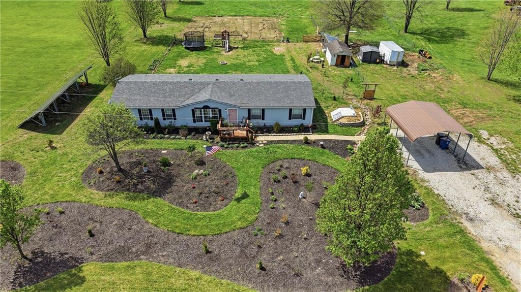 Welcome to your own private slice of country living, perfectly set up for both comfort and self-sufficiency. Situated on nearly 4 acres, this 4 bedroom, 2 bath home offers an inviting open floor plan with plenty of space to live, gather, and grow, including two very large living areas that provide flexibility for entertaining or everyday living. The spacious primary suite is a true retreat, offering plenty of room to incorporate a sitting area or home office. Recent updates include a newer HVAC system (2022) and roof (2019), adding peace of mind for years to come. Step outside and you will immediately appreciate the thoughtfully designed front yard, transformed into a gardener’s dream with beautifully curated flower beds, flowering bushes, and newly planted trees that will continue to mature and enhance the landscape over time. This property is ideal for those looking to embrace a homestead lifestyle. A large tilled garden area is ready for planting, while the custom-built chicken coop with attached runs allows for easy free-ranging. The recently installed solar panel field adds efficiency and long-term energy savings - Home is all electric and average monthly bill is around $30.00 (Depending on usage). Additional features include an underground storm shelter for peace of mind and wide-open space that offers endless possibilities for expansion, recreation, or simply enjoying the outdoors. If you are looking for room to breathe, grow your own food, and enjoy a more intentional way of living, this property delivers.