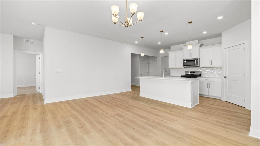 Arlington by D.R. Horton, backs to greenspace this home offers the convenience of main level living with the bonus of a finished inground basement(a recreational room, 4th bedroom perfect for guests or a home office, a full bathroom, and unfinished storage/mechanical space). The open-concept design includes a kitchen with an island, walk-in pantry, 36" cabinets with crown molding, quartz countertops, ceramic tile backsplash, large undermount sink, and Whirlpool stainless steel appliances including a gas range. The owner's retreat includes walk-in closet and en-suite bath. Featuring a tiled shower, "raised height" vanity with a quartz top, double bowls, and Moen® matte black fixtures throughout. 9' ceilings on both levels, a cozy stone fireplace, modern style baseboards and trim. Double wall exterior construction using durable James Hardie Siding features a 15-year color match guarantee makes this home maintenance friendly. Landscaped and sodded yards with irrigation, and a covered back deck provides ideal space for outdoor relaxation or entertaining. A 3-car garage with 10-ft ceilings provides abundant parking and storage. This home is built with quality craftsmanship and a suite of included luxury and smart home features that keep you connected including Wi-Fi Garage Door Openers, Deako Smart Switches, and a video doorbell. This home is backed by D.R. Horton's 1-2-10-year warranty offering exceptional values in the Dayton Creek Community. Spring Hill amenities include Golf Course, Aquatic Center, and Spring Hill School District holds a B+ grade on Niche.com. Don’t forget about Hillsdale Lake! Move-In ready homes available. Square feet and Taxes are estimated. Visit daytoncreek.com to see available lots and floor plans. Don’t forget to ask about our current incentives that can add even more value to these homes. Photos, renderings, and Virtual Walkthrough's maybe of a different home but on the same floor plan to show finish quality only.