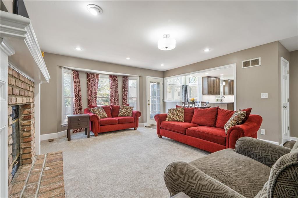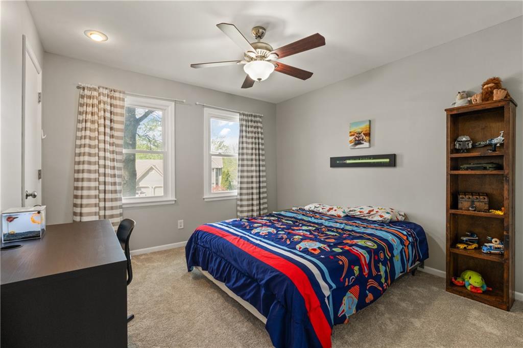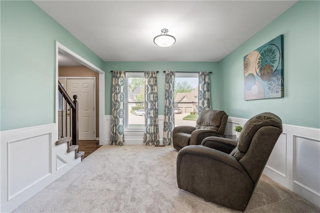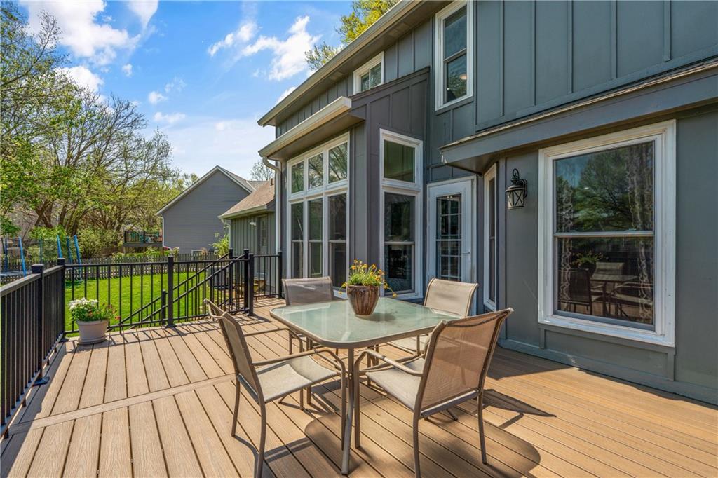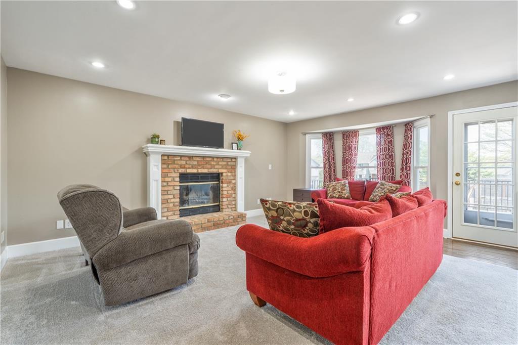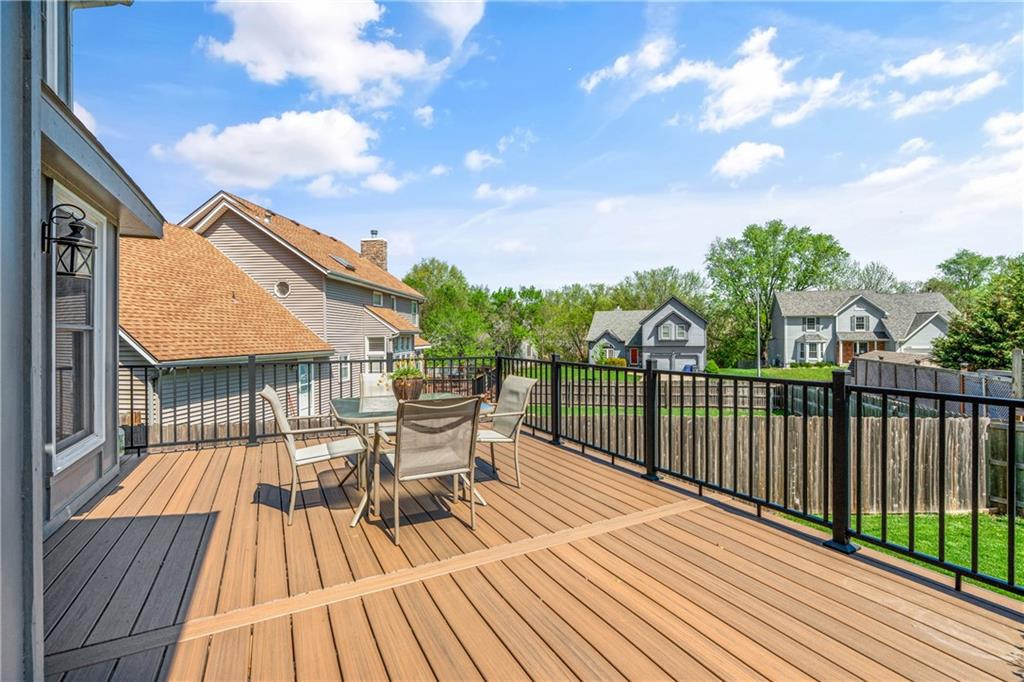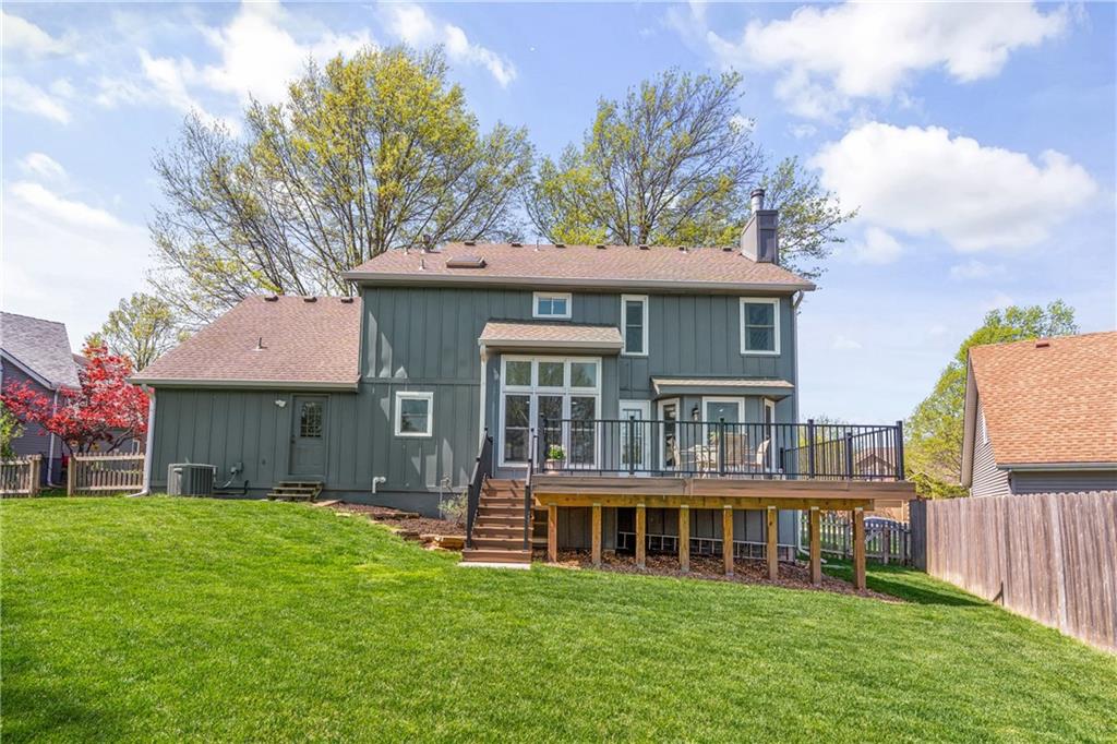 Welcome home to this beautifully updated property offering exceptional curb appeal and a prime location on a quiet cul-de-sac in the heart of the neighborhood. Inside, you’ll find a thoughtfully maintained interior with brand-new carpet throughout and inviting living spaces designed for both everyday living and entertaining. The main level features a formal dining room, a cozy living room with built-in bookshelves, and a welcoming family room complete with bay windows, a classic brick fireplace, and direct access to the back deck. The bright dining area just off the kitchen is filled with natural light, creating the perfect setting for gatherings. The beautifully designed kitchen offers quartz countertops, ample workspace, and easy access to the laundry room, which includes a sink and a convenient door to the backyard. Step outside to enjoy the spacious deck overlooking a fully fenced yard, complete with in-ground sprinklers for easy maintenance. Upstairs, the large primary suite features vaulted ceilings and a private ensuite with double vanities, a separate soaking tub and shower, and a generous walk-in closet that leads to a secluded bonus space—perfect for a home office, nursery, or additional storage. The finished basement expands your living space with an additional living area, kitchenette, full bathroom, and a non-conforming bedroom—ideal for guests, entertaining, or flexible living needs. Additional updates include a new roof currently being installed, composite decking, a whole-house humidifier, water softener, and attic fan for added comfort and efficiency. Enjoy a warm, welcoming cul-de-sac community where neighbors truly look out for one another. Just a short walk to Haven Park and conveniently close to shopping, dining, and all that Olathe has to offer, this home combines comfort, style, and community.