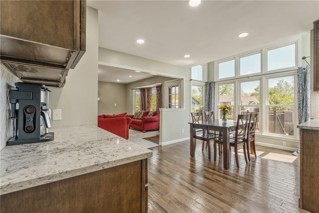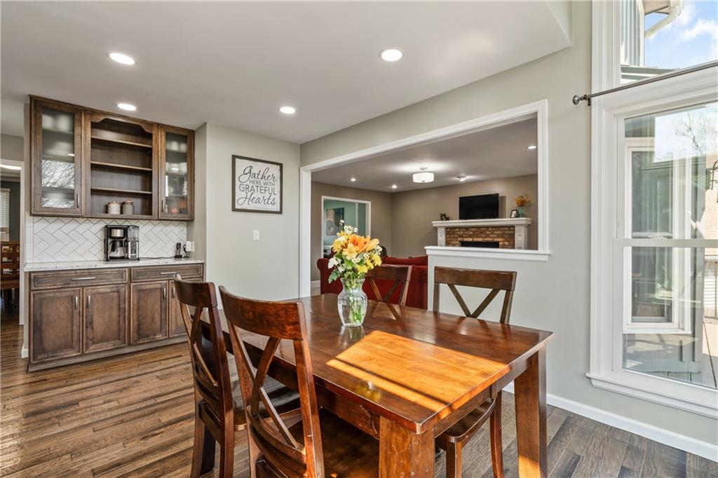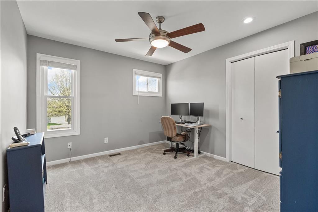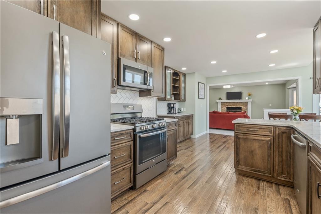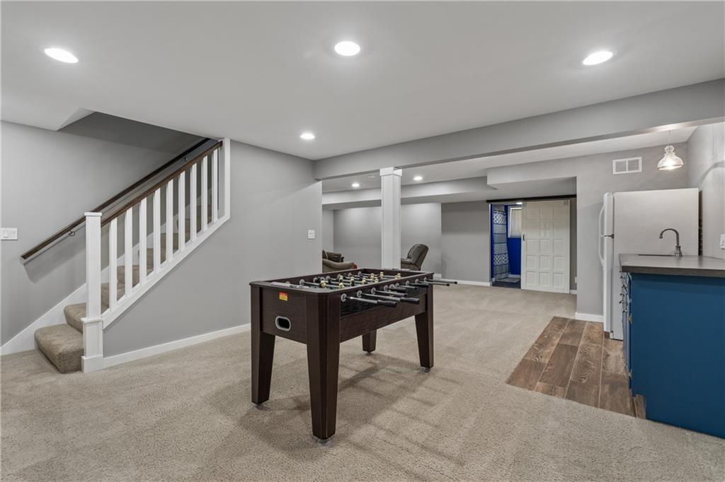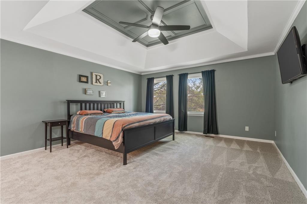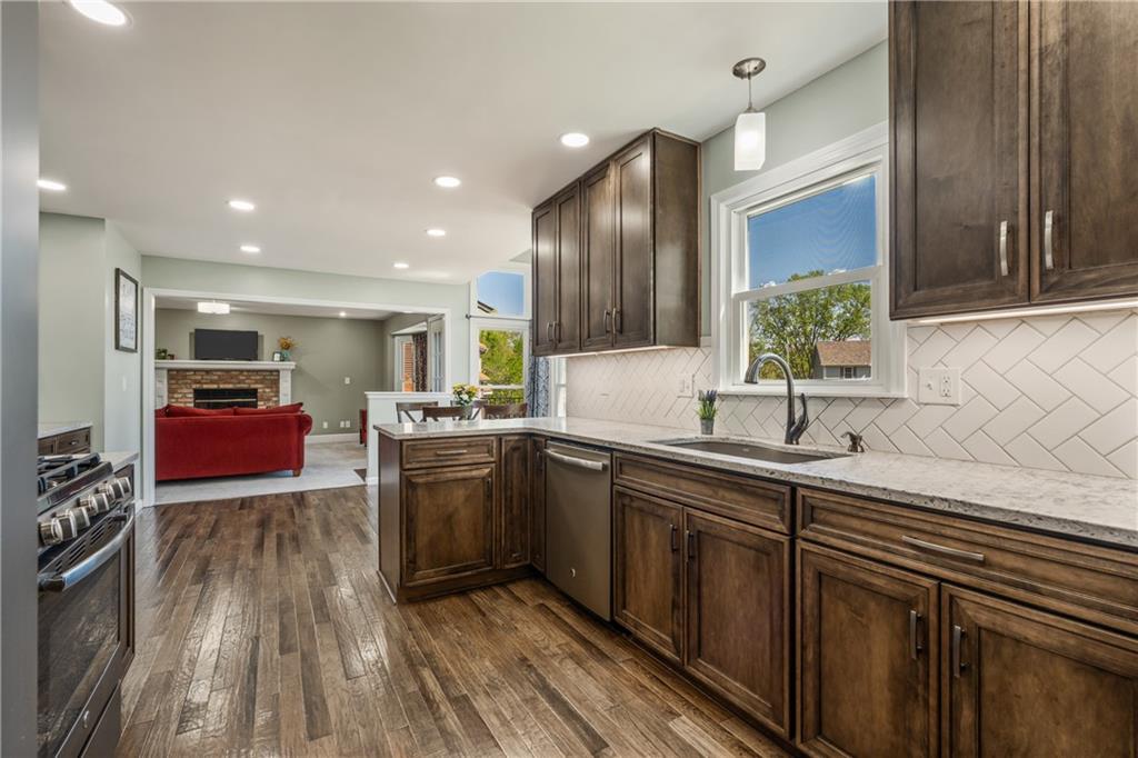 Welcome home to this beautifully updated property offering exceptional curb appeal and a prime location on a quiet cul-de-sac in the heart of the neighborhood. Inside, you’ll find a thoughtfully maintained interior with brand-new carpet throughout and inviting living spaces designed for both everyday living and entertaining. The main level features a formal dining room, a cozy living room with built-in bookshelves, and a welcoming family room complete with bay windows, a classic brick fireplace, and direct access to the back deck. The bright dining area just off the kitchen is filled with natural light, creating the perfect setting for gatherings. The beautifully designed kitchen offers quartz countertops, ample workspace, and easy access to the laundry room, which includes a sink and a convenient door to the backyard. Step outside to enjoy the spacious deck overlooking a fully fenced yard, complete with in-ground sprinklers for easy maintenance. Upstairs, the large primary suite features vaulted ceilings and a private ensuite with double vanities, a separate soaking tub and shower, and a generous walk-in closet that leads to a secluded bonus space—perfect for a home office, nursery, or additional storage. The finished basement expands your living space with an additional living area, kitchenette, full bathroom, and a non-conforming bedroom—ideal for guests, entertaining, or flexible living needs. Additional updates include a new roof currently being installed, composite decking, a whole-house humidifier, water softener, and attic fan for added comfort and efficiency. Enjoy a warm, welcoming cul-de-sac community where neighbors truly look out for one another. Just a short walk to Haven Park and conveniently close to shopping, dining, and all that Olathe has to offer, this home combines comfort, style, and community.