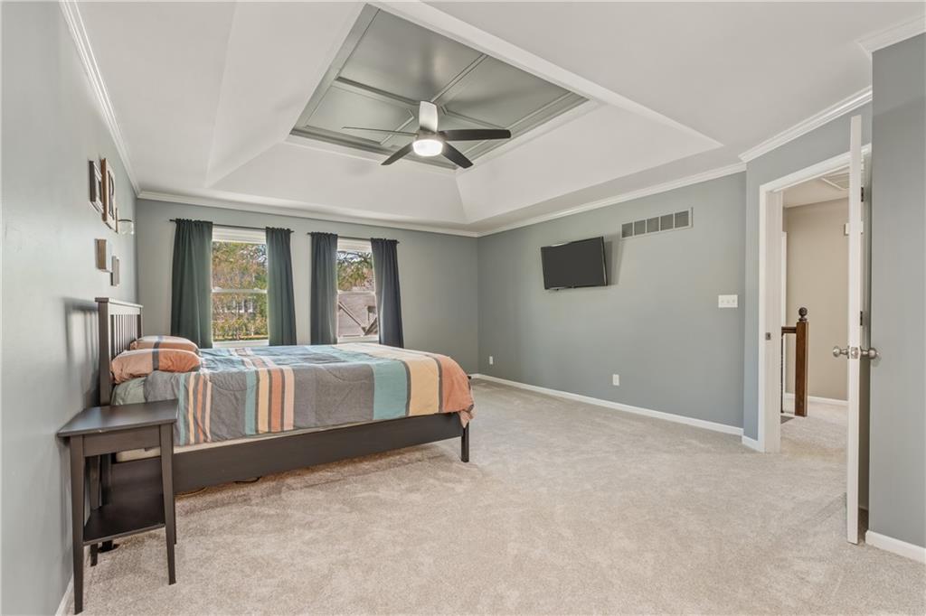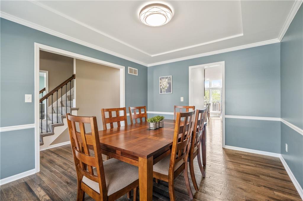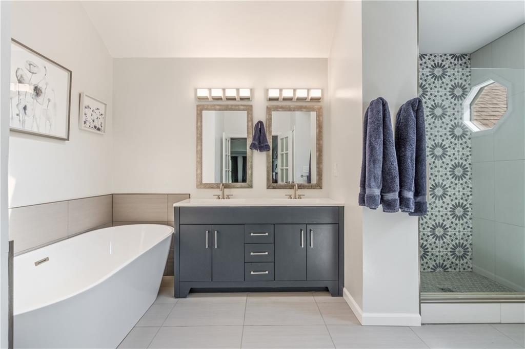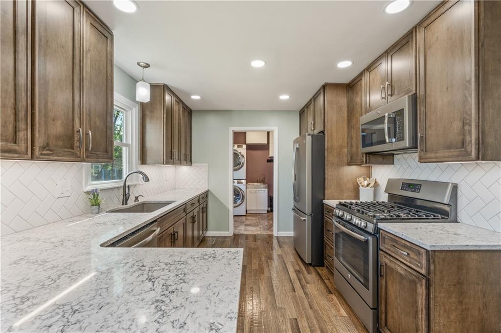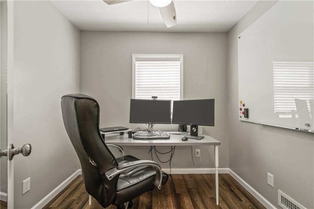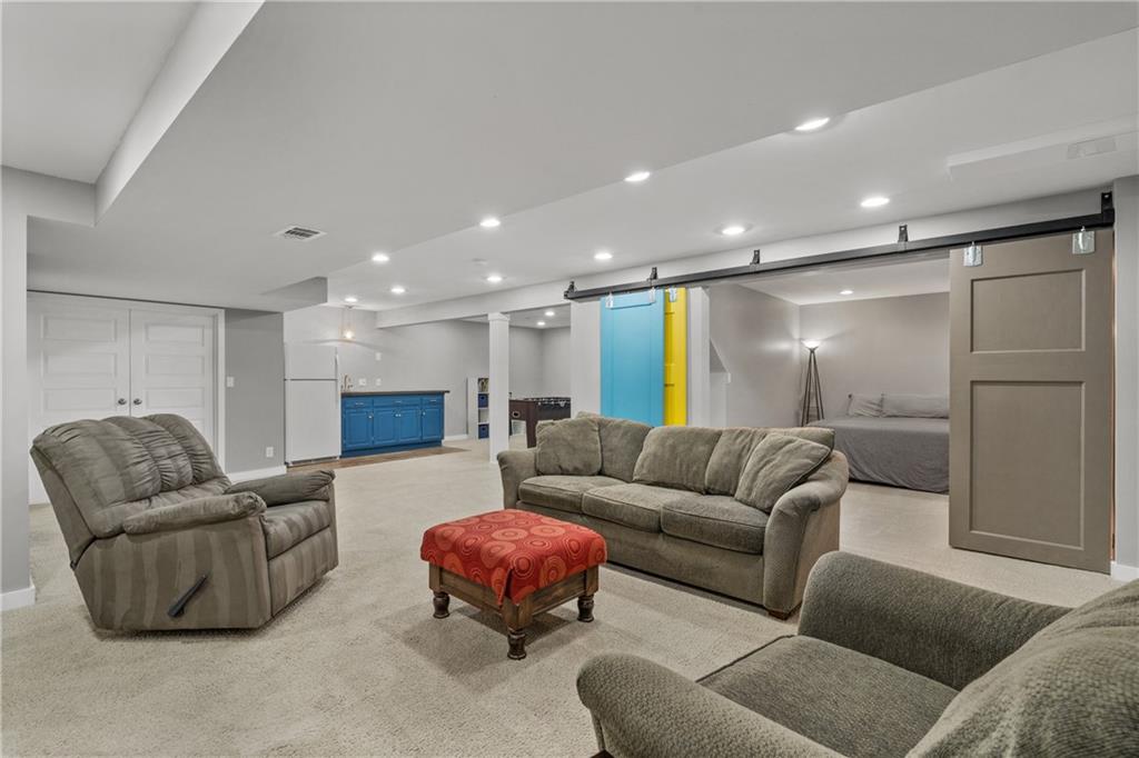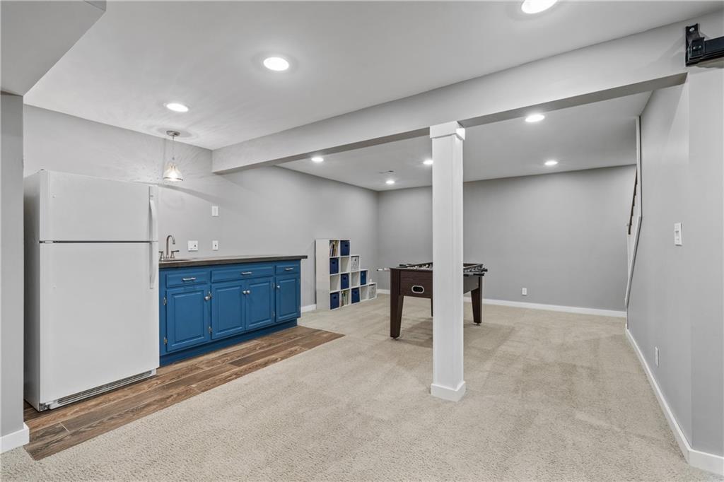 Welcome home to this beautifully updated property offering exceptional curb appeal and a prime location on a quiet cul-de-sac in the heart of the neighborhood. Inside, you’ll find a thoughtfully maintained interior with brand-new carpet throughout and inviting living spaces designed for both everyday living and entertaining. The main level features a formal dining room, a cozy living room with built-in bookshelves, and a welcoming family room complete with bay windows, a classic brick fireplace, and direct access to the back deck. The bright dining area just off the kitchen is filled with natural light, creating the perfect setting for gatherings. The beautifully designed kitchen offers quartz countertops, ample workspace, and easy access to the laundry room, which includes a sink and a convenient door to the backyard. Step outside to enjoy the spacious deck overlooking a fully fenced yard, complete with in-ground sprinklers for easy maintenance. Upstairs, the large primary suite features vaulted ceilings and a private ensuite with double vanities, a separate soaking tub and shower, and a generous walk-in closet that leads to a secluded bonus space—perfect for a home office, nursery, or additional storage. The finished basement expands your living space with an additional living area, kitchenette, full bathroom, and a non-conforming bedroom—ideal for guests, entertaining, or flexible living needs. Additional updates include a new roof currently being installed, composite decking, a whole-house humidifier, water softener, and attic fan for added comfort and efficiency. Enjoy a warm, welcoming cul-de-sac community where neighbors truly look out for one another. Just a short walk to Haven Park and conveniently close to shopping, dining, and all that Olathe has to offer, this home combines comfort, style, and community.