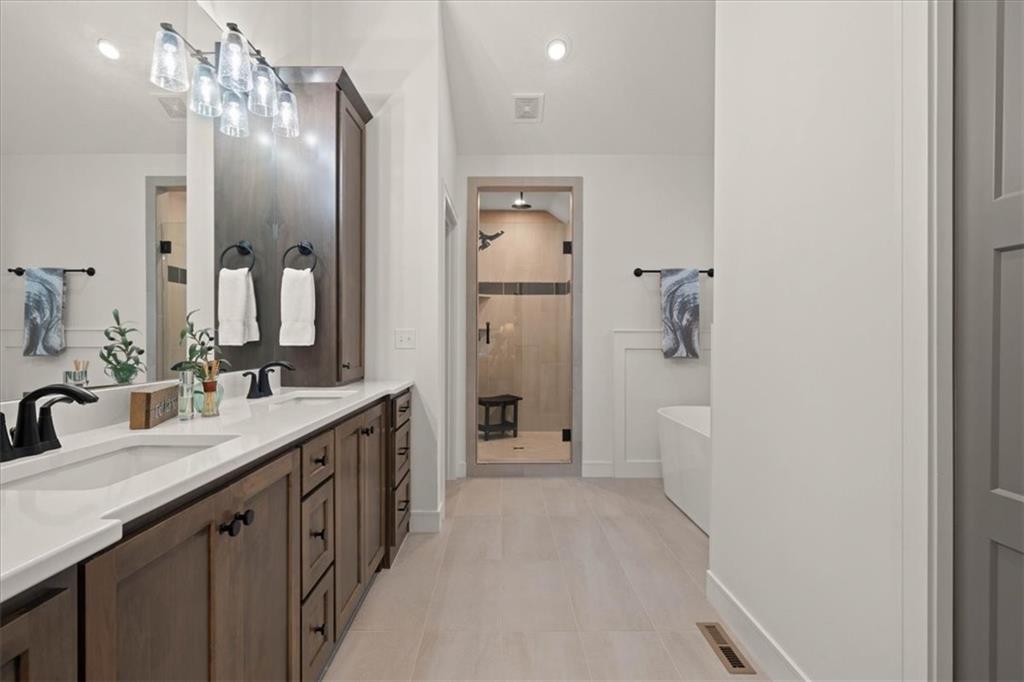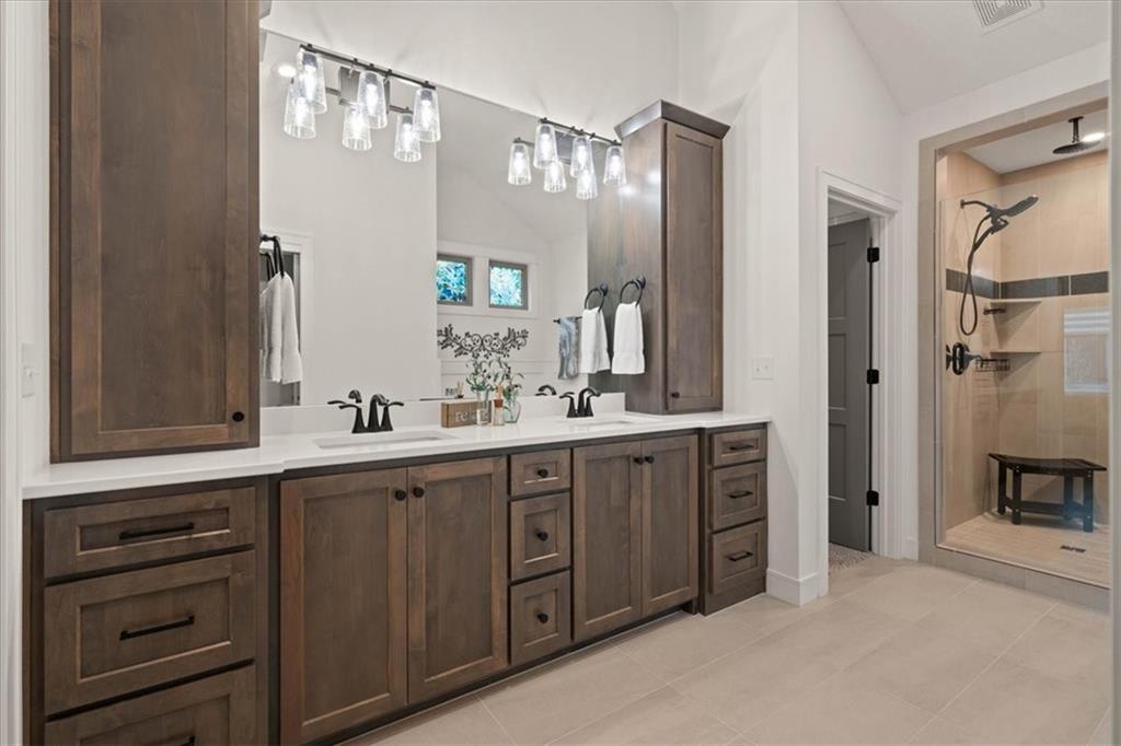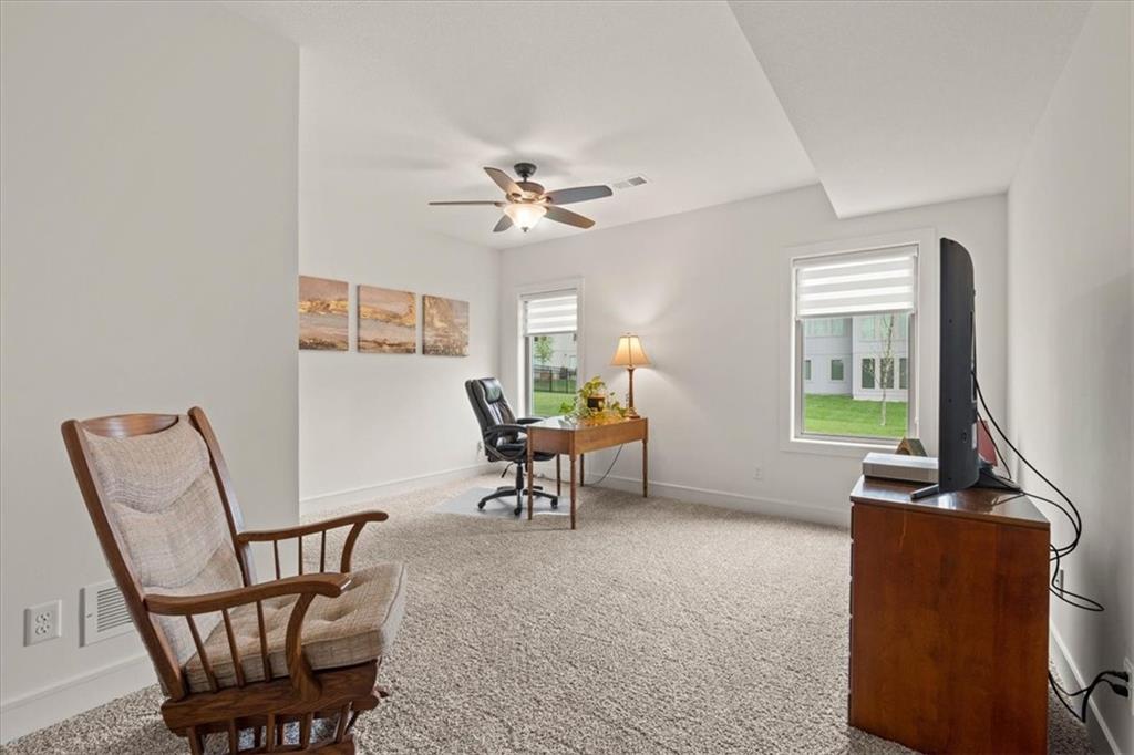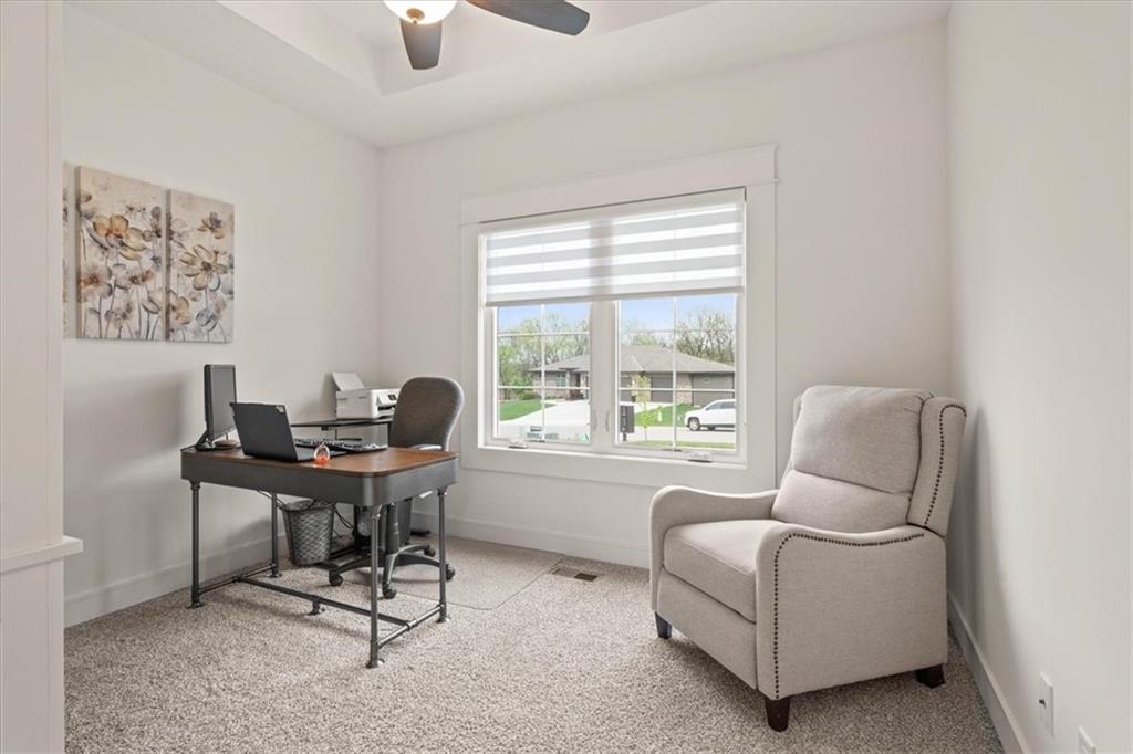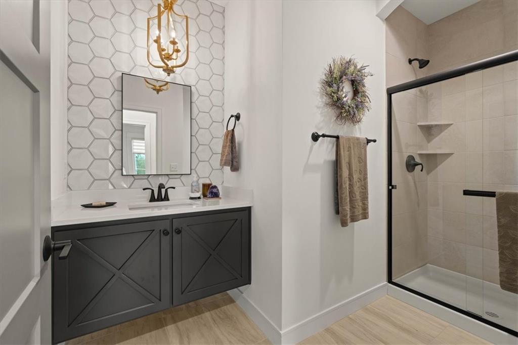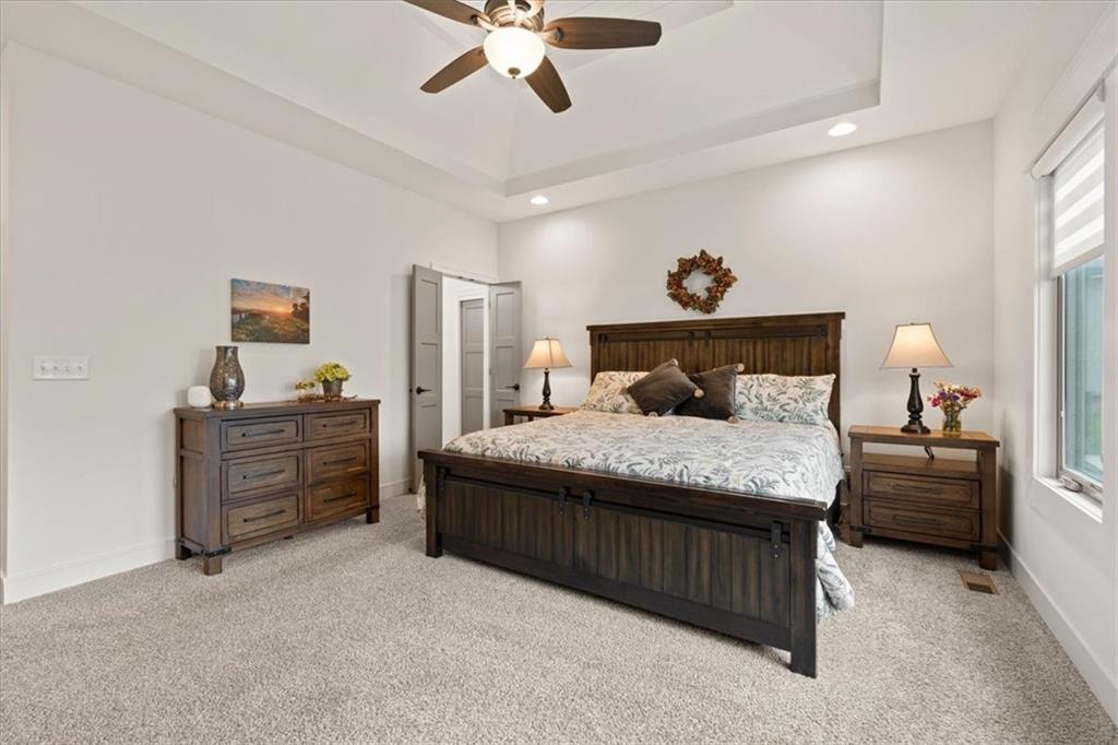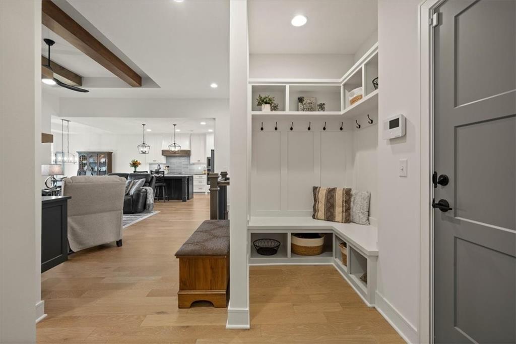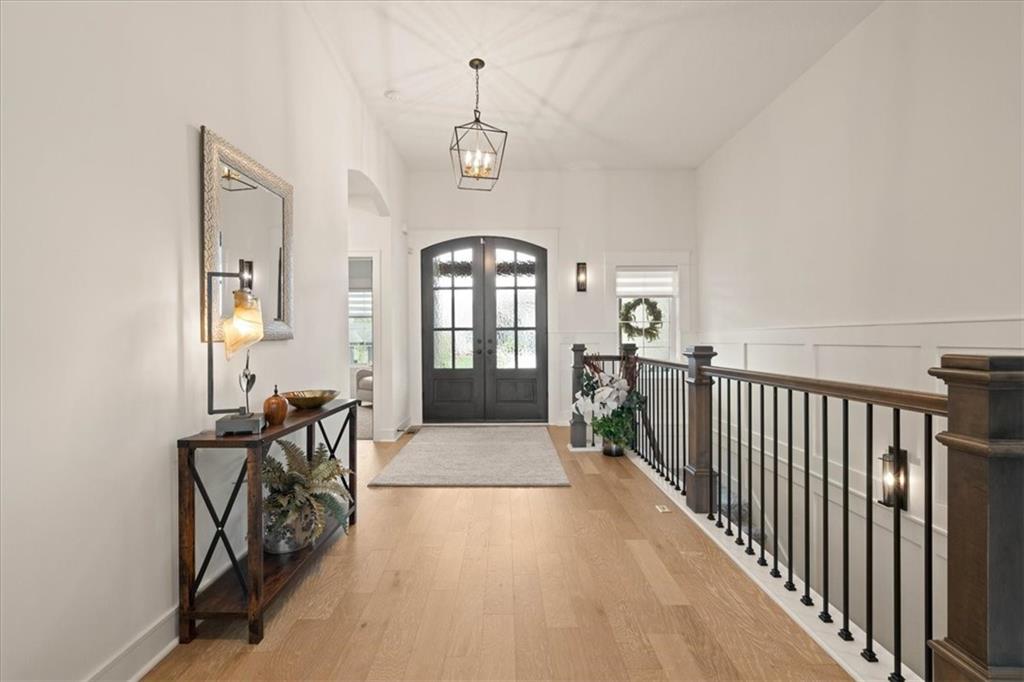 Welcome to this stunning JFE custom-built home loaded with high-end finishes, thoughtful upgrades, and exceptional detail throughout in an excellent location. A charming front porch and grand double-door entry welcome you into a light-filled, open main level designed for both everyday living and entertaining. The spectacular kitchen is a true showpiece featuring abundant custom cabinetry, built-in trash storage, a massive quartz island, gas cooktop, and an oversized walk-in pantry. The kitchen flows seamlessly into the dining area and spacious living room highlighted by a dramatic floor-to-ceiling stone fireplace, flanked by built-in cabinetry and floating shelves. The luxurious primary suite is a true retreat with a spa-like ensuite bath offering a walk-in shower with dual shower heads, including a rain shower, and an incredible walk-in closet that connects directly to the laundry room. Every bedroom includes its own private bath, offering comfort and privacy for family and guests alike. The finished walkout lower level provides outstanding additional living space with a large rec room, stylish wet bar, two spacious bedrooms, two full baths, and still plenty of unfinished storage. Some of the many exceptional details include beautiful wood beams, inset tray ceilings with shiplap accents, Graber window treatments, extensive landscaping upgrades, an epoxy-coated garage floor and basement storage area, a 24-foot deep garage, an extended patio, and a covered composite deck perfect for relaxing or entertaining. Located in a vibrant amenity-rich community with miles of walking trails, a neighborhood pool, sand volleyball, a park and play area, several ponds (including one with a fishing dock), and easy access to James A. Reed Wildlife Area. This amazing home offers an exceptional lifestyle in one of the area’s most convenient and sought-after settings.