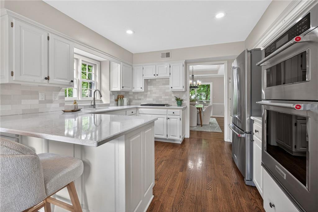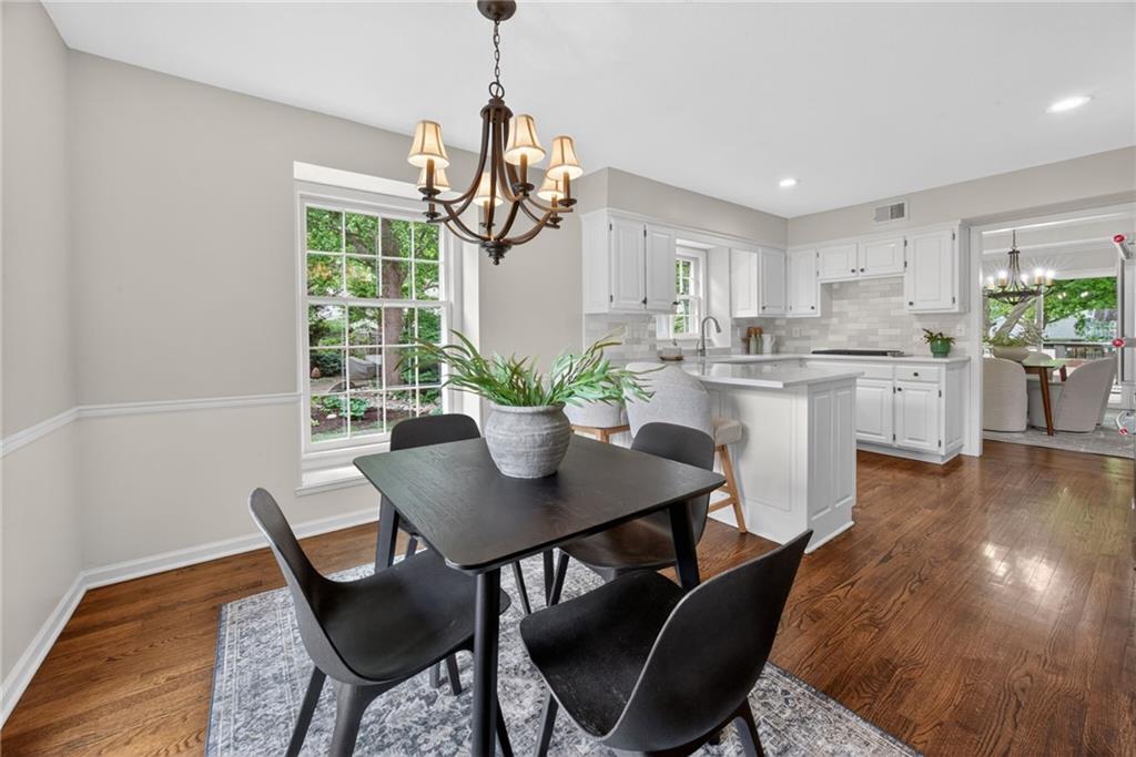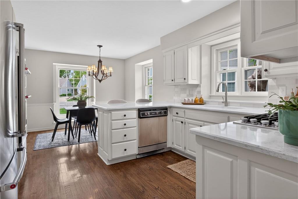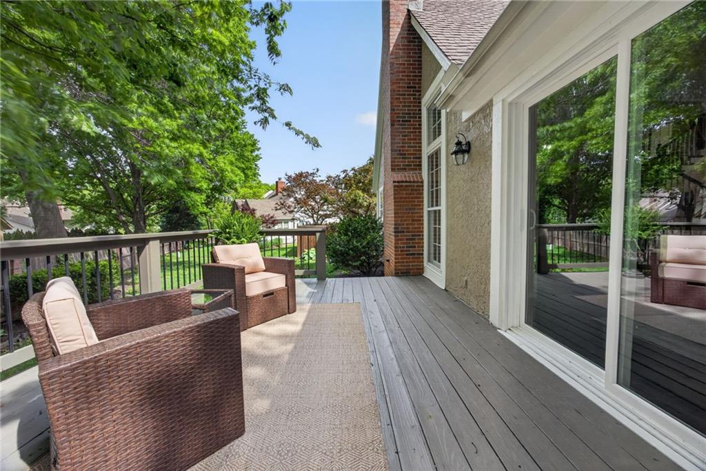 Don’t miss this spacious, light-filled maintenance-provided villa in coveted Pembroke Court in Leawood! Designed for easy living, this 1.5-story home offers the perfect balance of comfort and functionality. The main-level primary suite features a generous walk-in closet and a well-appointed bath with dual vanities, separate shower, and relaxing jetted tub. The vaulted living room showcases gleaming hardwood floors, a striking brick fireplace, and custom built-ins, seamlessly connecting to the formal dining area—ideal for entertaining. The fully updated kitchen shines with modern white cabinetry, granite countertops, and a bright eat-in space. Convenience continues with main-level laundry and a half bath. Upstairs, two spacious secondary bedrooms share a full bath, offering great space for family or guests. The unfinished basement is a blank canvas ready for your vision, while the large back deck provides the perfect spot to unwind or host. Enjoy truly low-maintenance living with HOA-covered lawn care, snow removal, trash, and recycling. All of this in a prime location near 123rd & State Line with quick access to 435, plus shopping, dining, parks, and more just minutes away.