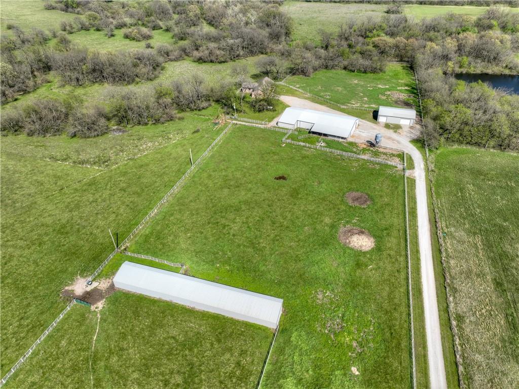Follow paved roads to this peaceful country homestead & farm near Girard, KS. Over 13 acres with expansive out buildings/shops, piped fencing and room to spread out and enjoy the beauty of nature and abundant wildlife! The 3 bedroom/1.5 bath home boasts an open concept living/dining and kitchen area. A separate spacious family room features beautiful window light and leads to a lower level bedroom that also serves as a safe-room/storm shelter below ground level. Primary bedroom features a huge walk-in closet while bathroom provides a spacious walk-in style shower. The living and dining room areas open to a huge covered deck area that provides a scenic view to enjoy! A ramp wraps around to front of home for ease of entrance & exit to deck area. Steps from the home sits a 120 x 50 ft shop with concrete floors, heat & air, electricity, restroom and multiple overhead doors. For livestock or utility storage, there is also a 40 x 60 building and cattle shed and waterers, plus pipe-fenced pasture! This exclusive location provides privacy and practicality, and allows for profitability, as well! Set your private tour right away!