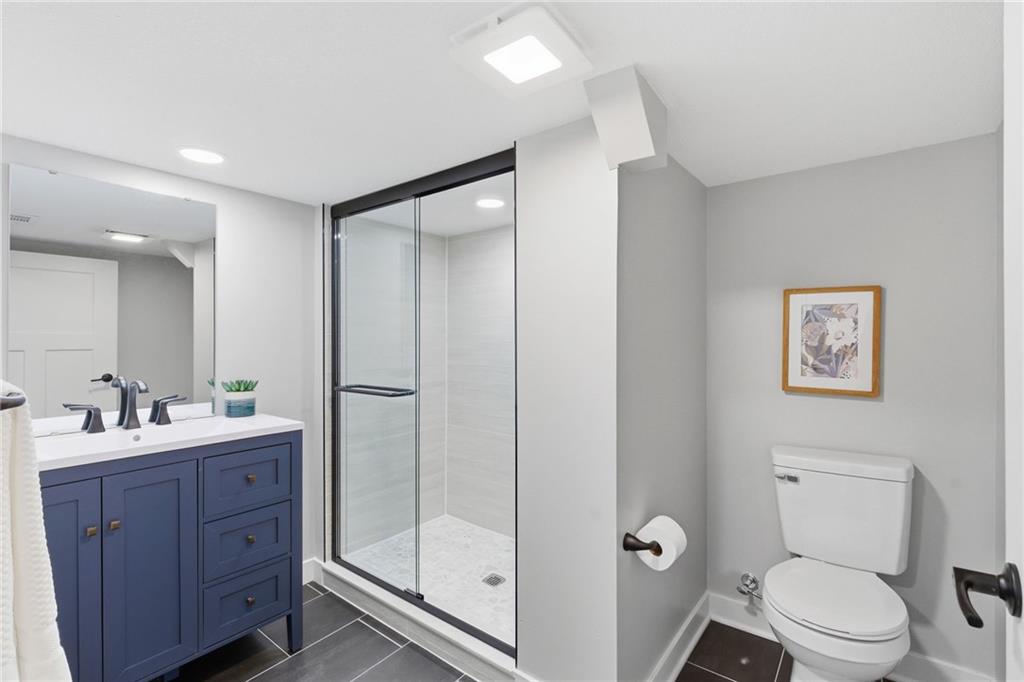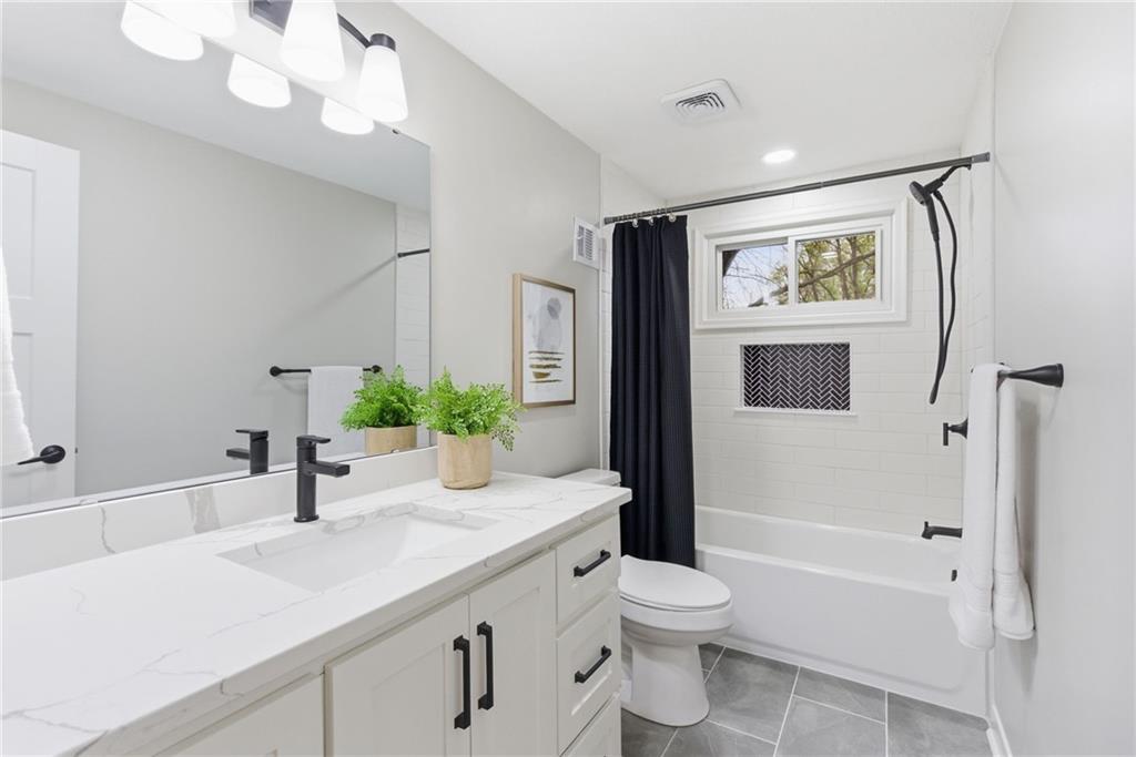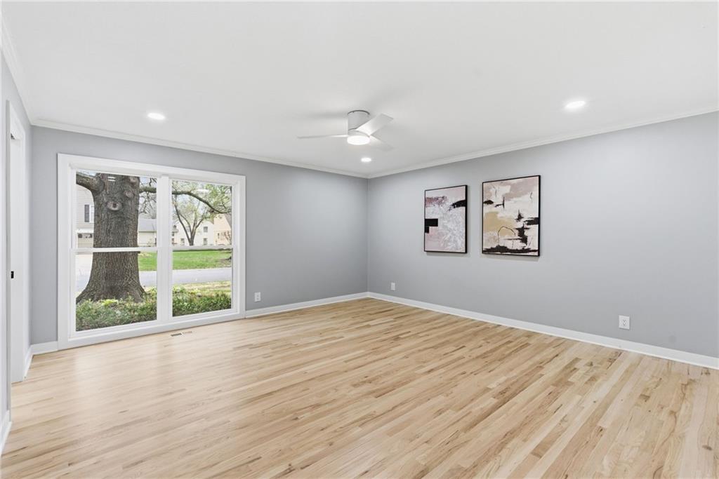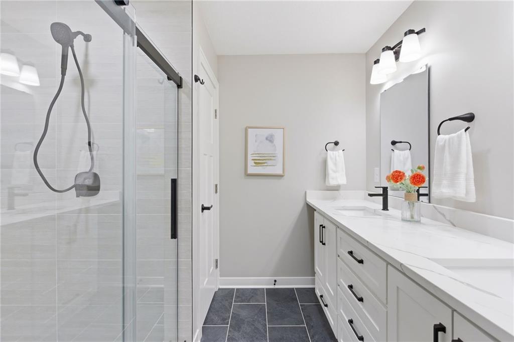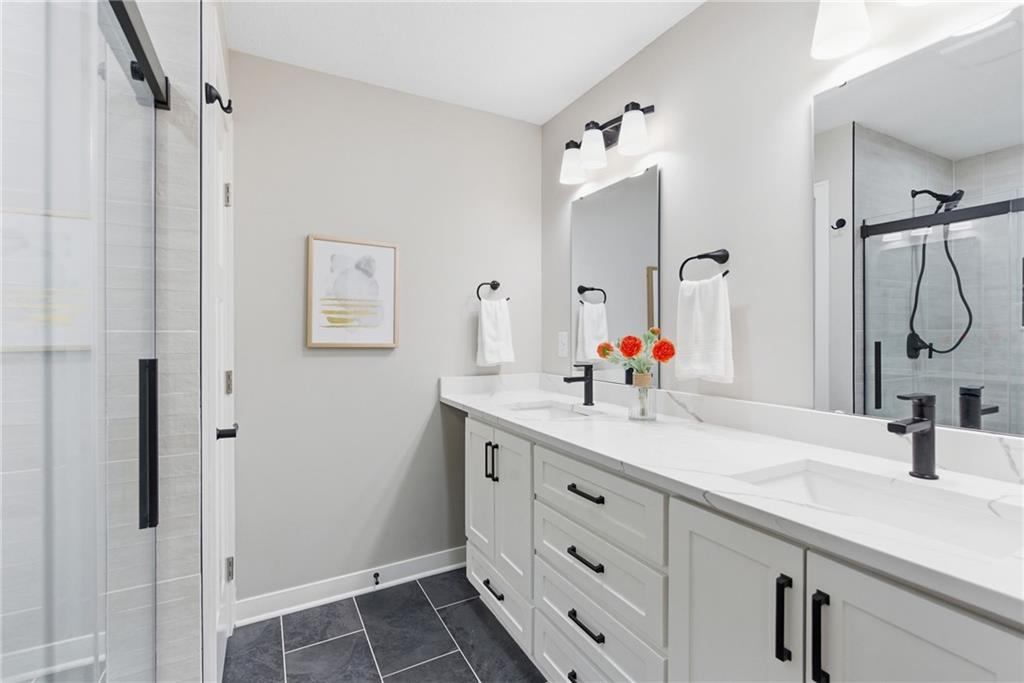 Welcome to your dream home in the heart of Leawood, ideally situated within the highly sought-after Blue Valley school district, ranked in the top 1% of school districts nationally. This exceptional home feeds into Leawood Elementary and Middle Schools, both just a short 10-minute walk or less than a 3-minute drive away. Blue Valley North High School is also conveniently located, only a 10-minute drive from your doorstep. This stunningly transformed home promises spacious living, making it an ideal retreat for larger families seeking both comfort and luxury. As you enter, you'll appreciate the thoughtfully designed open floor plan that harmonizes functionality with elegance. The chef's kitchen features custom craftsman-style cabinetry, quartz countertops, and stainless steel appliances—all overlooking a bright and airy hearth room with soaring vaulted ceilings. The main level also boasts a formal living room and dining room, perfect for hosting gatherings and family meals. In addition, the main level includes a luxurious primary ensuite bedroom. A 2nd bedroom and full bath cater to guests or family, while the newly designed mudroom offers convenient access from both the garage and the expansive stamped concrete back patio. Recent updates include a new roof and HVAC system, both less than a year old. Venture upstairs to discover two additional bedrooms, a full bath, and a huge loft living space, ideal for family game nights or a children's play area. The lower level features yet another ensuite bedroom, an additional bedroom and bath, a rec room complete with a wet bar, and a private office space for remote work or study. The exterior of the home boasts beautiful new lap siding on the front enhancing its curb appeal, while the remaining three sides feature elegant stucco. The property has also been meticulously updated with new landscaping and freshly applied seed & fertilizer, ensuring a lush green space for children to play and family barbecues to enjoy.