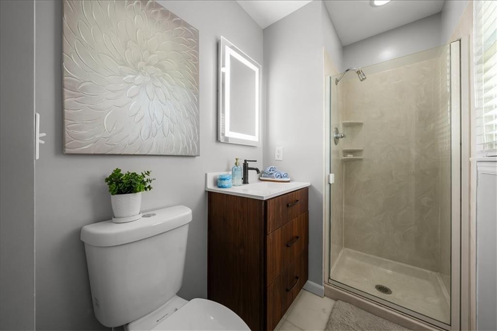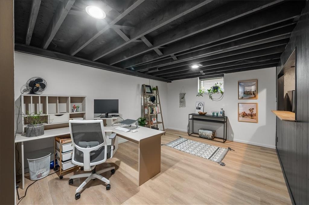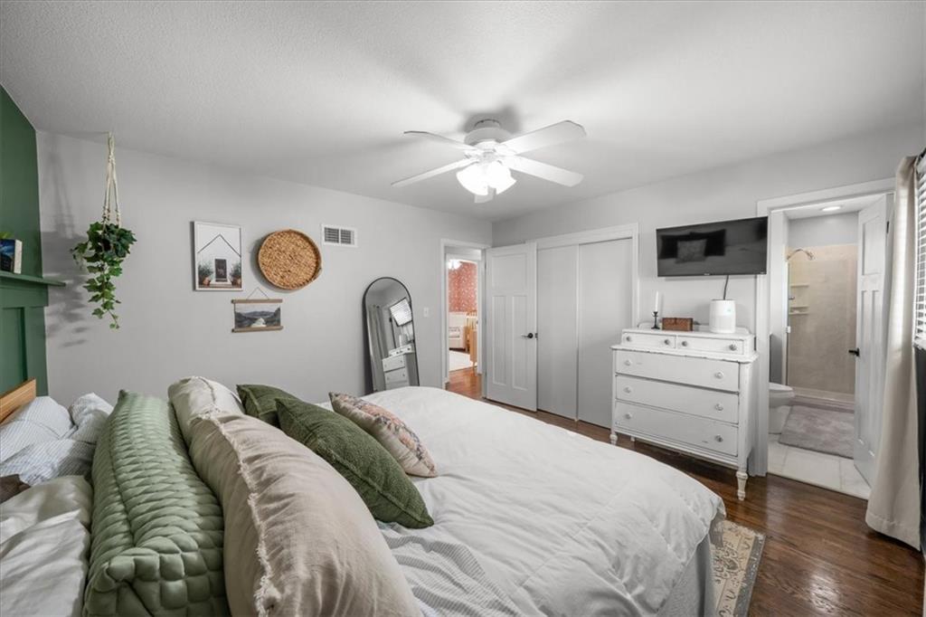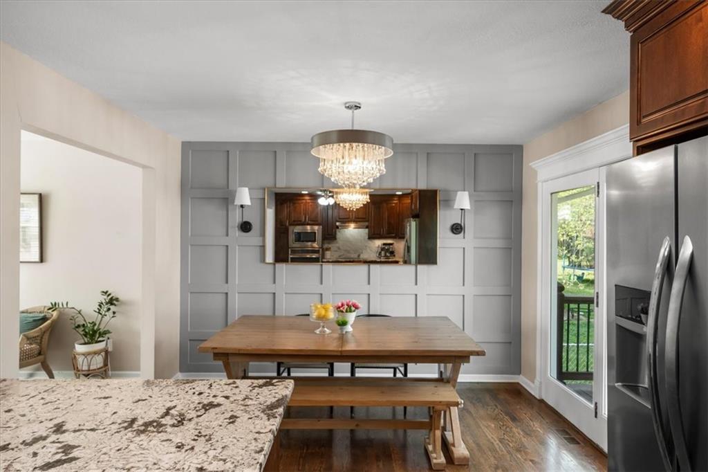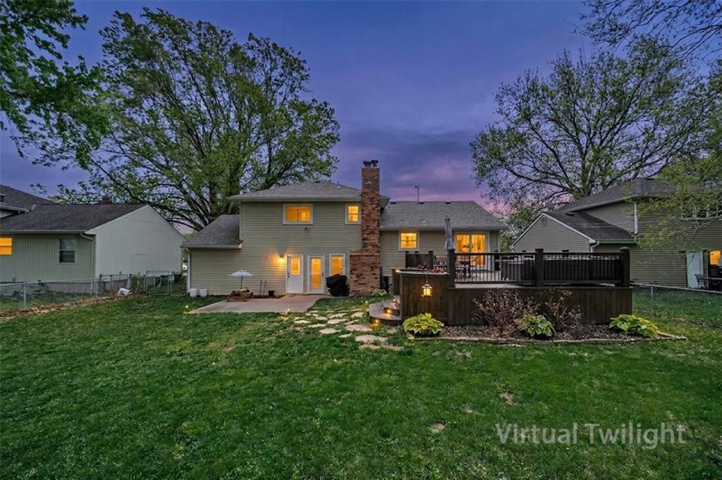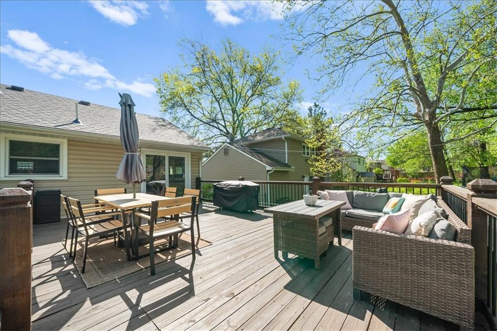 This stunningly updated Overland Park home offers luxury in one perfect package! Every detail has been thoughtfully designed, allowing for a true move-in-ready experience. Step into the spacious living room featuring a large bay window that fills the space with natural light and highlights the gorgeous hardwood floors extending throughout the main living and bedroom areas. The chef’s kitchen is a showstopper, boasting custom cabinetry with specialty pullouts, a pantry, granite countertops, marble backsplash, farmhouse sink, built-in oven and microwave, and an induction cooktop. The adjoining dining room features a stylish accent wall that adds modern charm. Double doors lead to a freshly stained, oversized deck—ideal for seamless indoor-outdoor entertaining. Upstairs, two generous secondary bedrooms share a beautifully updated hall bath with a custom vanity, marble tile, and a heated jetted tub/shower combination. The primary suite serves as a relaxing retreat, complete with yet another accent wall, custom closet organizer, and a stunning ensuite bath featuring tile, a modern vanity, and a lighted mirror. All fixtures, ceiling fans, interior doors (solid core), exterior doors and recessed light have been tastefully updated. The family room offers another comfortable living space with a floor-to-ceiling fireplace, perfect for cozy evenings. The recently finished basement provides a flex area ideal for an office, gym, craft room, or playroom with a large bar and additional storage in unfinished area. An extra-deep two-car garage offers even more storage or workshop space and includes an electric car charger. Other highlights include a *New Roof*, newer vinyl windows, maintenance-free siding, and a fully fenced large yard. Located in a prime OP neighborhood, this home offers easy access to shopping, dining, schools, parks, and highways. Do not miss this rare opportunity to own a move-in-ready home with exceptional upgrades in one of JOCO most desirable areas!