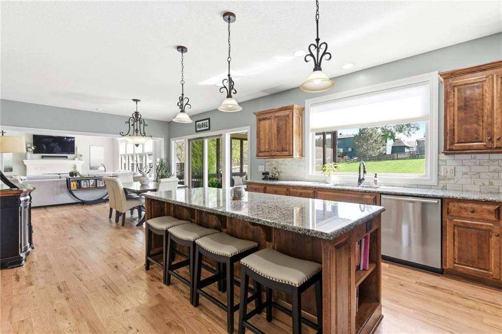 Stunning 5+Bedroom Home in Lee's Summits Premier Lake Community – Raintree! Welcome to your dream home in the highly sought-after Lake community! This beautifully designed 5+bedroom, 4.5-bathroom, 2-story home offers almost 4,000 square feet of luxurious living space and is perfectly situated with views of the pristine Backyard Oasis. Step inside to find rich hardwood floors flowing throughout the main level and an open-concept floorplan filled with natural light. The gourmet kitchen features elegant cabinetry, granite countertops, a spacious island, and a walk-in pantry—ideal for both daily living and entertaining. The expansive lower-level recreation room is the ultimate gathering spot, complete with a stylish wet bar—perfect for game nights or hosting guests. After a long day, relax on the screened-in, covered deck while taking in the peaceful outdoor living area. You can continue to entertain and enjoy a wonderful day or evening in the oasis backyard with a firepit and outdoor kitchen. With 5+ spacious bedrooms, including a luxurious primary suite, and 4 full bathrooms plus a convenient half bath, there’s room for everyone to spread out and feel right at home. Raintree Lake isn't just a neighborhood—it’s a lifestyle. Enjoy access to top-notch amenities including a clubhouse, pool, lake, fitness center, and more. Don’t miss this rare opportunity to own an incredible home in one of Lee's Summits finest communities. Schedule your private showing today!