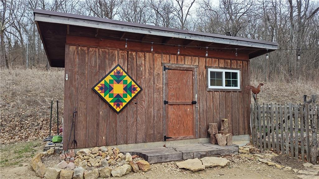12 year-old Net-Zero Custom-Built Timber Frame Home on 27+ Private Acres with Stocked Pond Energy Independence, Privacy, Woods, Water, and Pasture — 12 miles from Lawrence: timber-frame home sits 500 feet off the road on 27+ acres overlooking the Buck Creek Valley. Designed for efficiency and built with the highest quality materials, it offers a rare combination of sustainability, recreation, and proximity to town. Durability and comfort are hallmarks of this home. You really must experience this home first-hand! 10 acres fenced pasture (high-tensile 4-wire electric fencing) 17 wooded acres with mature oak, hickory, walnut & hedge and over 1 mile of private hiking trails Stocked largemouth bass pond Pond aeration system installed 2025 Home positioned halfway up the hill for protection and views The Home: 1,550 sq ft PLUS 500 sq ft covered porch Traditional timber-frame construction (white oak) 2 bedrooms + flexible loft space (office/guest/yoga/studio) 20’ ceiling peak in open living area Large kitchen with island Zero-entry walk-in shower Straw bale exterior walls (R-40) Structural insulated panel roof (R-40) Andersen casement windows Standing-seam metal roof Mitsubishi mini-split heat pump (new coil 2025) Pacific Energy Alderlea wood stove Complete architectural plans available Natural materials create exceptional indoor air quality and a calm, grounded feel Net-Zero Solar Energy: Installed in 2018 Produces 8,500–9,000 kWh annually, historically exceeds total household usage Inverter replaced March 2024 Water & Infrastructure 8,000-gallon rainwater cistern Pump house/workshop Whole-house filtration system (spin-down, carbon/sediment, UV, optional chlorinator) Outbuildings 11' x 18' workshop / pumphouse 15’ x 45’ pole barn (3 bays) 16’ x 32’ pole barn (2 bays) Converted 15' diam. grain bin with concrete floor, electricity, lighting & exhaust fan 13 mi. to Perry Lake Marina 23 mi. to Clinton Lake Marina