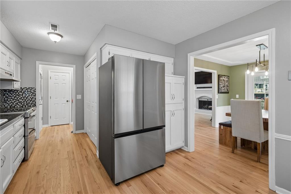 There will be an Open House Saturday April 18th from 12-2. This welcoming 4-bedroom, 2-bath home offers a comfortable, easy-to-live-in layout. A spacious living room with vaulted ceilings centers around a cozy gas fireplace with log inserts, creating an inviting spot for everyday living. The living room flows into a dedicated dining area and a bright, well-kept kitchen featuring newly updated appliances. Newly refinished hardwood floors run throughout the main and upper levels, adding warmth and a fresh, updated feel. The primary bedroom opens directly onto a private deck with a weather-protected storage area below. A second, oversized deck extends from the dining room—an ideal place for casual gatherings or quiet evenings outside. Practical updates add peace of mind, including a brand-new water heater with a transferable warranty and a newer HVAC system. High-speed Google Fiber is available for quick activation, making this move-in-ready home both comfortable and convenient.