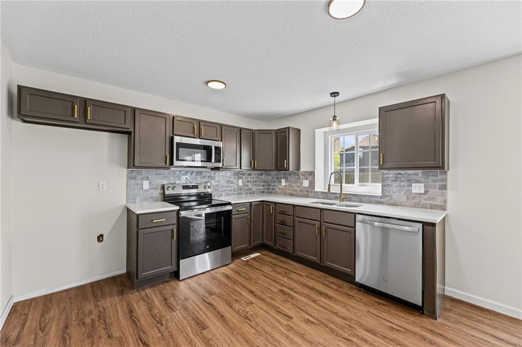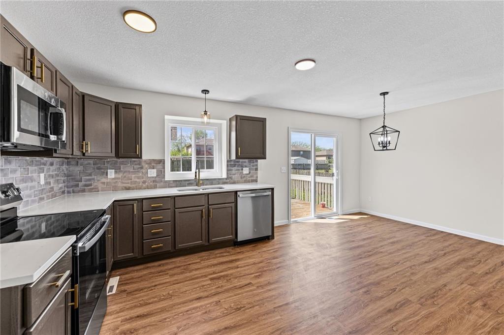 A fresh remodel wrapped in timeless elegance inspired by equestrian style, this fully renovated 5-bedroom, 3-bath home delivers incredible flexibility and value. Step inside to all-new flooring, a completely updated kitchen, and classic interior and exterior paint tones that never go out of style. New windows in the living room, dining room & kitchen bring in beautiful natural light. The main level features 3 bedrooms and 2 full baths, including a serene primary suite with a newly tiled en-suite bath and updated vanity. Downstairs, discover true flex living: two additional bedrooms both with egress, plus a third full bath — ideal for a guest suite, home office, den, media room, or multi-generational setup. A back deck overlooks the massive backyard, complete with a fire pit and room to play, garden, or entertain. A 2-car garage adds everyday convenience. A timeless classic at an approachable price point — offering space, style, and versatility rarely found at this value.