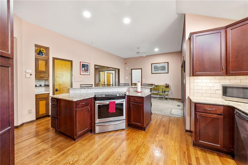 If you’re searching for a truly exceptional home, 7206 Larson is it. Tucked quietly at the end of a small horseshoe street in a quiet neighborhood, this custom-built 1.5 story reverse ranch offers unmatched seclusion and character. Built in 1992 and perfectly maintained, this rare opportunity sits on a beautifully wooded 1.6-acre lot that feels like your own private nature sanctuary. With 4 bedrooms, 3 full baths, and 2 half baths, there’s plenty of space to entertain and unwind. The open flow connects the living area, dining room, and kitchen while vaulted ceilings and large windows showcase sweeping views of the park-like backyard. Step outside to enjoy two decks overlooking mature trees and wildlife — deer, turkey, and birds are frequent guests. A custom treehouse, completed in 2022, adds even more charm and a sense of retreat. The primary suite on the main level features a remarkable en-suite bath designed for two, with dual vanities, dual water closets, separate walk-in closets, and a shared jetted tub and walk-in shower connecting the spaces. Down the curved staircase, discover a lower level built to impress — an indoor atrium with turf and stone accents opens into a spacious family room with a gas fireplace and three additional bedrooms surrounded by private wooded views. Ample storage and thoughtful design make every corner functional and inviting. Recent updates include a new Air Conditioning unit (2025), tankless water heater, water softener, toilets, faucets (2021), kitchen upgrades (2018), and garage resealing (2020). This home stands as one of the most unique and well-kept properties in the area. Also to note the property is in close proximity to the Rock Island Trail. Rarely does a home blend craftsmanship, privacy, and location like this. Schedule your private showing today before this extraordinary home is gone.